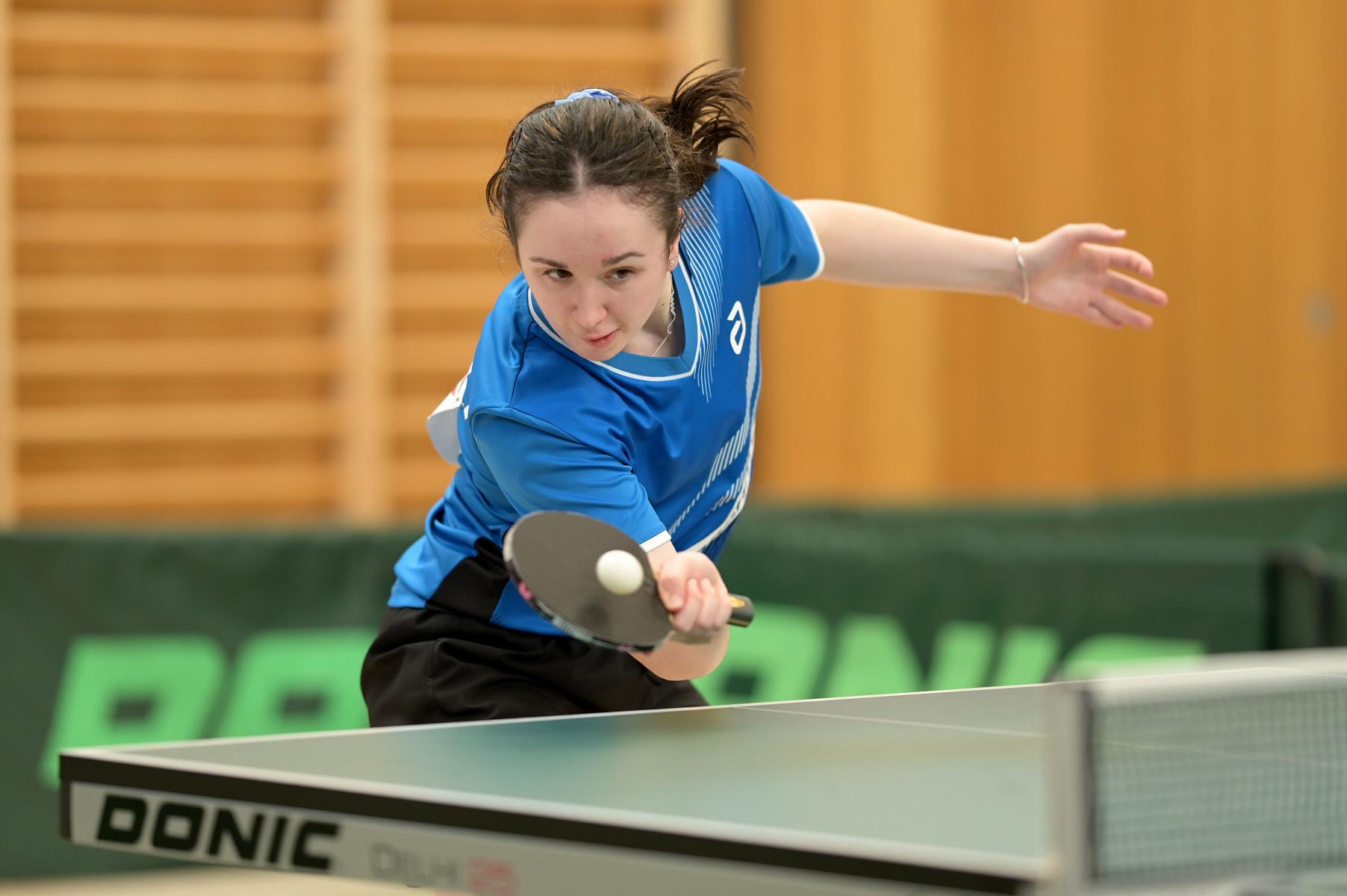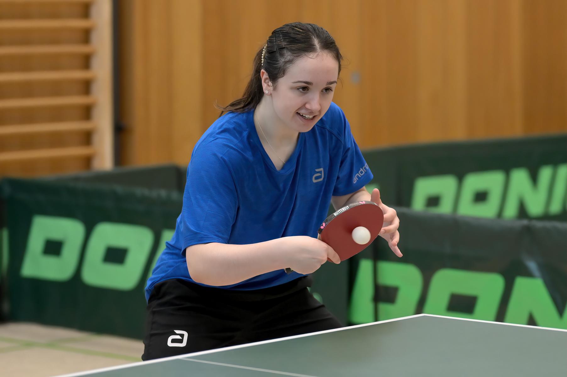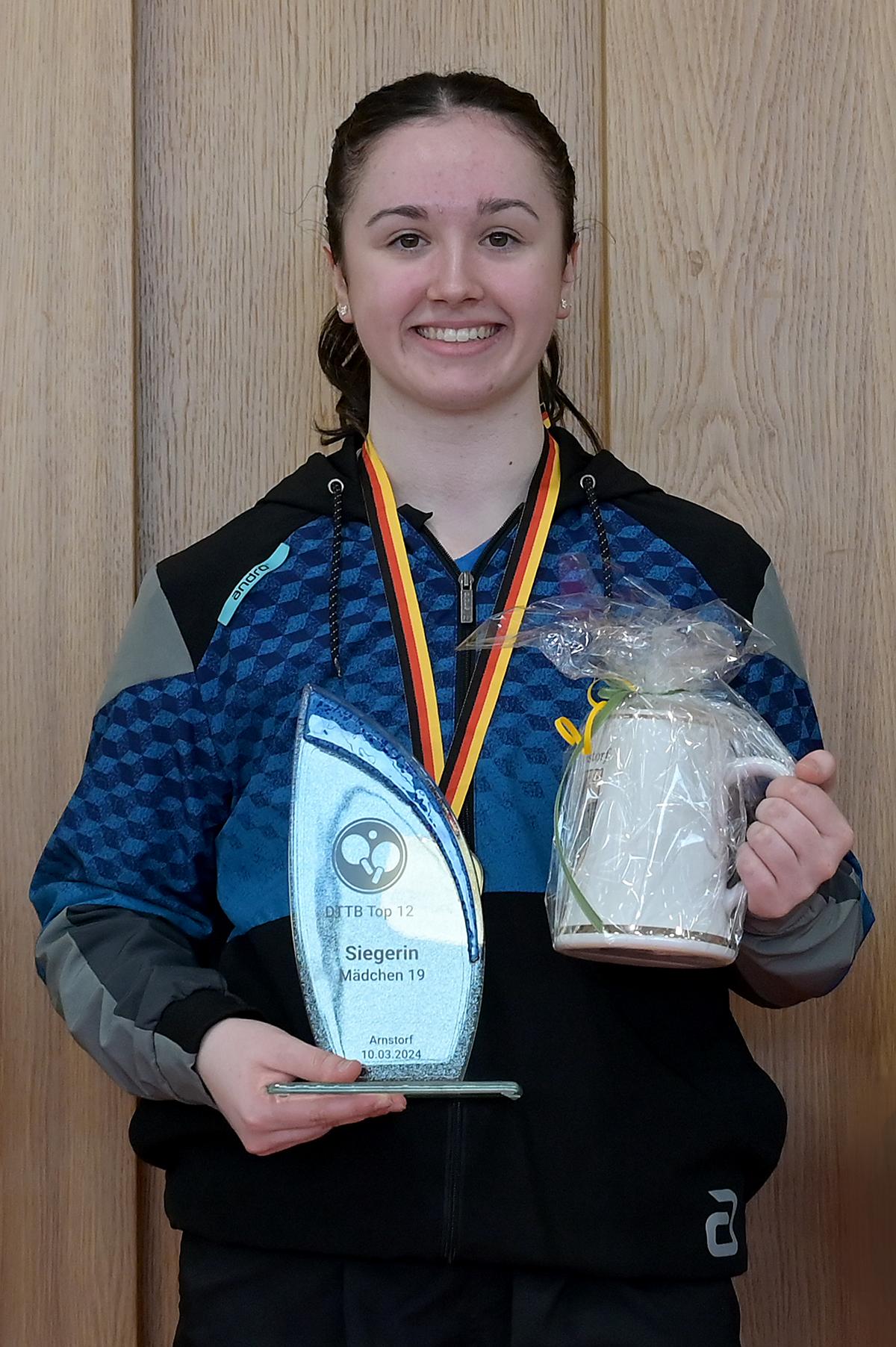 Eireen Kalaitzidou nahm die Favoritenrolle an. War sie doch beim DTTB TOP 24 Ranglistenturnier noch mit Bronze nach Düsseldorf zurückgekehrt, so war es am Sonntagnachmittag die Goldmedaille, die ihr als verdienten Lohn für ihre hervorragenden Leistungen an den Turniertagen überreicht wurde. Zum Schluss standen neun Siege und eine Niederlage auf dem Zettel. Entsprechend groß war ihre Freude bei der Siegerehrung.