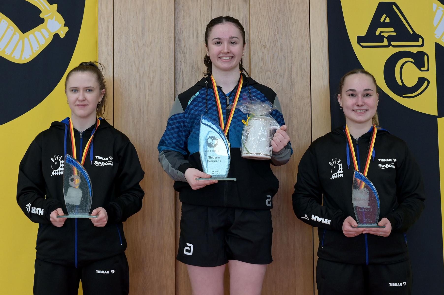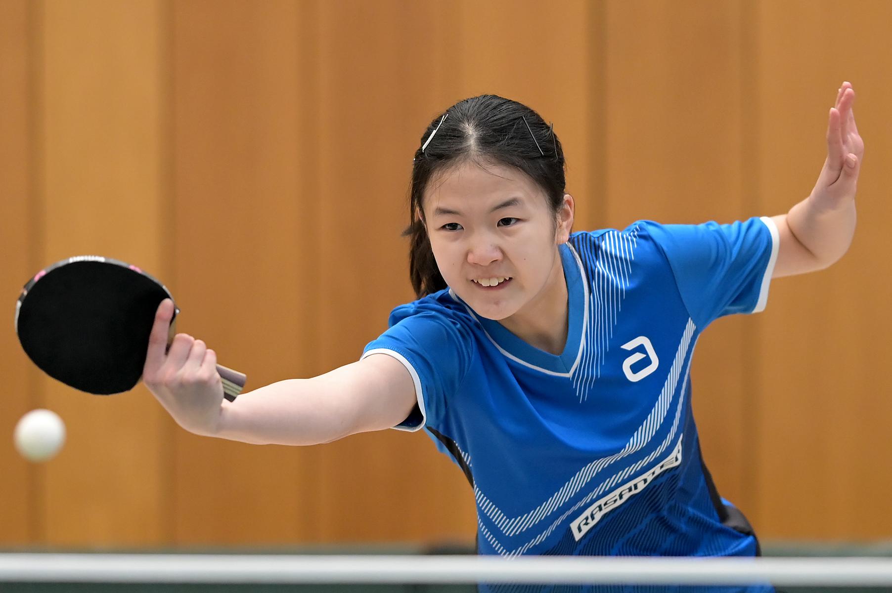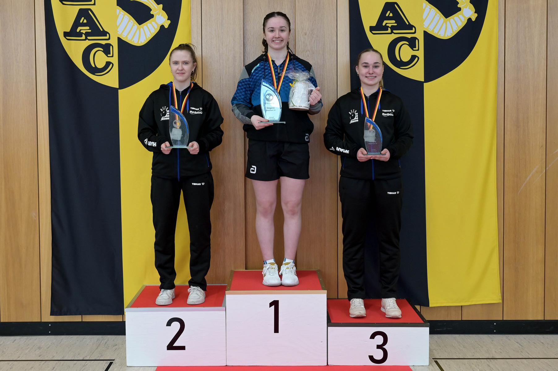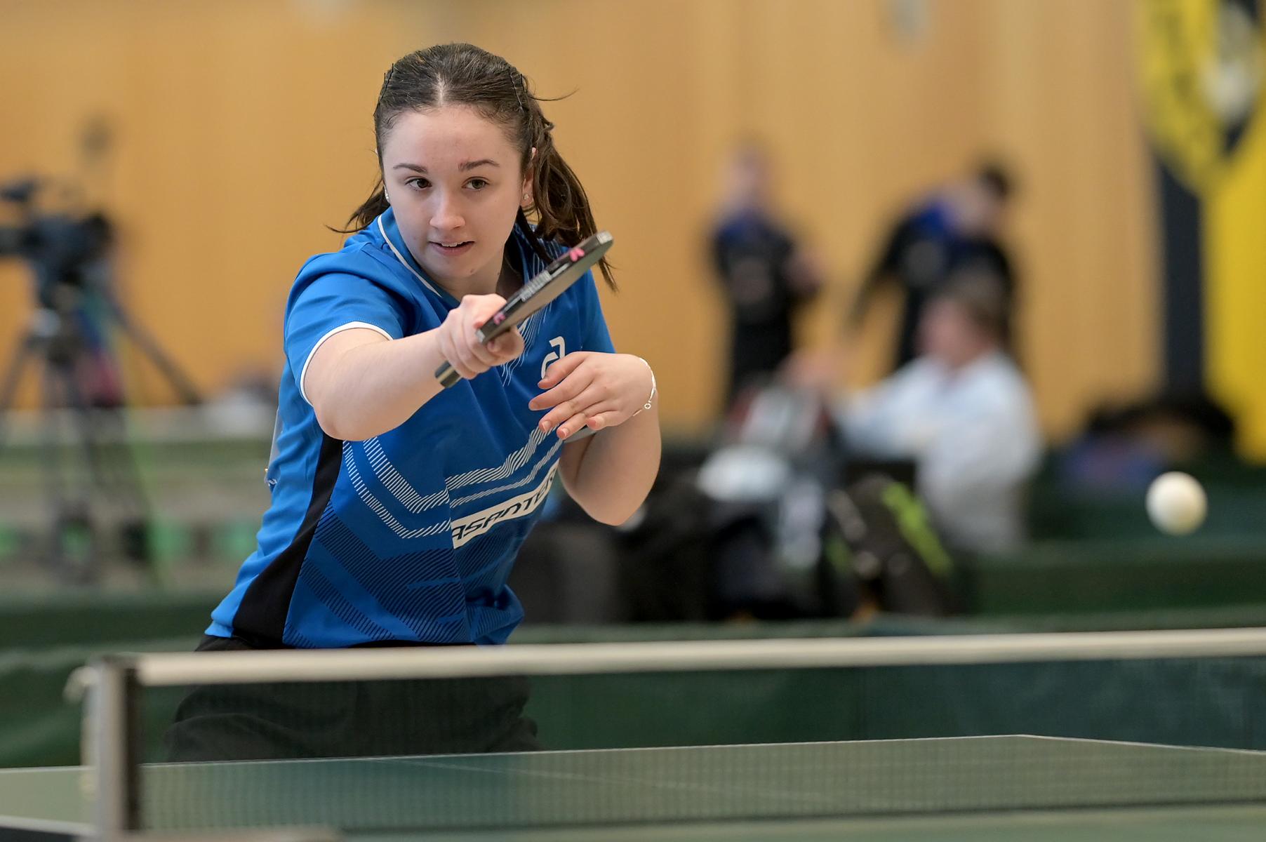 Eireen Kalaitzidou nahm die Favoritenrolle an. War sie doch beim DTTB TOP 24 Ranglistenturnier noch mit Bronze nach Düsseldorf zurückgekehrt, so war es am Sonntagnachmittag die Goldmedaille, die ihr als verdienten Lohn für ihre hervorragenden Leistungen an den Turniertagen überreicht wurde. Zum Schluss standen neun Siege und eine Niederlage auf dem Zettel. Entsprechend groß war ihre Freude bei der Siegerehrung.