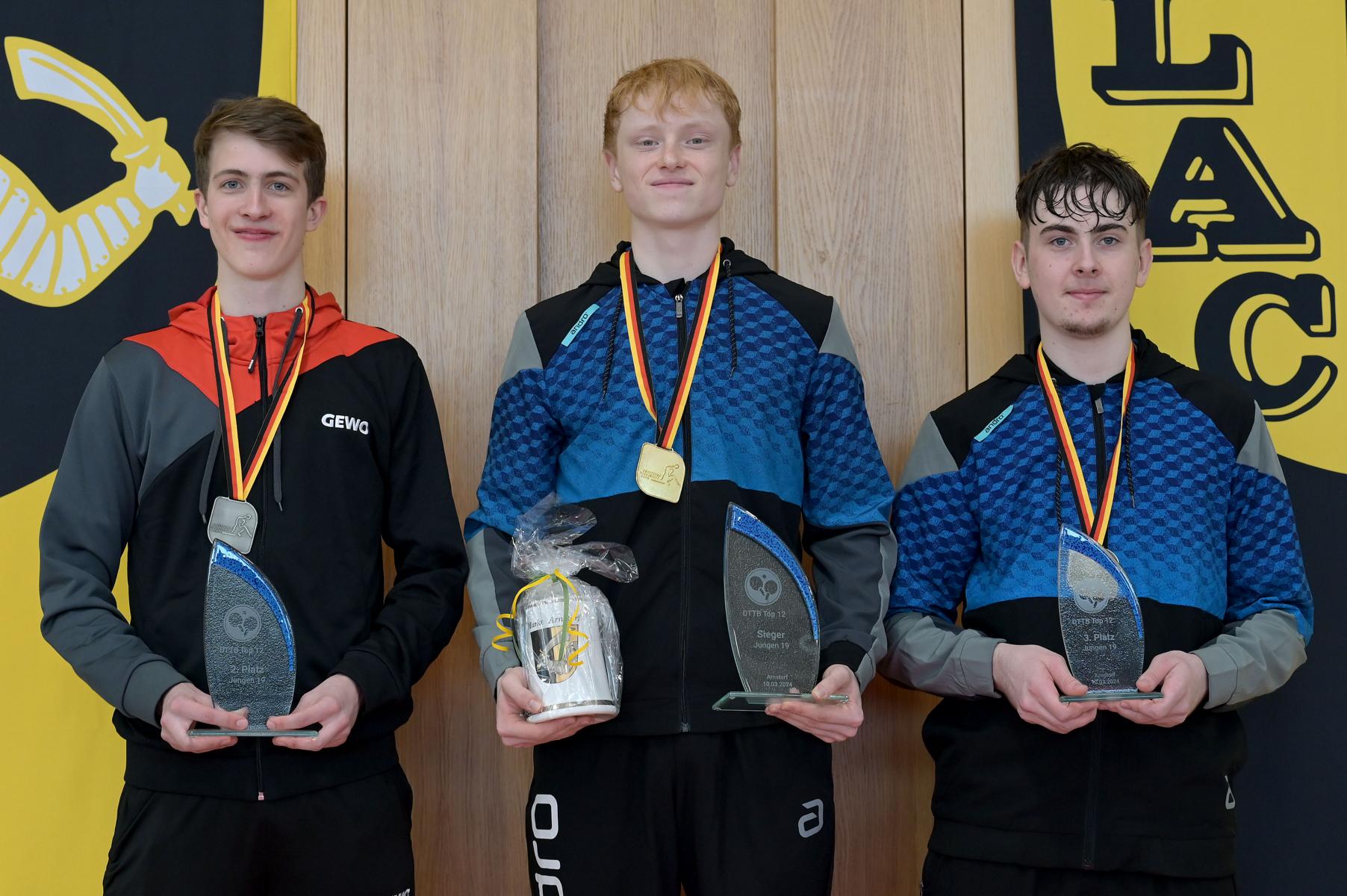 Am vergangenen Wochenende fanden die DTTB TOP 12 Ranglisten der Jugend 15/19 im beschaulichen Arnstorf satt. Leider mussten der zweitplatzierte der DTTB TOP 24 Wim Verdonschot (Borussia Dortmund) und Johann Mangus Mahl (Schalke 04) krankheitsbedingt absagen. So fuhren die Trainer, Betreuer und das Orgateam die mehr als 650km lange Strecke mit folgenden Nachwuchskünstlern des WTTV nach Bayern. Bei den Mädchen 15 starteten Reha Zhu Chen (Borussia Düsseldorf) und Ruoqi Wei (TG Neus). Für die Jugend 19 Ranglisten qualifizierten sich Eireen Kalaitzidou (Borussia Düsseldorf), Luisa Düchting (TTG Langenich), Andre Bertelsmeier (1. FC Köln), Friedrich Kühn von Burgsdorff (Post SV Gütersloh), Jamal Oudriss (TV Refrath) sowie Tobias Sältzer (Borussia Düsseldorf). Und mit 2x Gold und Bronze im Gepäck konnte die Heimreise am Sonntag angetreten werden.