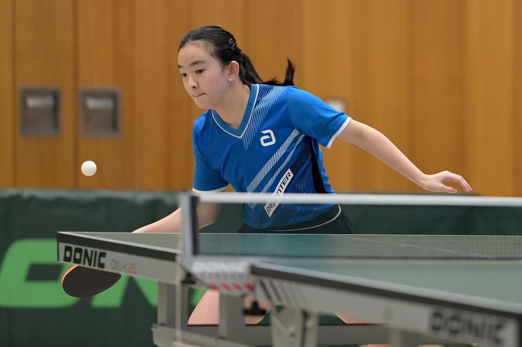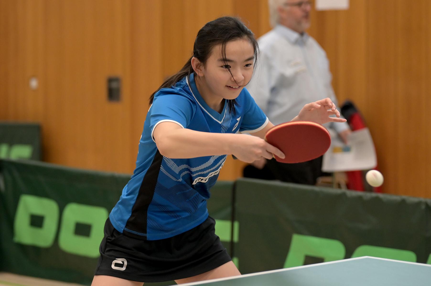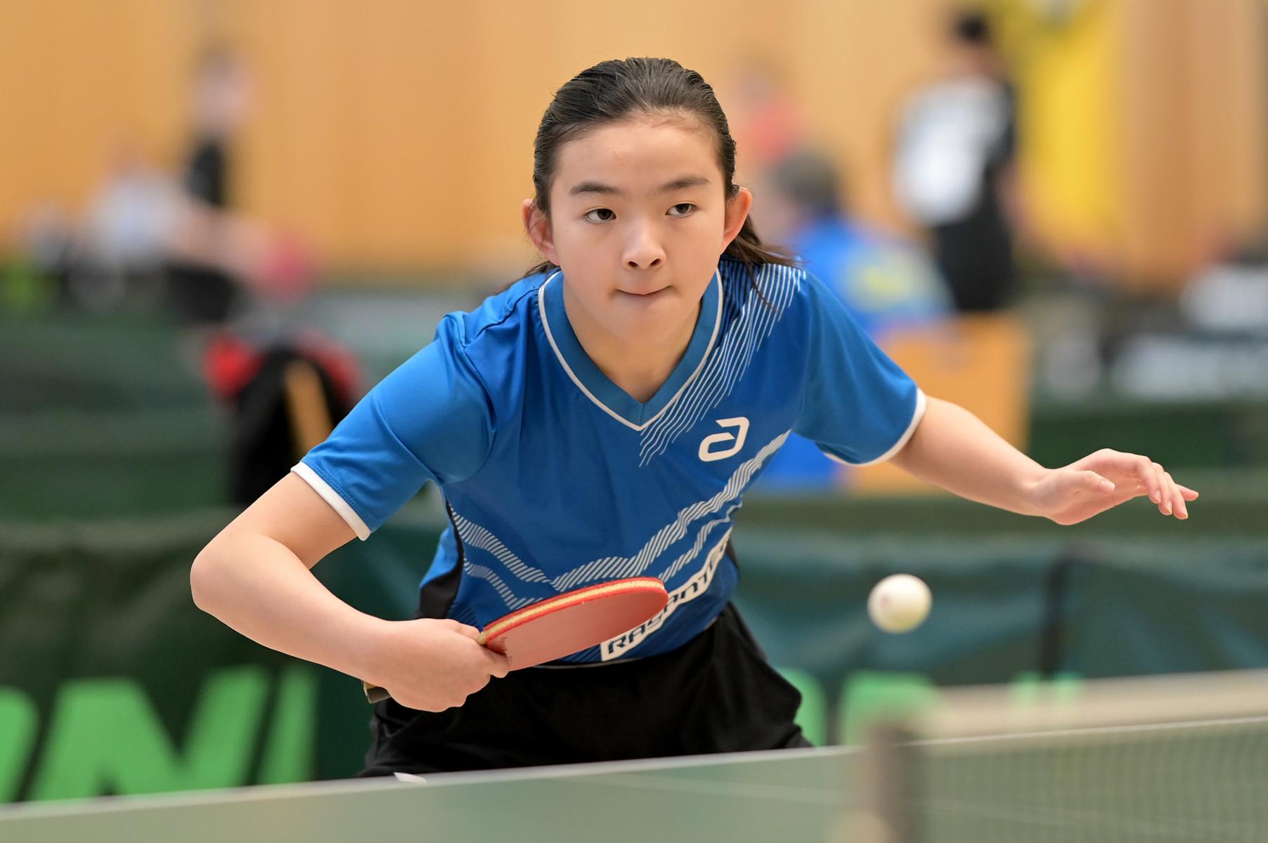 Mit Reah Zuh Chen und Ruoqi Wei qualifizierten sich zwei junge Nachwuchsspielerinnen für das Turnier der besten deutschen Talente. Reha spielte am Samstag eine Bilanz von 4:3 und lag somit auf Platz sechs. Am Sonntag schaffte sie noch zwei weitere Siege. Gleich vier Spielerinnen hatten zum Schluss eine Bilanz von 6:5 und teilten sich die Plätze 4-7. Reha schaffte es auf Platz fünf, da sie bei Satzgleichstand weniger Bälle erspielt hatte. Ruoqi schaffte es am ersten Tag mit einer Bilanz von 3:4 auf Platz acht. Am Sonntag schaffte sie noch einen Sieg und wurde zum Schluss neunte. Beide Nachwuchskünstlerinnen des WTTV haben gezeigt, dass sie durchaus mit dem älteren Jahrgang mithalten können.