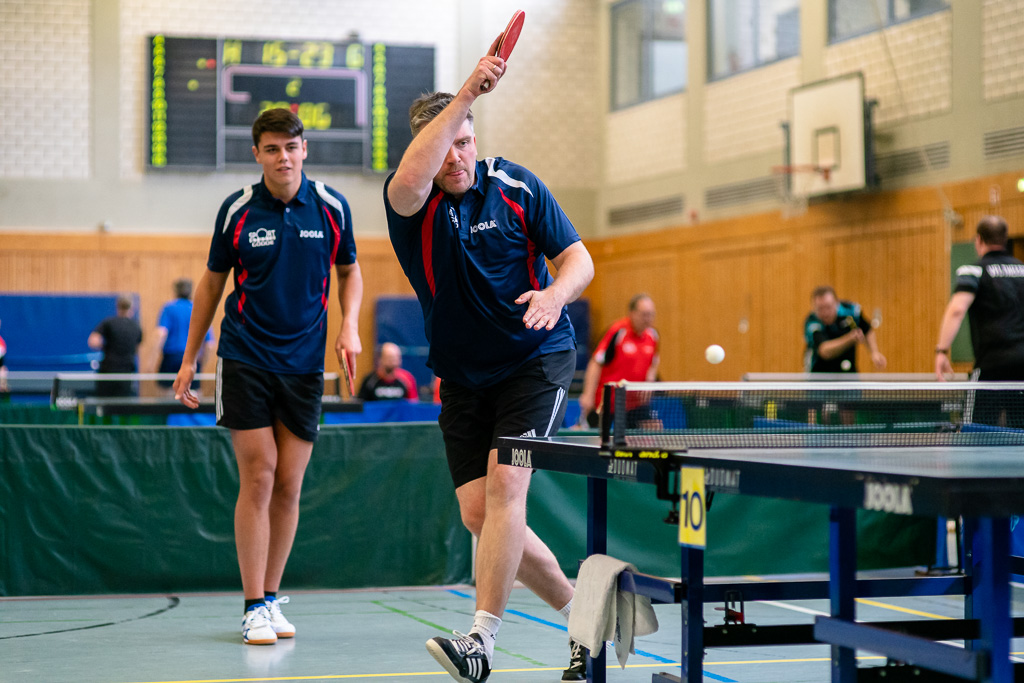 Am 04.05.2019 hat eine Abordnung des Tischtenniskreis Westmünsterland an einem verbandsinternen Mannschaftsturnier für Kreise, Bezirke und WTTV-Mitarbeitern teilgenommen. Zwischen drei und seschs Spielern konnten an den jeweiligen Partien teilnehmen. In der ersten Runde traf man auf den Ausschuss für Erwachsenensport des WTTV. In der Aufstellung Kuth – Brors – Kuth/Borninkhof – Kampshoff – Borninkhoff gelang ein deutlicher 5:0 Erfolg, bei dem nur ein Satz abgegeben wurde. Das besondere an dem Tag war, dass die Sätze bis 13 gespielt wurden. Es gab zwei Gewinnsätze und für den Fall eines Entscheidungssatzes ging es dort nur bis 9.