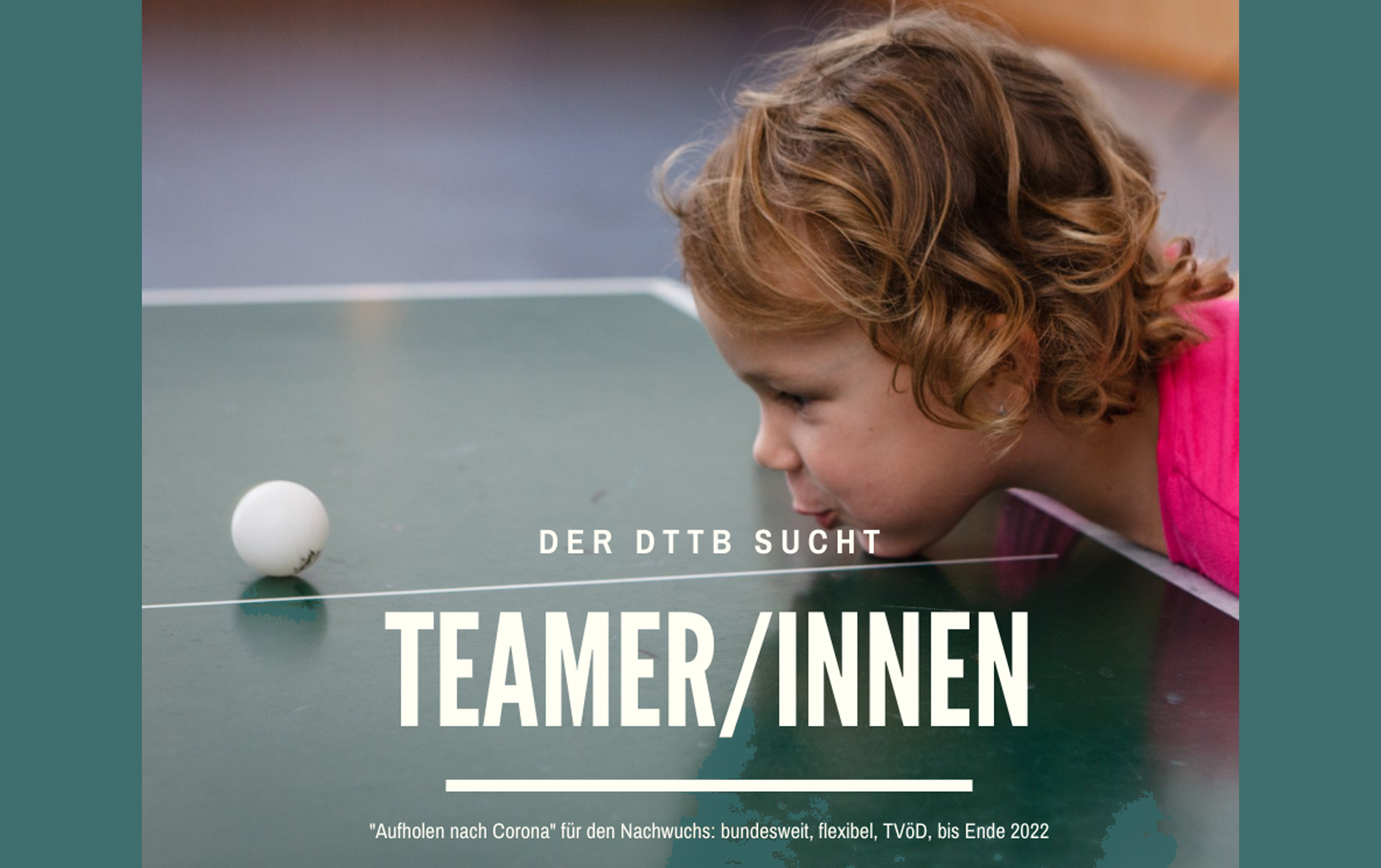 Teamer/Teamerinnen für Aktionsprogramm Der Deutsche Tischtennis-Bund sucht engagierte, professionell agierende Mitarbeiterinnen und Mitarbeiter, die in Festanstellung mindestens 20 Stunden pro Woche (Vergütung gemäß TVöD) oder auf Honorarbasis bundesweite Aktionstage und … Weiterlesen