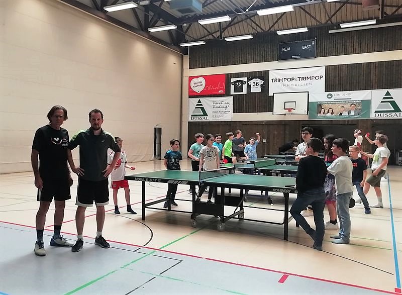 Nach vielen Emails, die sich Herr Peifer und Herr Hoter im Vorfeld zugeschickt hatten – es mussten ja etliche organisatorische Details vorab geklärt werden – war es dann zu Beginn des 2. Halbjahres 2022/23 so weit: Die AG konnte am 9. Februar in der modernen Sportanlage Königshof Krefeld gestartet werden. Zuvor spendeten die TTF der Rhenania drei Tischtennisplatten und Tischtennisnetze. Weitere zwei Tischtennisplatten, Bälle und Schläger wurden dank der Initiative von Herrn Alexander Peifer durch die Schule bestellt und neu angeschafft. Aushänge und Flyer sorgten zusätzlich für die nötige Aufmerksamkeit bei den SchülernInnen.