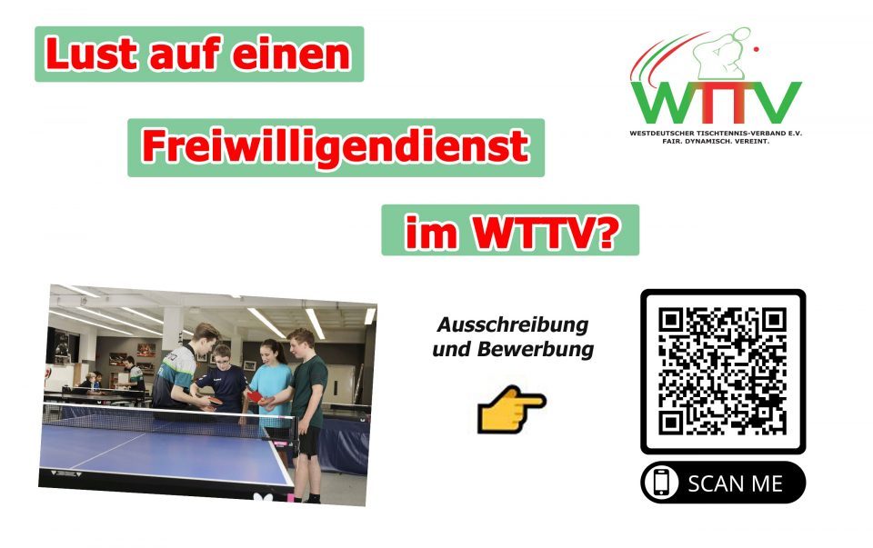 Dann werde Teil unseres Teams und bewirb dich für einen Bundesfreiwilligendienst (BFD) in der Geschäftsstelle des Westdeutschen Tischtennis-Verbandes e.V.