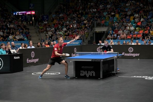 Ohne Pause ging es weiter, und Anton Källberg und Cedric Meissner zeigten den Zuschauern, warum Tischtennis die schnellste Rückschlagsportart der Welt ist. Die Geschwindigkeit, mit der sich die zwei Akteure die Bälle sprichwörtlich um die Ohren schlugen, war beeindruckend. Källberg, die Nr. 19 in der Weltrangliste, unterstrich erneut seine Klasse und siegte mit 3:0.