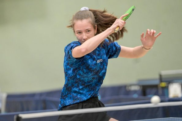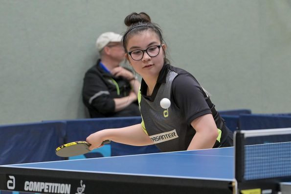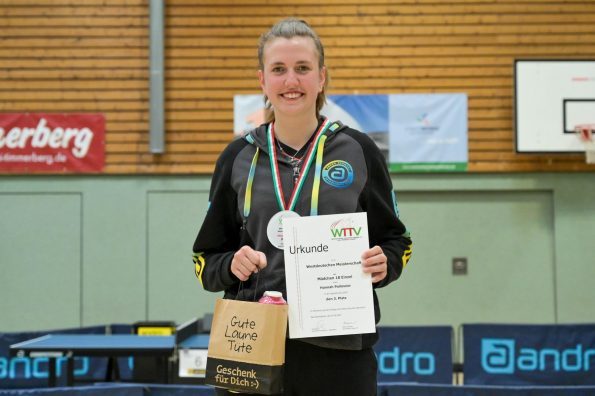 Auch bei den Mädchen 18 gab es in der Vorrunde keine Überraschungen und alle Favoritinnen zogen in die KO-Runde ein. Im Viertelfinale musste sich dann aber die an Position eins gesetzte Melinda Maiwald (TTV Hövelhof) Luisa Düchting (TTG Langenich) mit 1:3 geschlagen geben. Luisa traf dann im Halbfinale auf Felina Busch (SC Fortuna Bonn) und die beiden zeigten gerade im ersten Satz ein sehr spannendes Spiel, denn dieser endete mit 23:21 für Felina, die am Ende das Spiel dann in vier Sätzen für sich entscheiden konnte. Das zweite Halbfinale bestritten Charlotte Schönau (TTC GW Fritzdorf) und Hannah Pollmeier  (TTV Hövelhof). Auch dieses Spiel gestaltete sich äußerst knapp, denn alle Sätze wurden nur mit zwei Punkten Unterscheid gewonnen. Am Ende zog Charlotte mit einem 3:1 ins Finale gegen Felina ein.