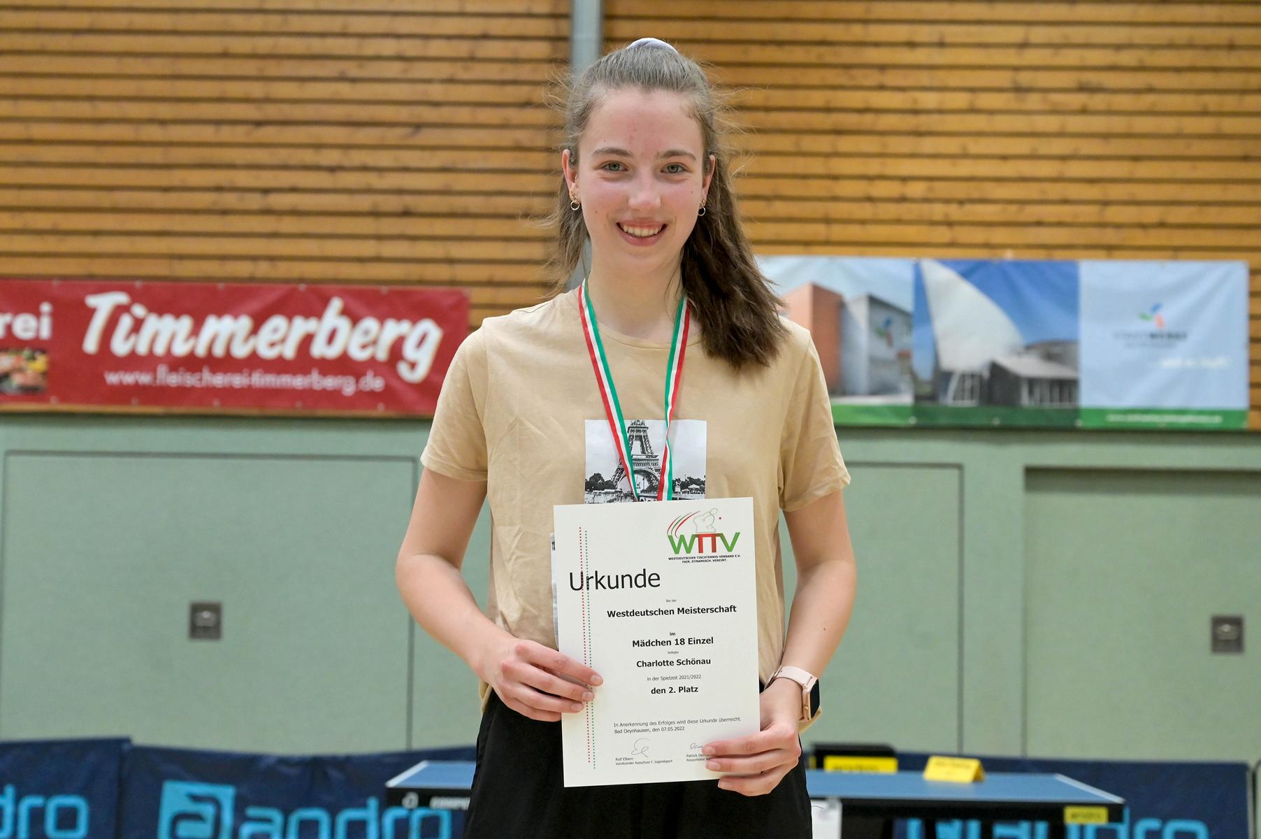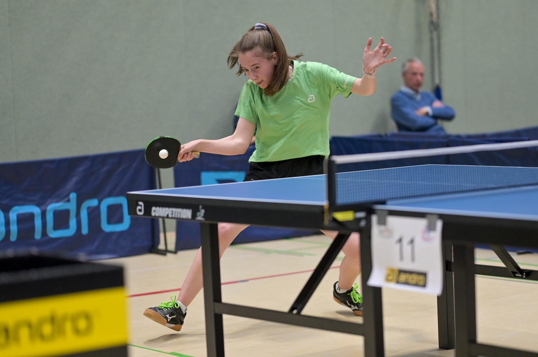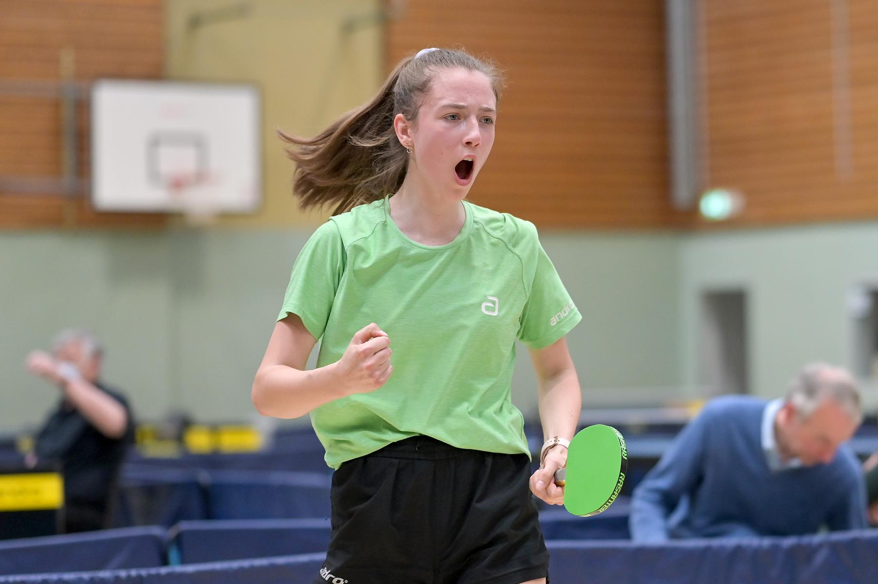 Auch bei den Mädchen 18 gab es in der Vorrunde keine Überraschungen und alle Favoritinnen zogen in die KO-Runde ein. Im Viertelfinale musste sich dann aber die an Position eins gesetzte Melinda Maiwald (TTV Hövelhof) Luisa Düchting (TTG Langenich) mit 1:3 geschlagen geben. Luisa traf dann im Halbfinale auf Felina Busch (SC Fortuna Bonn) und die beiden zeigten gerade im ersten Satz ein sehr spannendes Spiel, denn dieser endete mit 23:21 für Felina, die am Ende das Spiel dann in vier Sätzen für sich entscheiden konnte. Das zweite Halbfinale bestritten Charlotte Schönau (TTC GW Fritzdorf) und Hannah Pollmeier  (TTV Hövelhof). Auch dieses Spiel gestaltete sich äußerst knapp, denn alle Sätze wurden nur mit zwei Punkten Unterscheid gewonnen. Am Ende zog Charlotte mit einem 3:1 ins Finale gegen Felina ein.