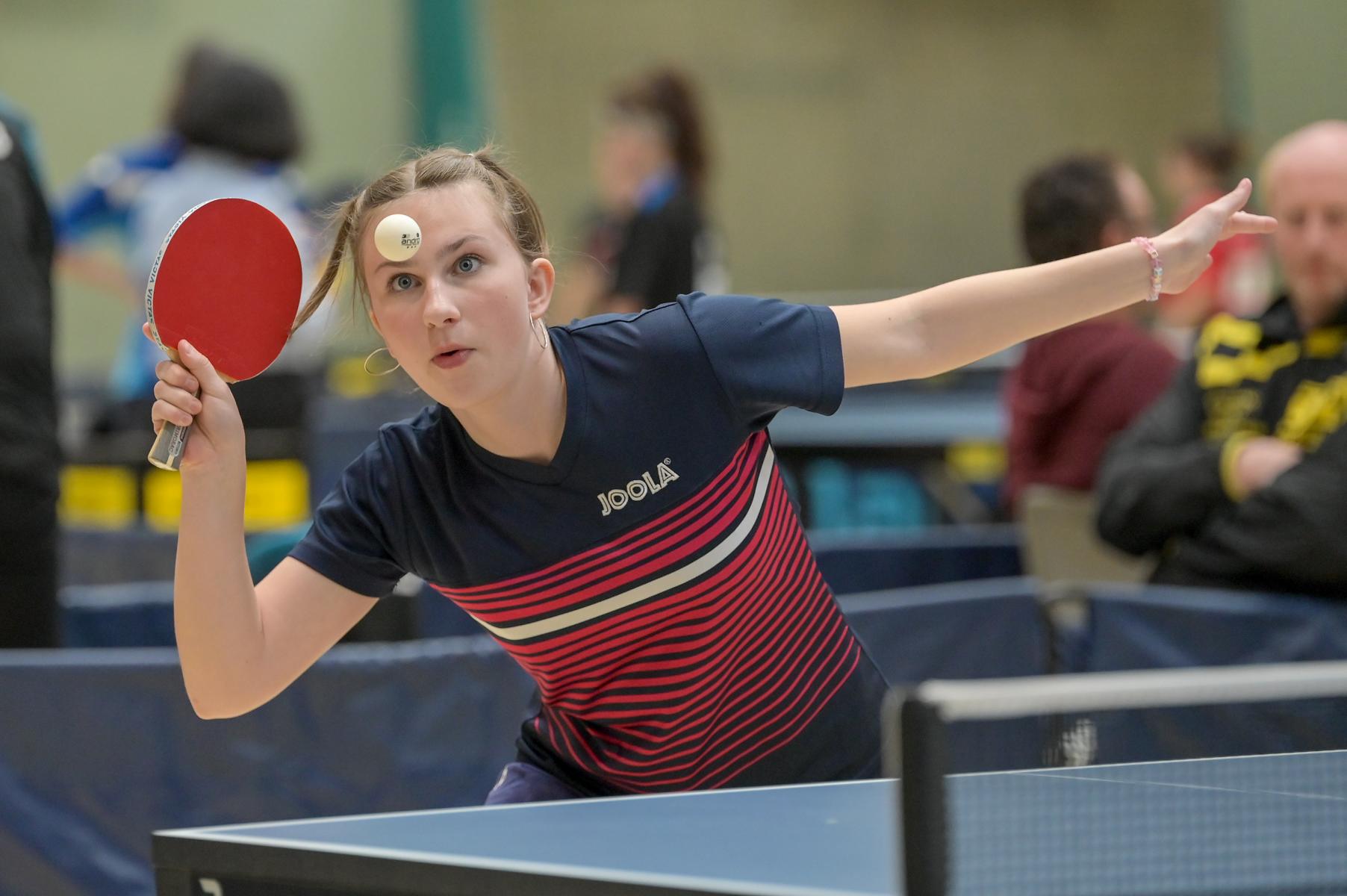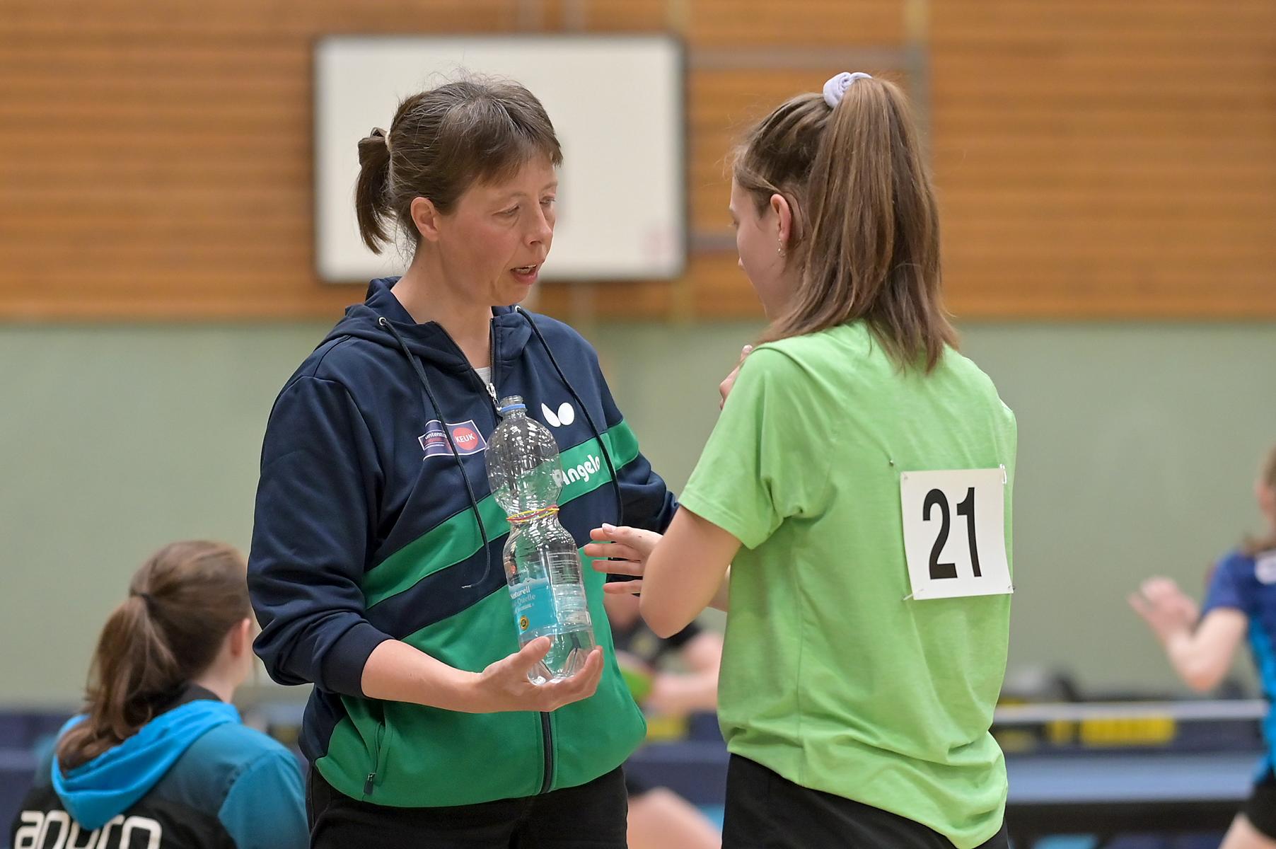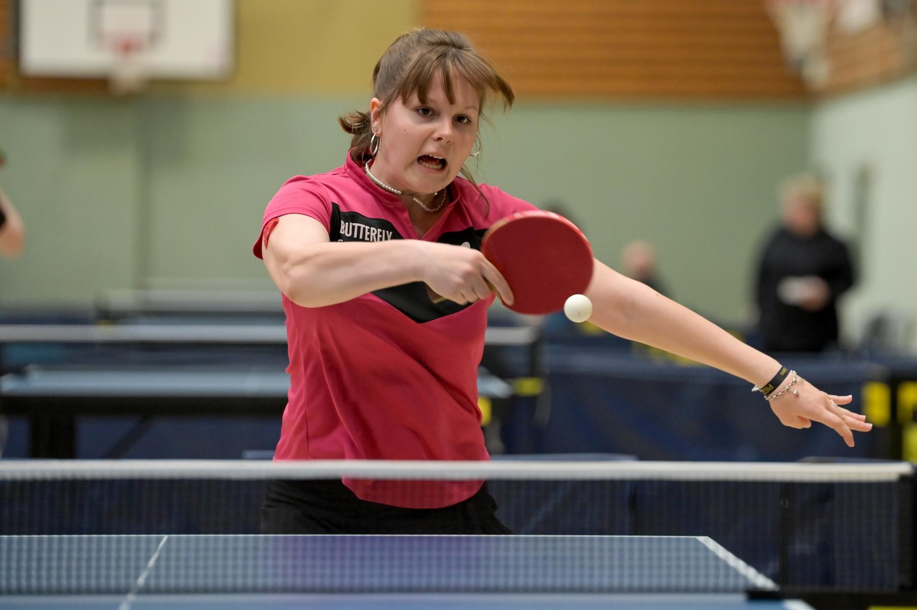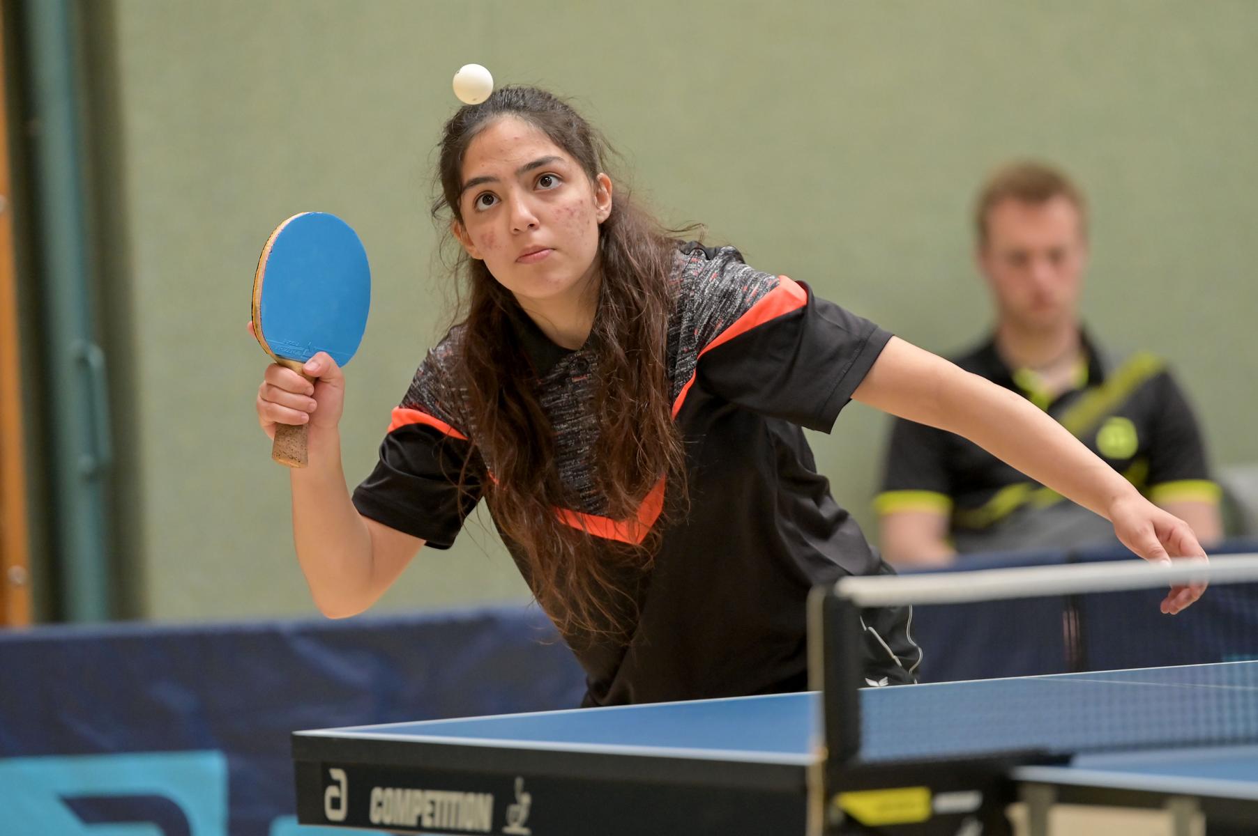 Auch bei den Mädchen 18 gab es in der Vorrunde keine Überraschungen und alle Favoritinnen zogen in die KO-Runde ein. Im Viertelfinale musste sich dann aber die an Position eins gesetzte Melinda Maiwald (TTV Hövelhof) Luisa Düchting (TTG Langenich) mit 1:3 geschlagen geben. Luisa traf dann im Halbfinale auf Felina Busch (SC Fortuna Bonn) und die beiden zeigten gerade im ersten Satz ein sehr spannendes Spiel, denn dieser endete mit 23:21 für Felina, die am Ende das Spiel dann in vier Sätzen für sich entscheiden konnte. Das zweite Halbfinale bestritten Charlotte Schönau (TTC GW Fritzdorf) und Hannah Pollmeier  (TTV Hövelhof). Auch dieses Spiel gestaltete sich äußerst knapp, denn alle Sätze wurden nur mit zwei Punkten Unterscheid gewonnen. Am Ende zog Charlotte mit einem 3:1 ins Finale gegen Felina ein.