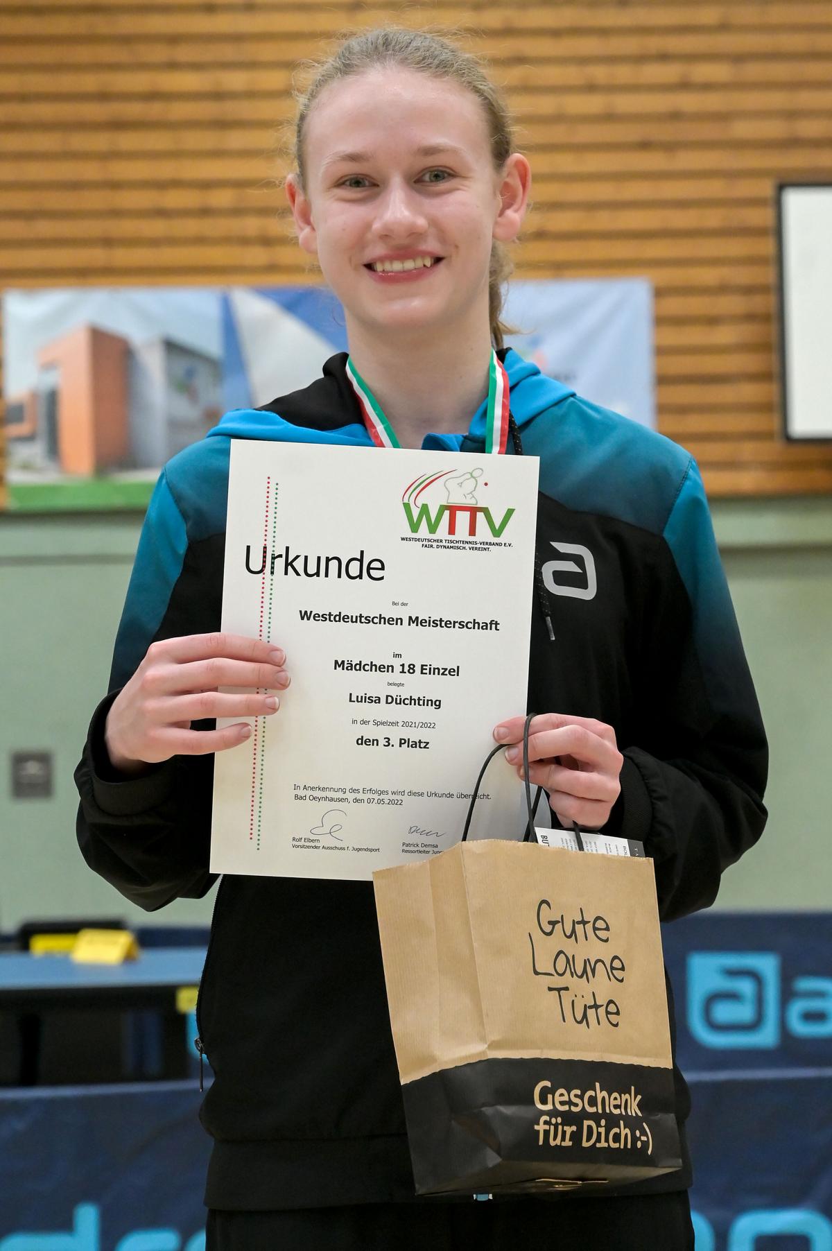 Am Wochenende fanden die Westdeutschen Meisterschaften der Jugend 18 und 15 in Bad Oeynhausen statt. Wir danken dem TTU Bad Oeynhausen für die tolle Ausrichtung an beiden Turniertagen.