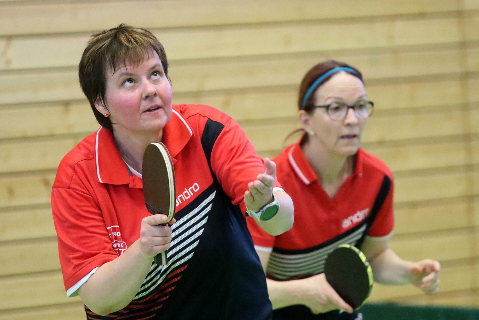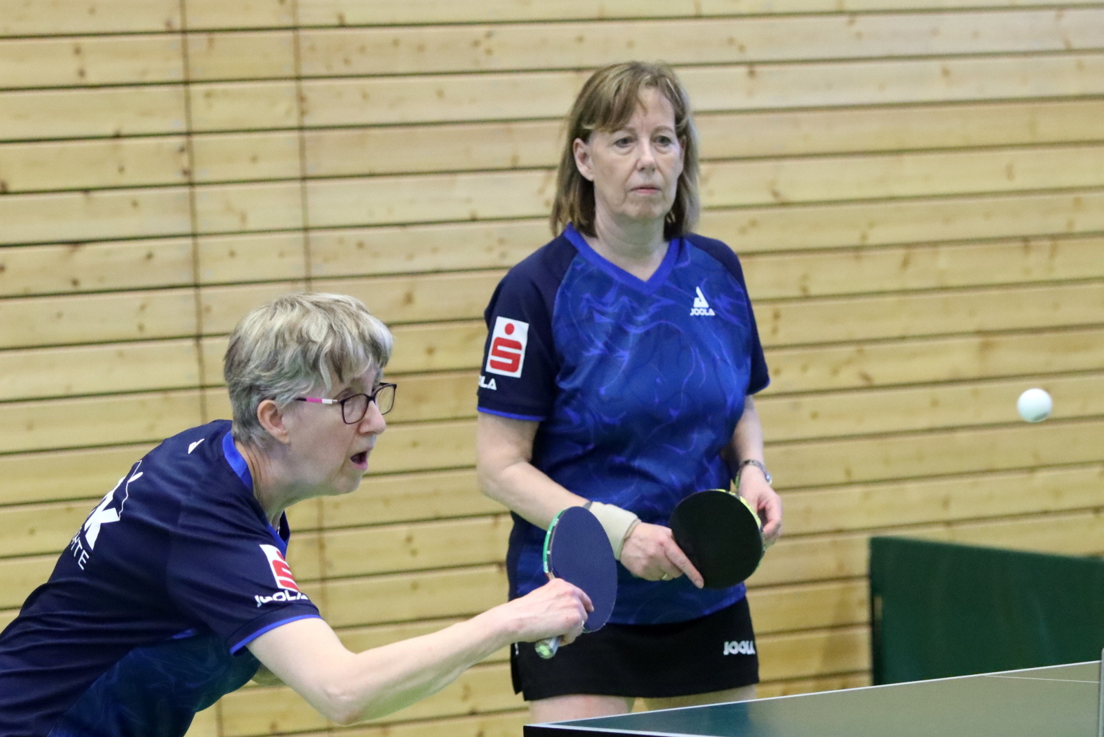 Auch die Seniorinnen boten in ihren Klassen großartigen Tischtennissport. Überragend hier der TTC 1950 Holzwickede der im Jubiläumsjahr zwei Titel einfahren konnte. Bei den Seniorinnen 50 siegten etwas überraschend Cornelia Kober und Cindy Schöler durch viele knappe und hart erkämpfte Spiele. Bei den Seniorinnen 60 verteidigten Kornelia Ruthenbeck und Antje Röhle-Gutsche ihren Titel aus dem Vorjahr. Bei den Seniorinnen 40 siegten Simone Ewinger und Petra Schoulen für den TTC GW Fritzdorf im Endspiel knapp mit 3:2 gegen DJK VfL Willich mit Bettina Balfoort und Wendy Snijders. Die Entscheidung fiel im Doppel, als Ewinger/Schoulen knapp mit 3:2 siegten.