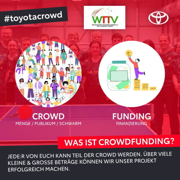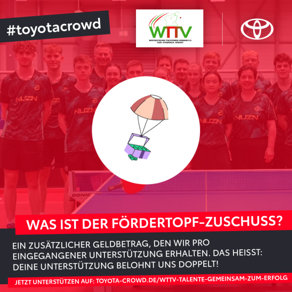 Dank einer Crowdfunding-Initiative und einem Fördertopf von Toyota haben wir nun die Gelegenheit, unsere Athleten noch stärker zu unterstützen. Trotz unserer intensiven Bemühungen stoßen wir als WTTV e.V. jedoch immer häufiger an finanzielle Grenzen. Aus diesem Grund hoffen wir auf Ihre Unterstützung, um die finanziellen Hürden gemeinsam zu überwinden. Diese Chance möchten wir für unsere Athleten nicht ungenutzt lassen.