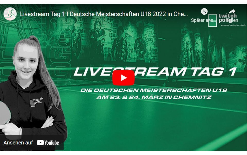 Der DTTB bietet an beiden Tagen wieder einen kommentierten Livestream an. Am Samstag und Sonntag werden ab 8.45 Uhr u.a. Sophia Klee und Benedikt Probst live aus der Richard-Hartmann-Halle die Deutschen Meisterschaften Jugend U18 begleiten.