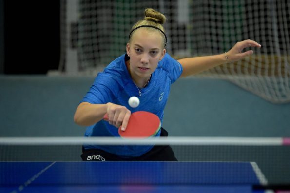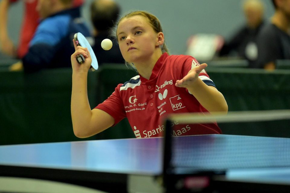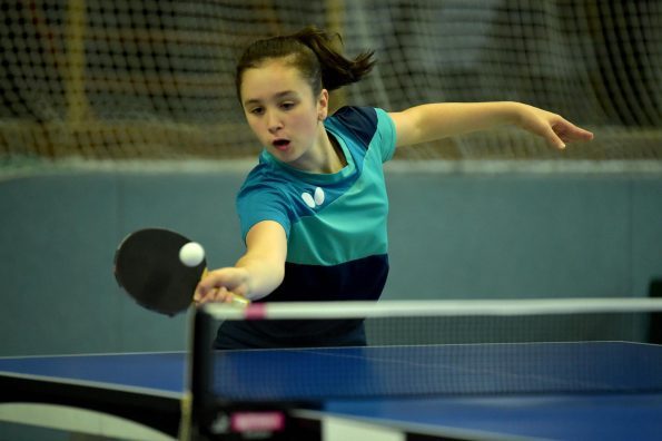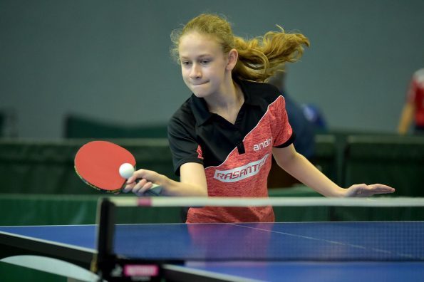 Ganz anders sah das Geschehen bei den Mädchen 15 aus. Hier gab es mit Luisa Düchting eine Spielerin, die mit einer 9:0-Bilanz die Rangliste etwas überraschend ungeschlagen und souverän gewinnen könnte. Die Überlegenheit von Luisa, die noch bei der Jugend 13 spielberechtigt ist, zeigte sich auch daran, dass sie in den neun Spielen lediglich drei Sätze abgeben musste. Einen Satz in wohl einem der Schlüsselspiele dieser Rangliste gegen die zwei Jahre ältere und bis zur Endrangliste freigestellte Melinda Mailwald (TTV Hövelhof). Die beiden Mitfavoritinnen trafen bereits in der dritten Runde aufeinander. Es entwickelte sich ein sehr spannendes und knappes Spiel, indem alle Sätze nur mit zwei Punkten Unterschied entschieden wurden. Dieser Sieg gab Luisa Selbstvertrauen und so revanchierte sie sich auch gegen Eireen Kalaitzidou (Borussia Düsseldorf) für die knappe 2:3-Niederlage vor ein paar Wochen beim TOP 10 der Mädchen 13. Melinda konnte gegen Eireen mit 3:1 gewinnen und sicherte sich so mit nur einer Niederlage Platz zwei und damit ebenfalls die Fahrkarte zum TOP 48. Den dritten Rang belegte Eireen, die durch ihren Sieg beim TOP 10 der Mädchen 13 diese schon sicher hatte.