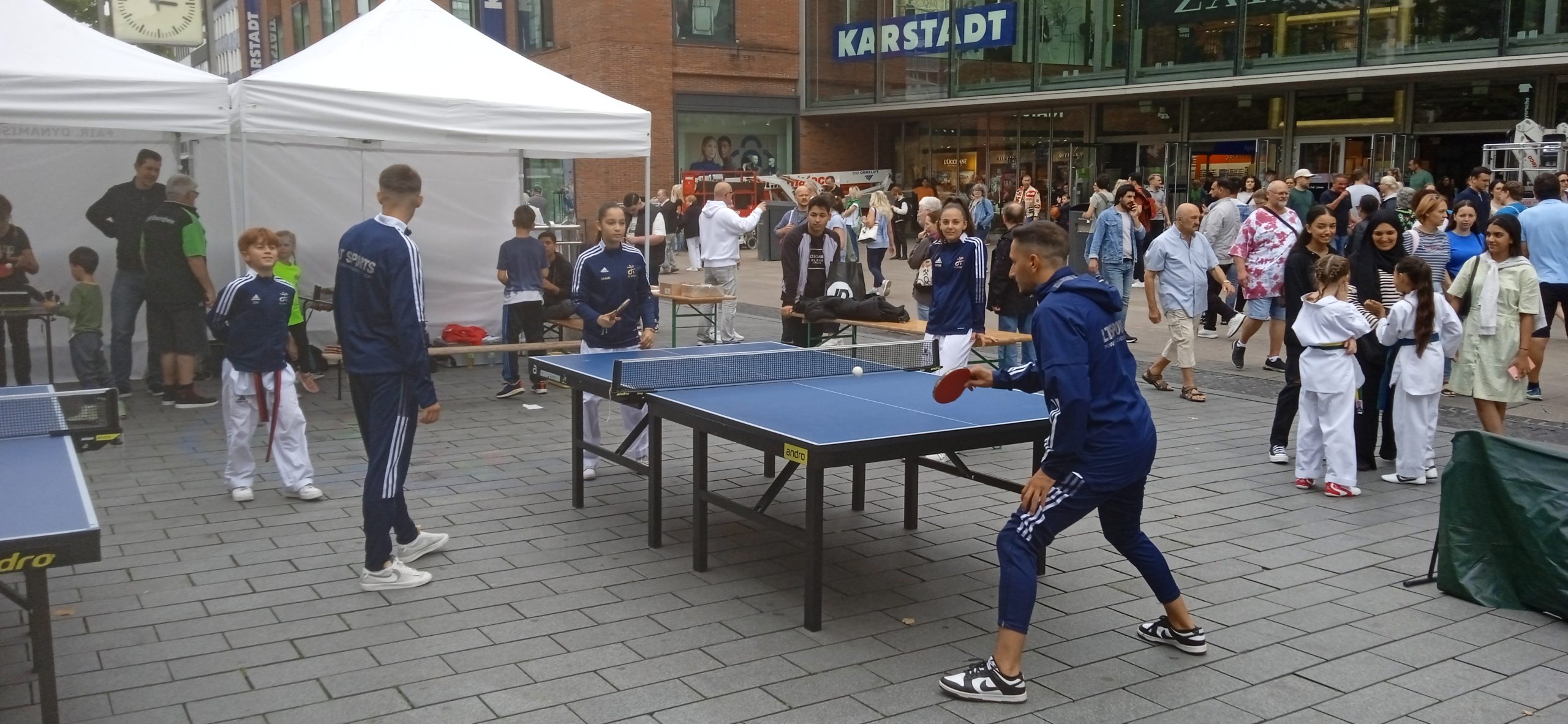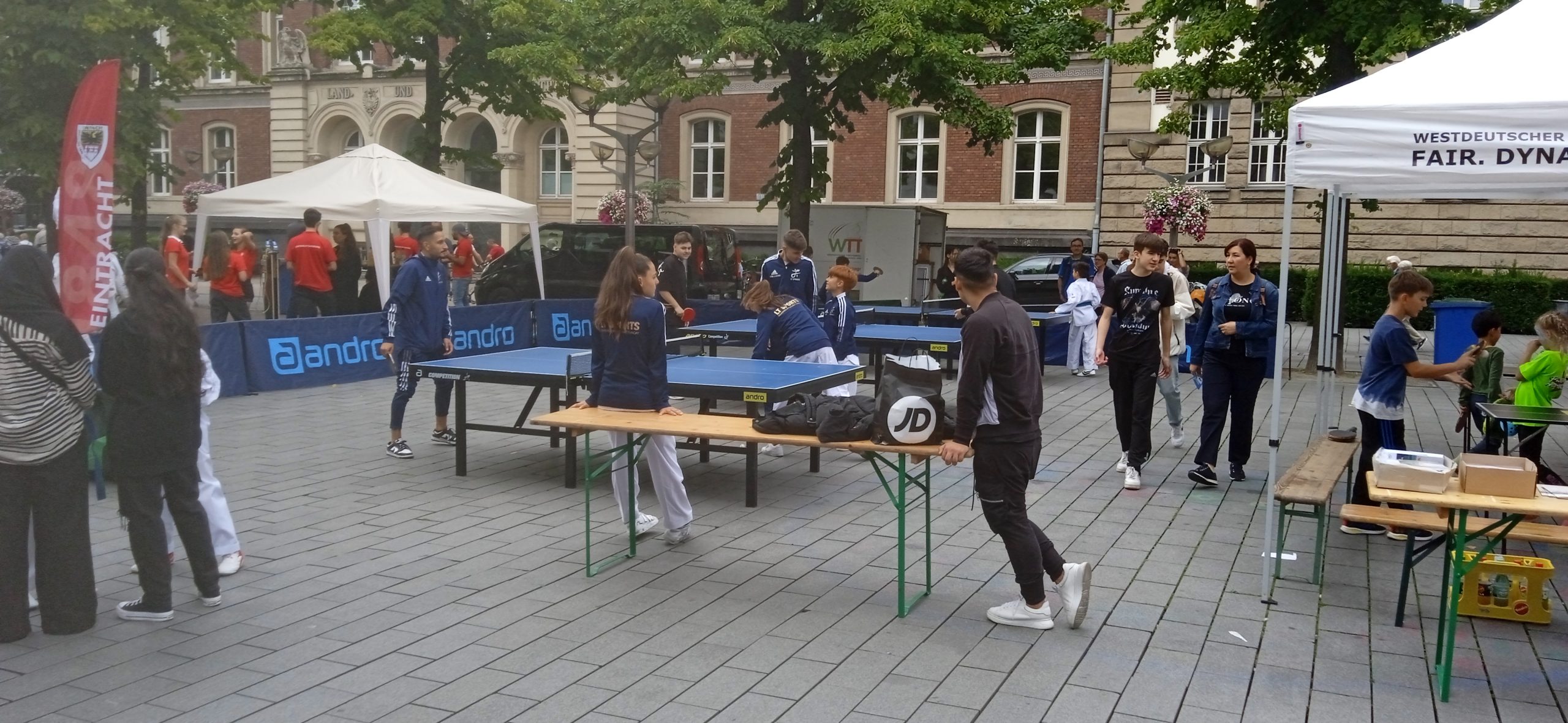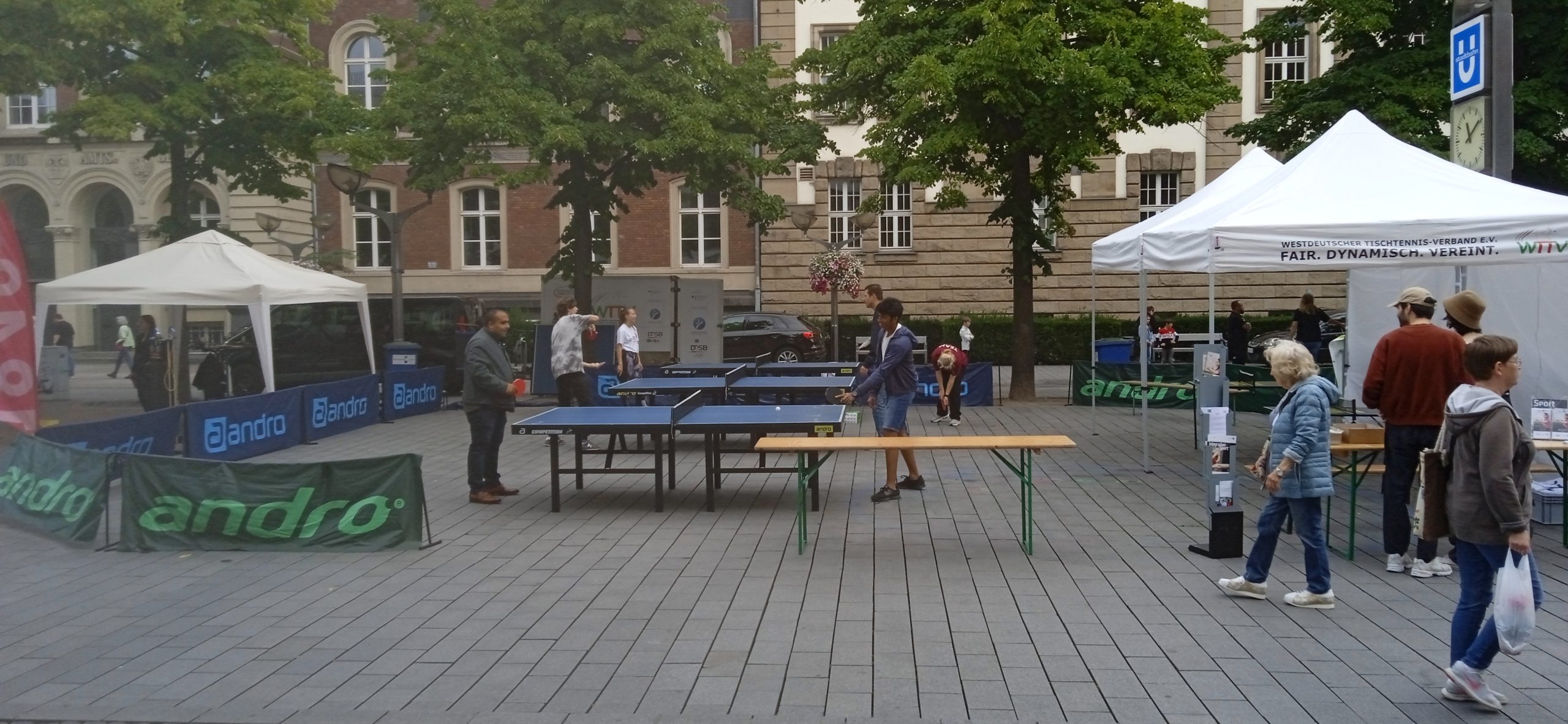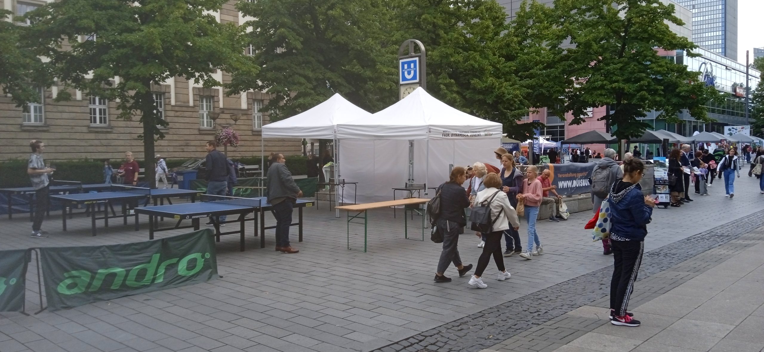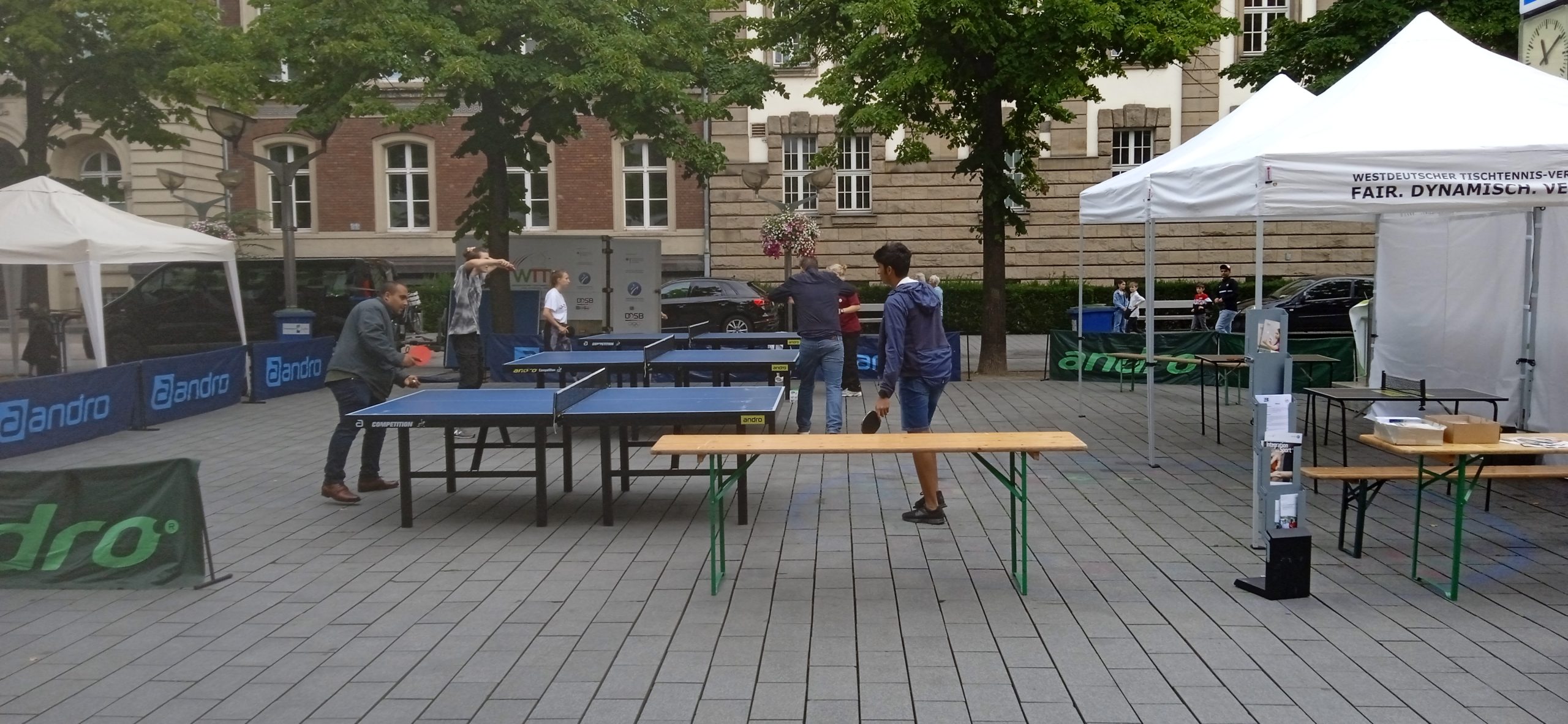 Die Fachschaft Tischtennis Duisburg meldete sich dieses Jahr an, um unseren Sport zu vertreten. Der WTTV begleitete das Event und stellte dafür das nötige Material in Form von Tischen, Spielfeldumrandungen, Pavillons, Schlägern, Bällen und Infomaterials. Es wurden viele Vereinslisten an Interessierte verteilt und auch dieses Jahr wurden die Tische wieder durchgehend bespielt. An dem hochfrequentierten Standort, direkt vor dem Forum, konnten wir die Präsenz von Tischtennis wieder weit nach vorne bringen. Wir freuen uns auf das nächste Jahr!