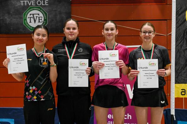 Bei den Mädchen führte kein Weg an der U15- und Nationalspielerin Emma Li vorbei. Ihr schwerstes Match hatte Emma im Viertelfinale gegen die Linkshänderin Rahel Nolten. Nach einer 2:0-Satzführung verlor Emma kurzzeitig den Faden, während Nolten mit einer druckvollen Vorhand immer besser ins Spiel fand und zum 2:2 ausglich. Im Entscheidungssatz zeigte Emma jedoch ihre Klasse, fand zu ihrer Spielstärke zurück und gewann deutlich mit 11:2.