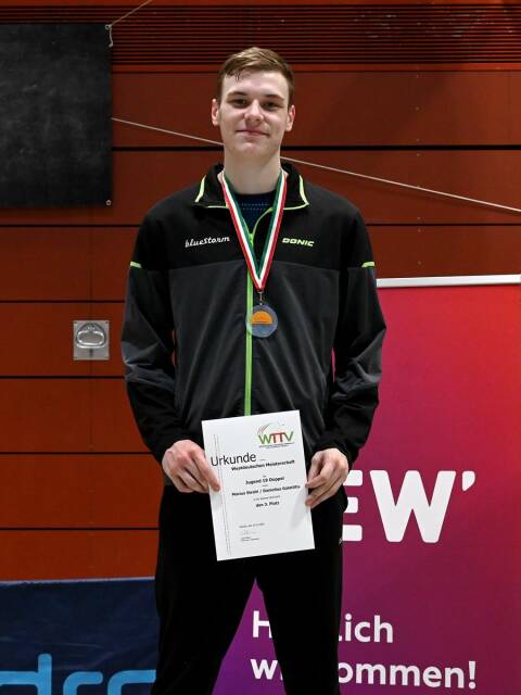 Wie gut Maximilian Faß an diesem Wochenende aufgelegt war, zeigte er spätestens im Viertelfinale. In einem spannenden Fünfsatzmatch setzte er sich mit 3:2 gegen Danielius Galatiltis durch. Im Halbfinale war dann allerdings Endstation: Marius Strahl erwies sich nach seinem starken 3:1-Erfolg gegen den an Nummer eins gesetzten Alexander Sahakiants im Viertelfinale als zu stark. Trotz der 0:3-Niederlage durfte sich Maximilian über die Bronzemedaille freuen.