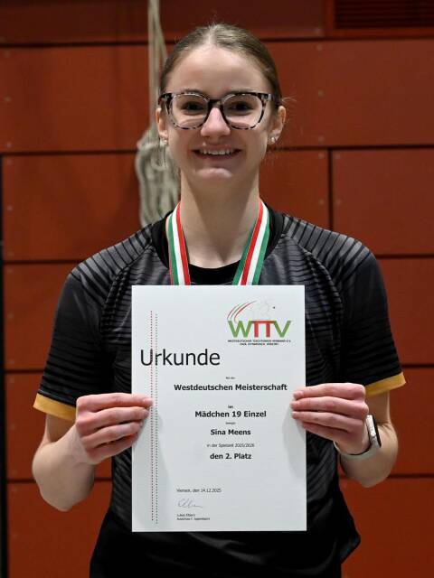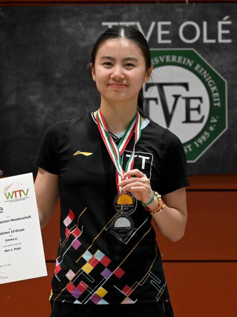 Sina Meens erwischte im Finale den besseren Start und gewann den ersten Satz mit 11:8. Danach agierte Emma Li taktisch cleverer, erhöhte den Druck und setzte sich am Ende verdient mit 3:1 durch. Herzlichen Glückwunsch!