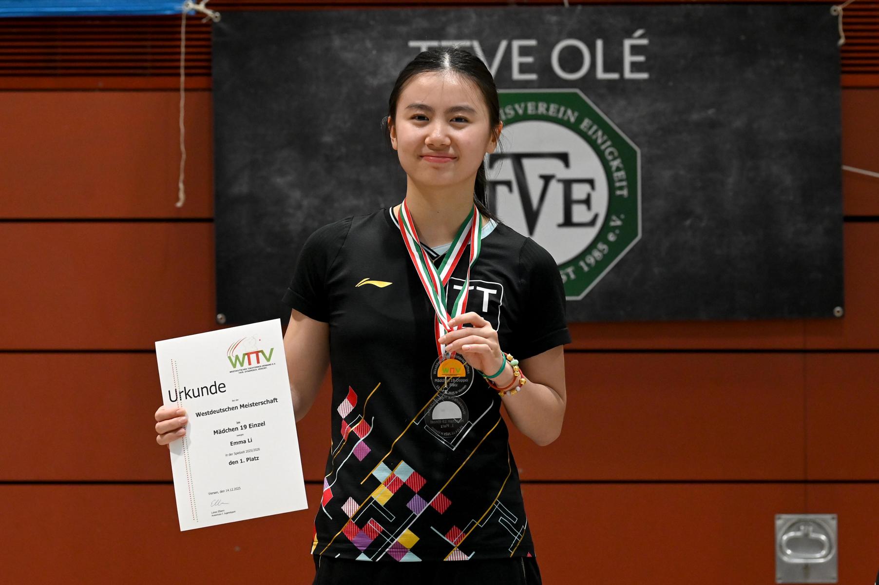 Die Westdeutschen Einzelmeisterschaften der Jugend 19 wurden in Viersen ausgetragen. Im Einzel setzten sich Johann Mahl bei den Jungen sowie Emma Li bei den Mädchen durch.