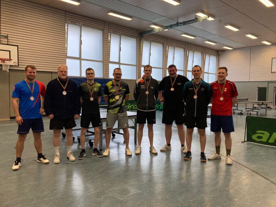 Heute fand die Endrunde der diesjährigen Herrenkreisrangliste beim Gadderbaumer TV in der Martinschule in Bielefeld statt. Die Ressortleiterin Julia Kahle hat die Veranstaltung geleitet. Am Ende gewann Sebastian Kebekus (SV Spexard) vor Frank Gizinski (TTC Enger) und Phillip Kandler (SV Spexard). Alle Ergebnisse können in click-tt eingesehen werden. Das Foto zeigt die Teilnehmer.