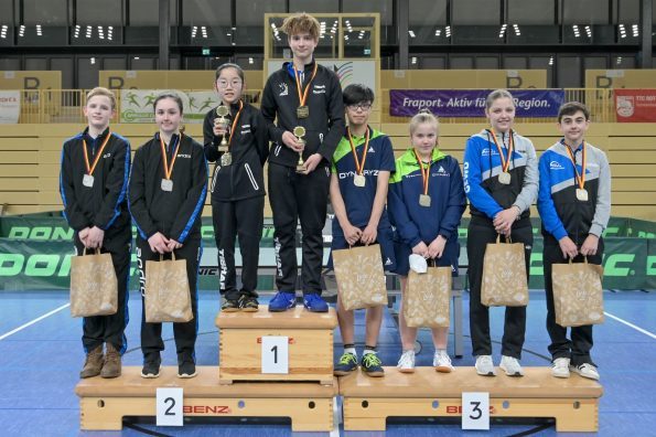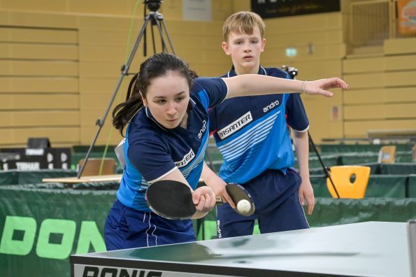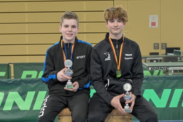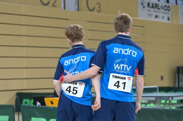 In der Jungen Doppel-Konkurrenz war im Finale dreimal das WTTV-Trikot vertreten. Denn hier trafen Noah Hersel mit seinem bayrischen Partner Matej Haspel auf Chris Andersen und Friedrich Kühn von Burgsdorff. Beide Doppel besiegten auf dem Weg ins Finale die in ihrer Hälfte topgesetzten Doppel und zeigten zum Teil unfassbare und spektakuläre Ballwechsel auf sehr hohem Niveau. Die Goldmedaille sicherten sich am Ende Noah und Matej durch ihren 3:0-Erfolg im Endspiel. Herzlichen Glückwunsch!