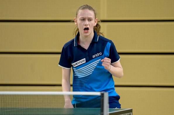 Luisa ließ in dieser Runde gegen Krießbach (HETTV) nichts anbrennen und folgte mit einem souveränen 3:0-Sieg Eireen ins Achtelfinale. Hier wartete nun allerdings die Favoritin auf den Einzeltitel, Koharu Itagaki aus Bayern. Aber davon zeigte sich Luisa keineswegs beeindruckt und spielte in dieser Partie ihr bestes Tischtennis. Nachdem sie den ersten Satz knapp mit 9:11 verloren hatte, kam Luisa immer besser ins Spiel und konnte die „kleine Sensation“ schaffen und die nächsten drei Sätze zu 10, 6 und 8 gewinnen. Das bedeutete den Viertelfinaleinzug. Dieses wollte natürlich auch Eireen erreichen, aber in ihrer Partie gegen Kloke (TTVN) kam die Düsseldorferin von Anfang an nicht so richtig ins Spiel und musste am Ende eine deutliche 0:3-Niederlage kassieren.