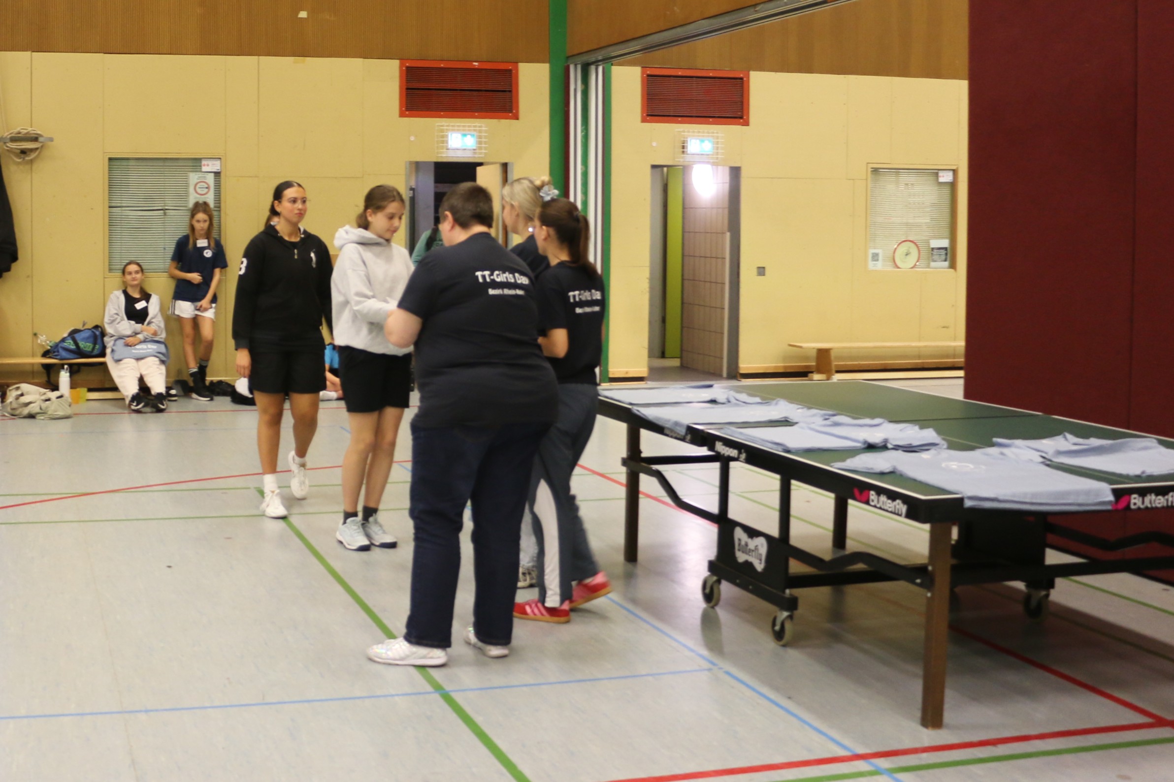 Die erste Trainingseinheit fand von 11:00 bis 13:00 Uhr statt. Aufgeteilt in drei Gruppen wurden die Mädchen nach dem Aufwärmen bei unterschiedlichen Tischtennisübungen gefordert. Jede Teilnehmerin konnte ihre Talente entfalten und gleichzeitig neue Fähigkeiten erlernen. Die Trainer sorgten dafür, dass jede Übung nicht nur lehrreich, sondern auch stets mit einer Prise Spaß verbunden war.