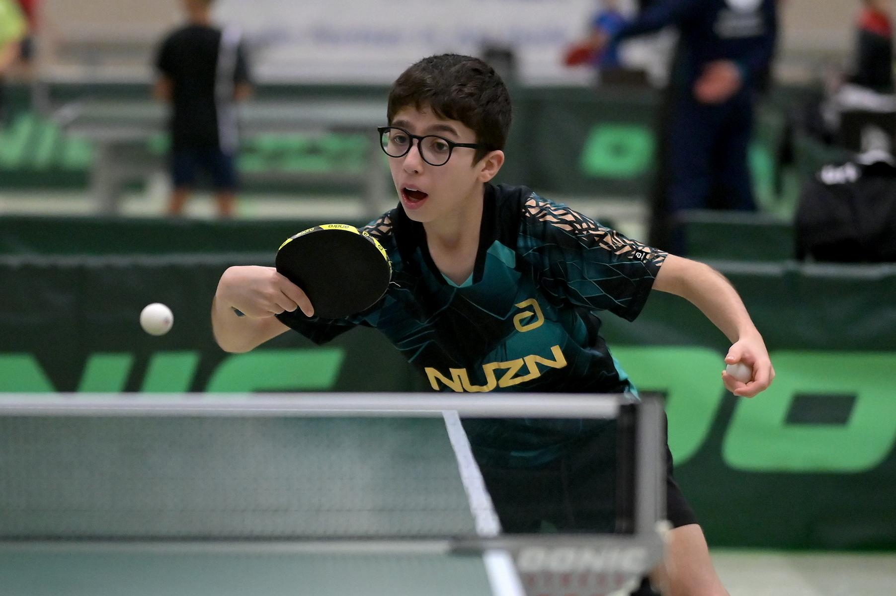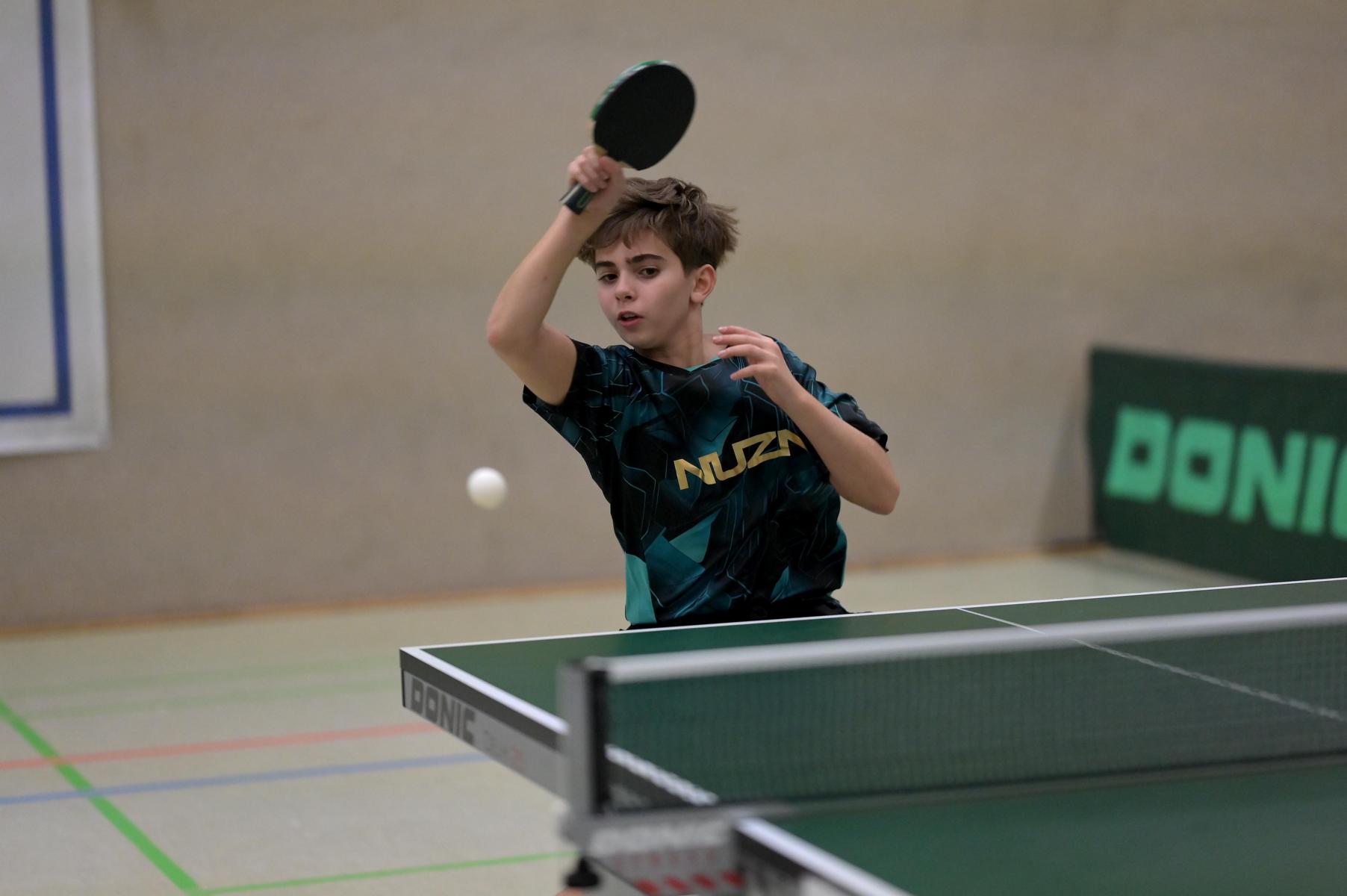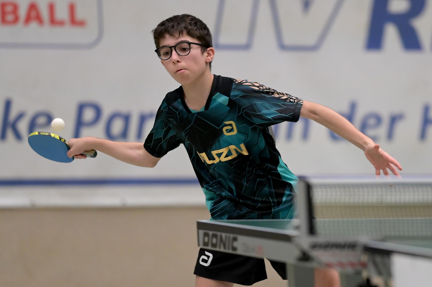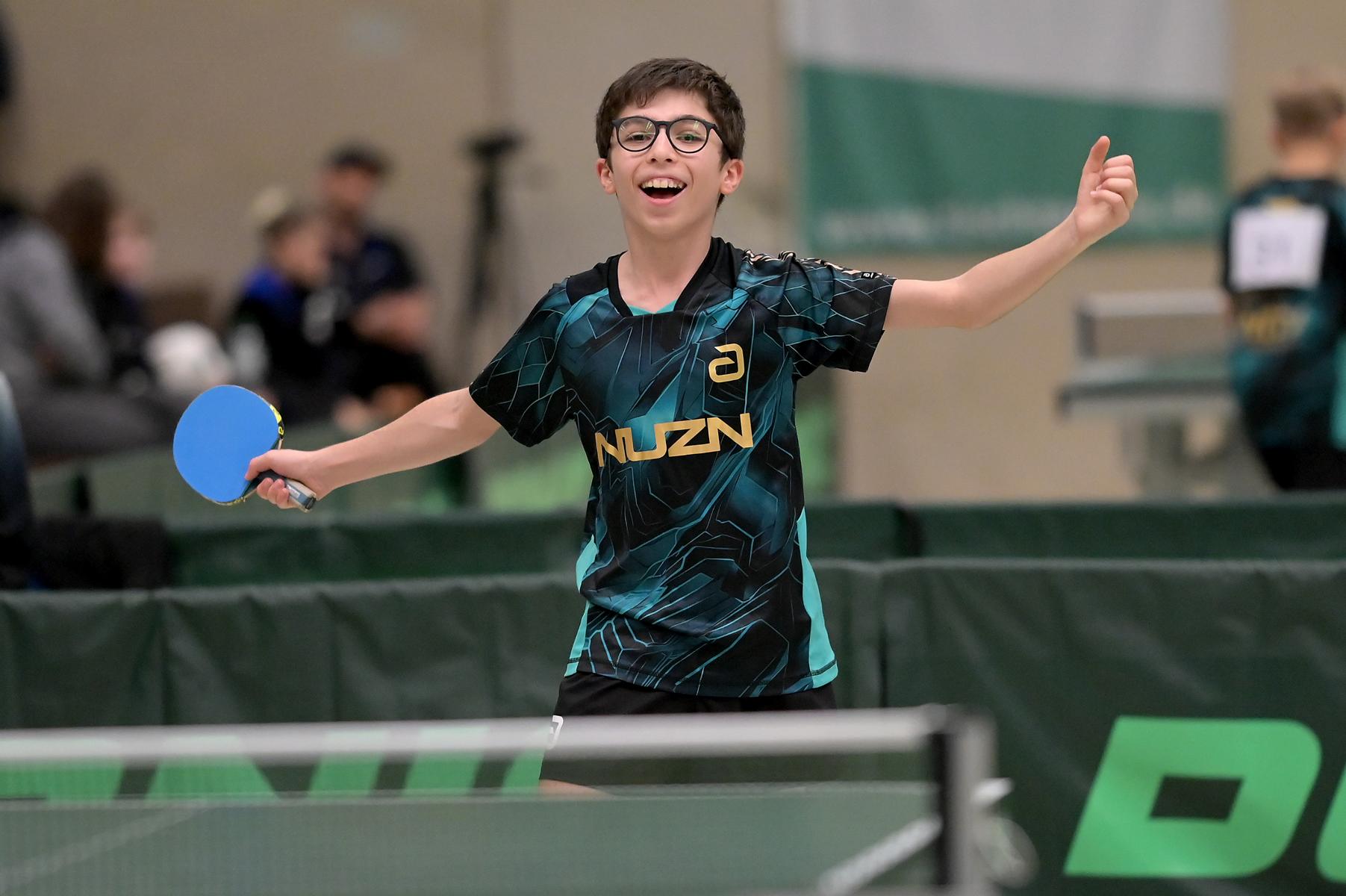 Adam Dahhan spielte eine hervorragende Vorrunde. Er konnte in seiner 8er Gruppe eine 6:1-Bilanz erspielen und sich Gruppenplatz zwei sichern. Die einzige Niederlage war gegen Kiril Manalaki aus Niedersachsen. Während die anderen drei Jungen nur noch den fünften Platz erreichen konnten, hatte Adam noch Chancen auf den Sieg der Veranstaltung. Gegen den Sachsen Koki Püschel im Viertelfinale behielt Adam auch in den knappen Situationen die Nerven und holte sich einen 3:2-Sieg und den Einzug in das Halbfinale. Im Halbfinale wartete mit Paul Flemming der nächste Sachse. Nach einem sehr umkämpften ersten Satz (12:10) kam Adam immer besser mit der Spielweise seines Gegners zurecht und holte sich auch Durchgang zwei und drei. Im Finale ging es dann erneut gegen Kiril Manalaki. Am Vortag hatte Adam noch 2:3 gegen ihn verloren und auch einen Matchball leider nicht verwandeln können. Das wollte er jetzt besser machen und sich revanchieren. Dies gelang Adam auch und er holte sich einen souveränen 3:0-Sieg und den Sieg der Veranstaltung.