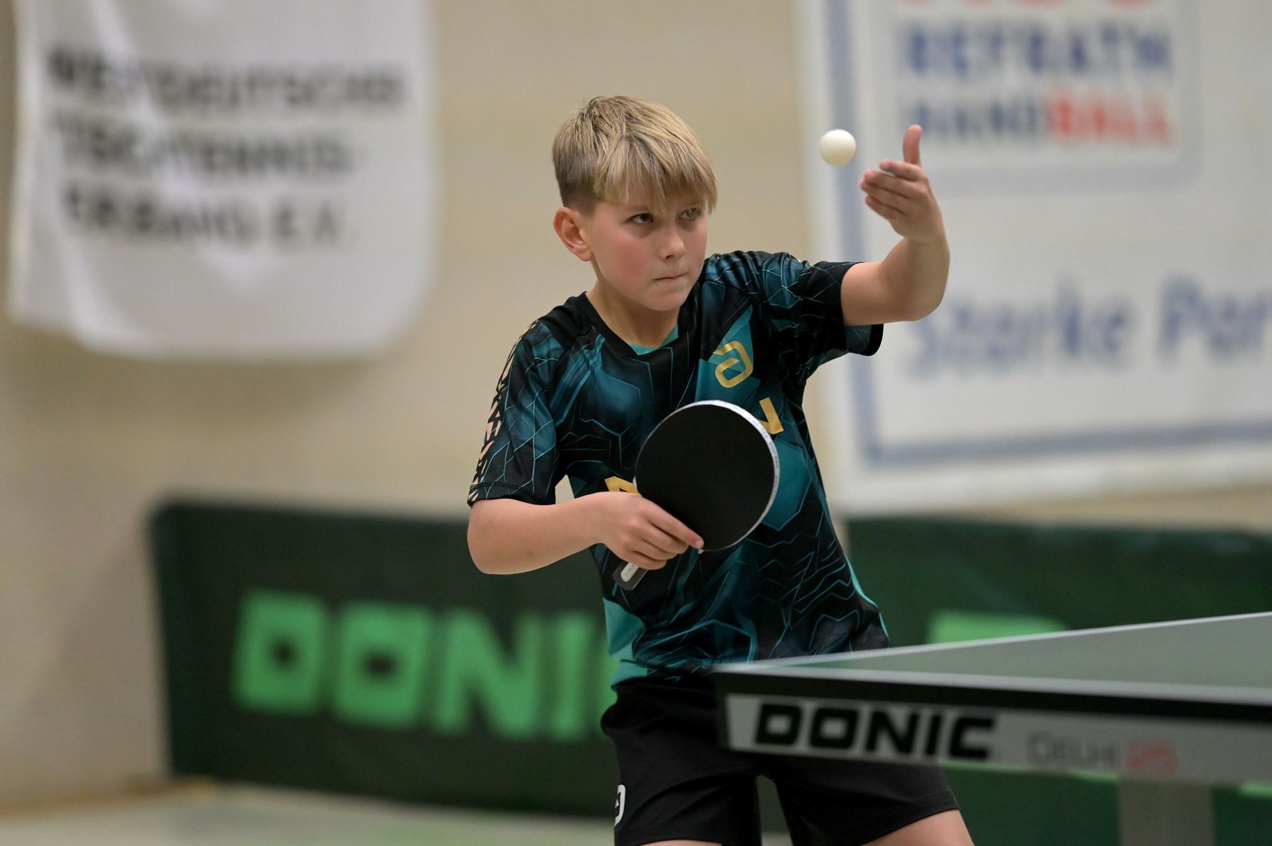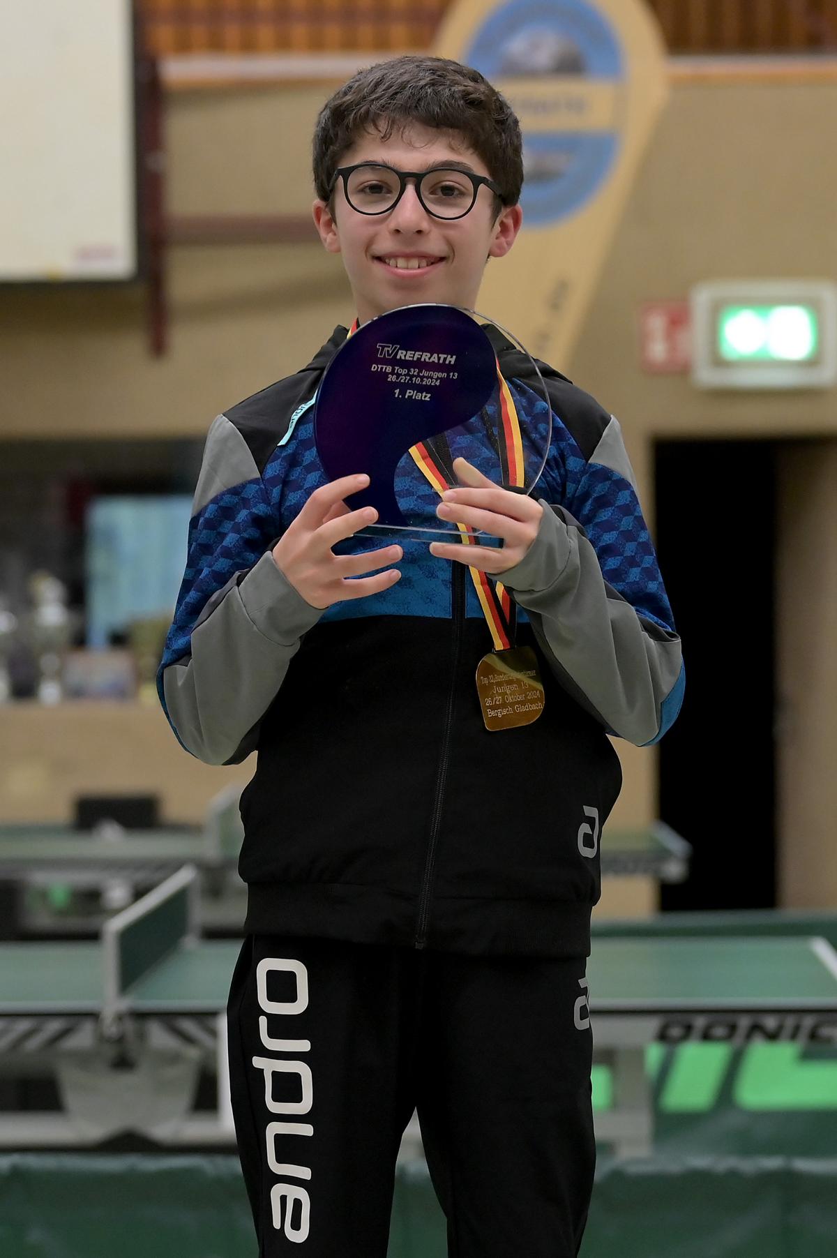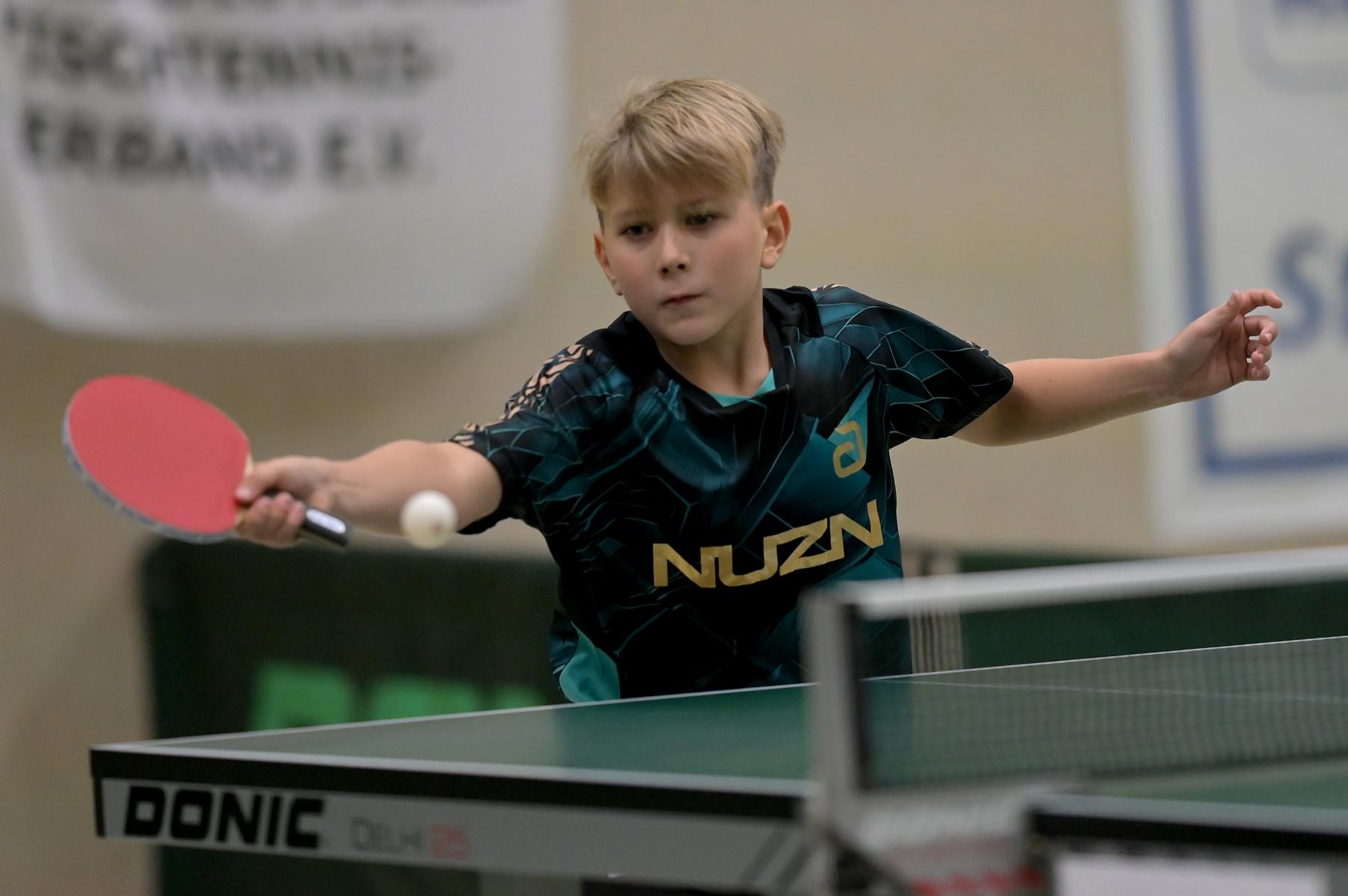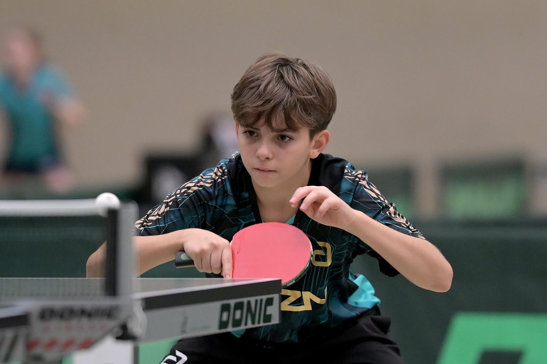 Adam Dahhan spielte eine hervorragende Vorrunde. Er konnte in seiner 8er Gruppe eine 6:1-Bilanz erspielen und sich Gruppenplatz zwei sichern. Die einzige Niederlage war gegen Kiril Manalaki aus Niedersachsen. Während die anderen drei Jungen nur noch den fünften Platz erreichen konnten, hatte Adam noch Chancen auf den Sieg der Veranstaltung. Gegen den Sachsen Koki Püschel im Viertelfinale behielt Adam auch in den knappen Situationen die Nerven und holte sich einen 3:2-Sieg und den Einzug in das Halbfinale. Im Halbfinale wartete mit Paul Flemming der nächste Sachse. Nach einem sehr umkämpften ersten Satz (12:10) kam Adam immer besser mit der Spielweise seines Gegners zurecht und holte sich auch Durchgang zwei und drei. Im Finale ging es dann erneut gegen Kiril Manalaki. Am Vortag hatte Adam noch 2:3 gegen ihn verloren und auch einen Matchball leider nicht verwandeln können. Das wollte er jetzt besser machen und sich revanchieren. Dies gelang Adam auch und er holte sich einen souveränen 3:0-Sieg und den Sieg der Veranstaltung.