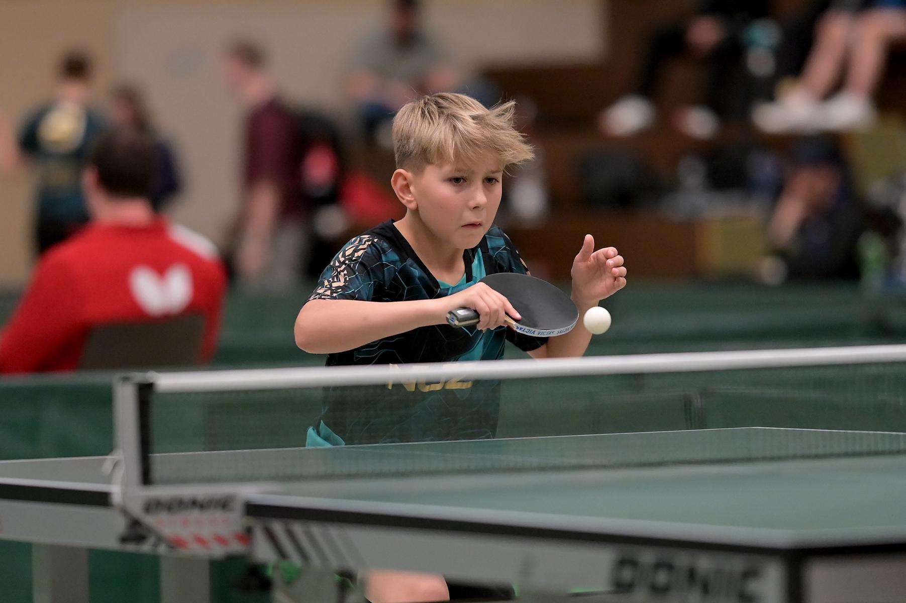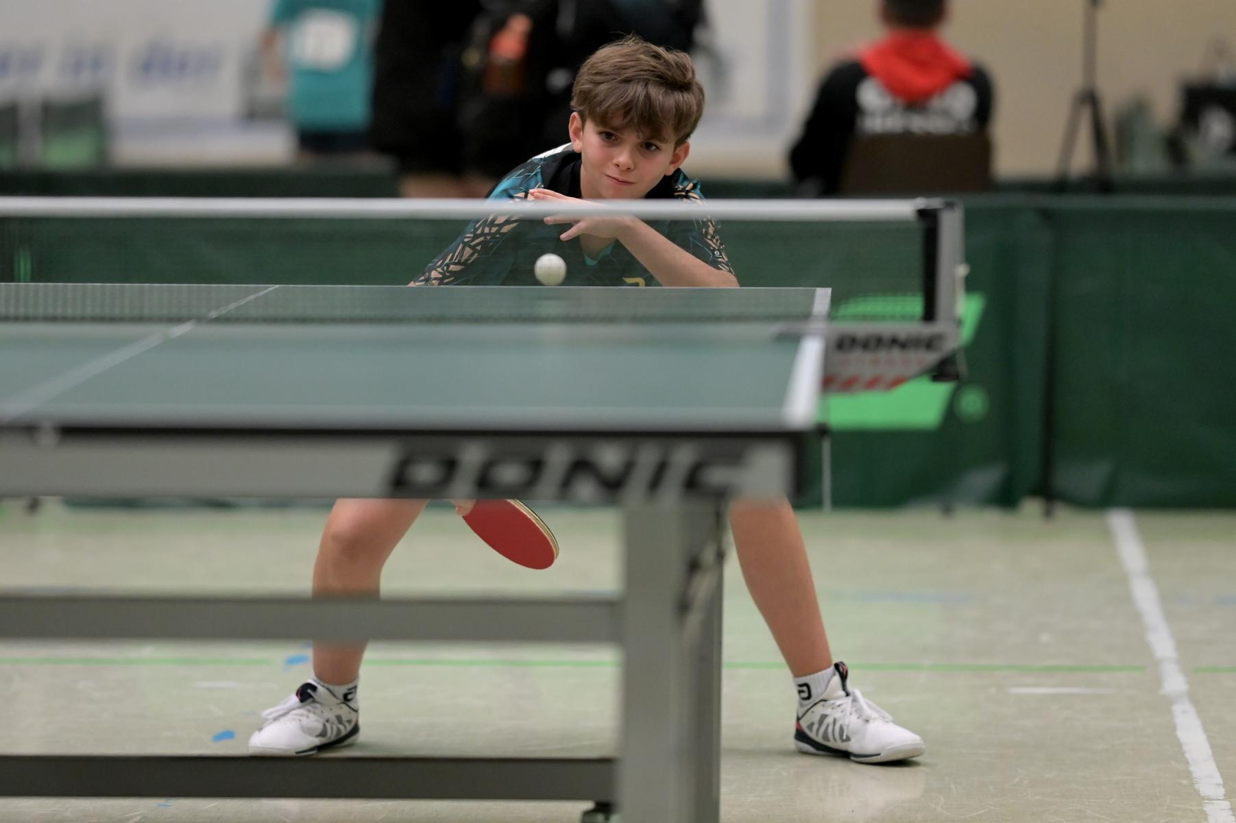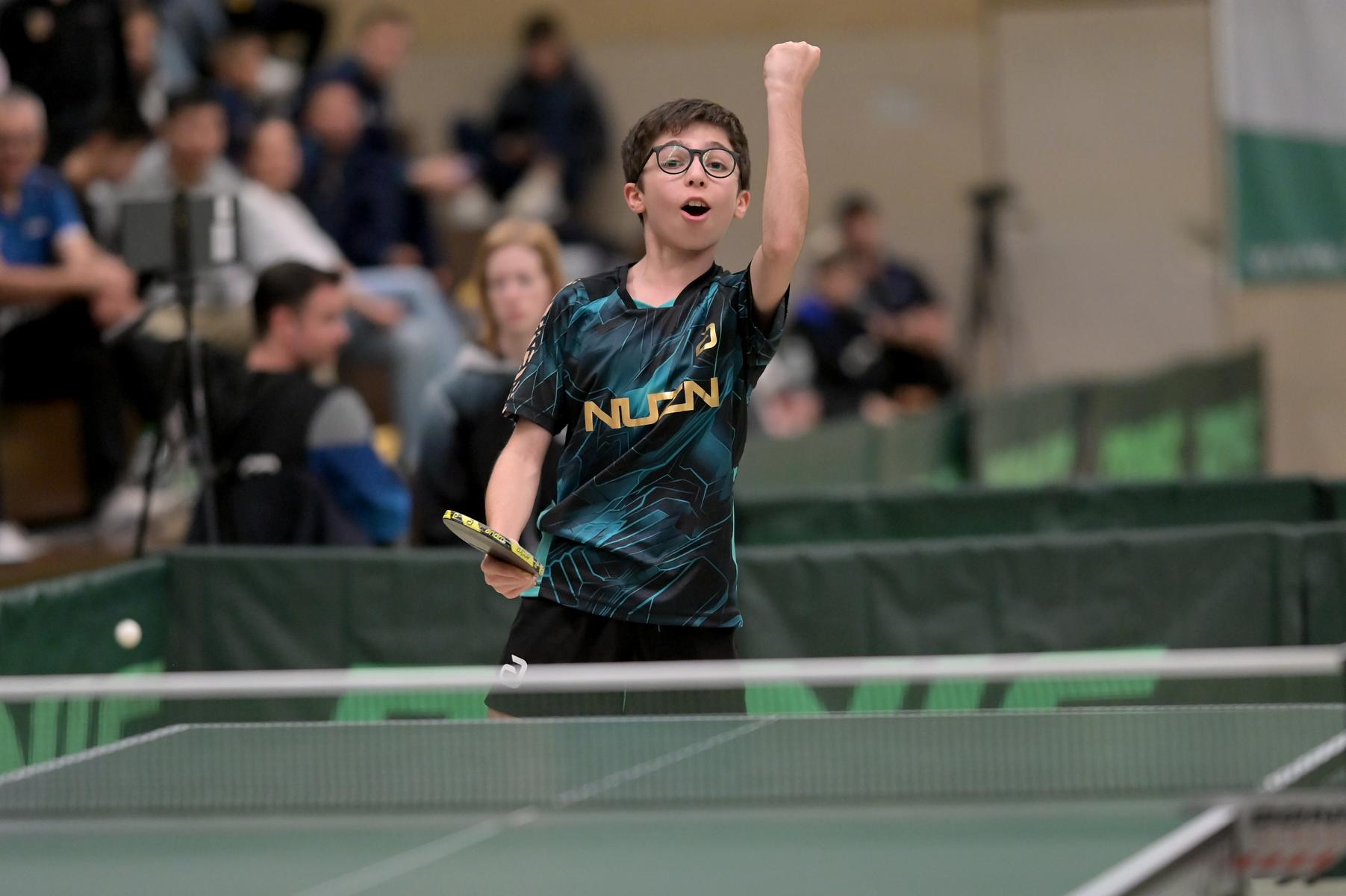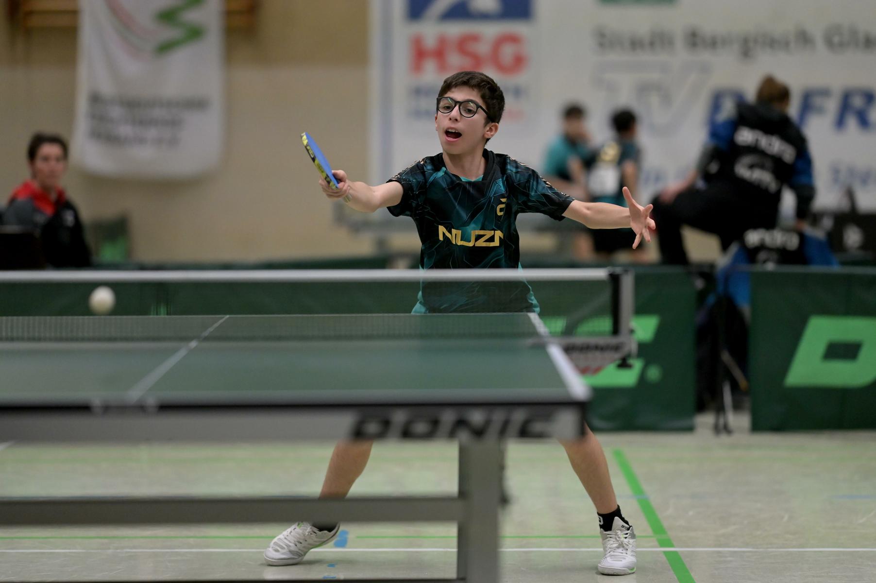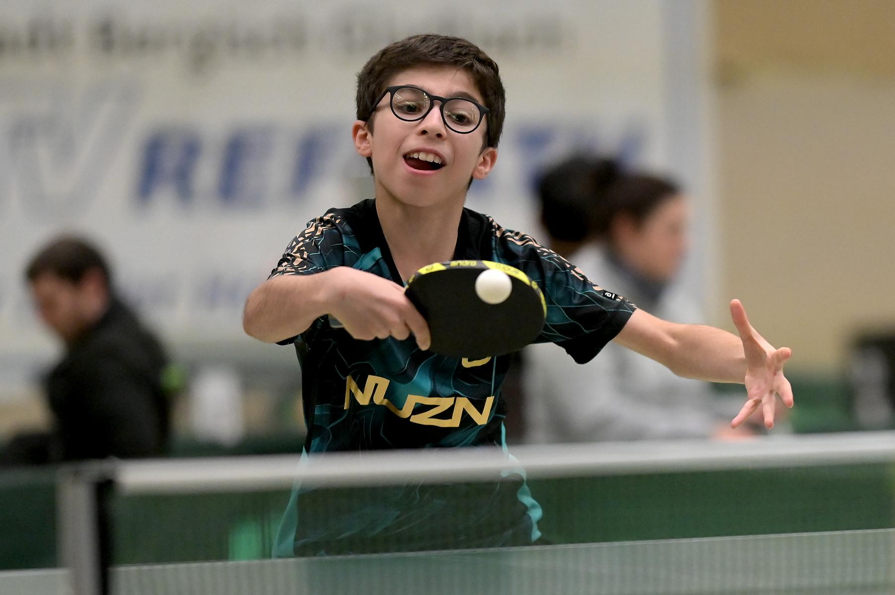 Adam Dahhan spielte eine hervorragende Vorrunde. Er konnte in seiner 8er Gruppe eine 6:1-Bilanz erspielen und sich Gruppenplatz zwei sichern. Die einzige Niederlage war gegen Kiril Manalaki aus Niedersachsen. Während die anderen drei Jungen nur noch den fünften Platz erreichen konnten, hatte Adam noch Chancen auf den Sieg der Veranstaltung. Gegen den Sachsen Koki Püschel im Viertelfinale behielt Adam auch in den knappen Situationen die Nerven und holte sich einen 3:2-Sieg und den Einzug in das Halbfinale. Im Halbfinale wartete mit Paul Flemming der nächste Sachse. Nach einem sehr umkämpften ersten Satz (12:10) kam Adam immer besser mit der Spielweise seines Gegners zurecht und holte sich auch Durchgang zwei und drei. Im Finale ging es dann erneut gegen Kiril Manalaki. Am Vortag hatte Adam noch 2:3 gegen ihn verloren und auch einen Matchball leider nicht verwandeln können. Das wollte er jetzt besser machen und sich revanchieren. Dies gelang Adam auch und er holte sich einen souveränen 3:0-Sieg und den Sieg der Veranstaltung.