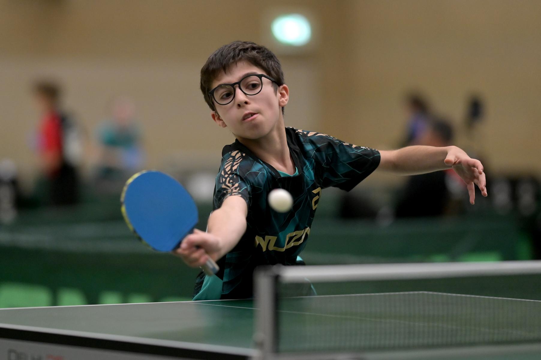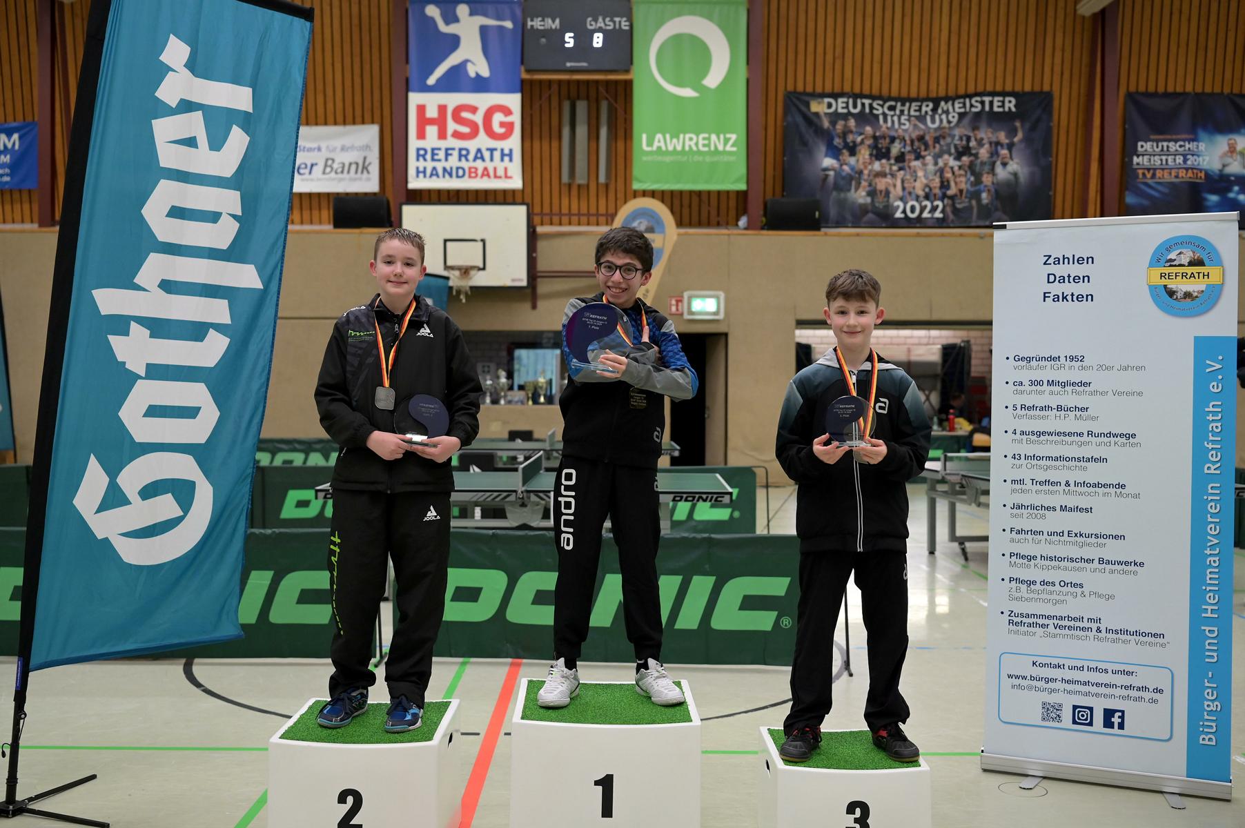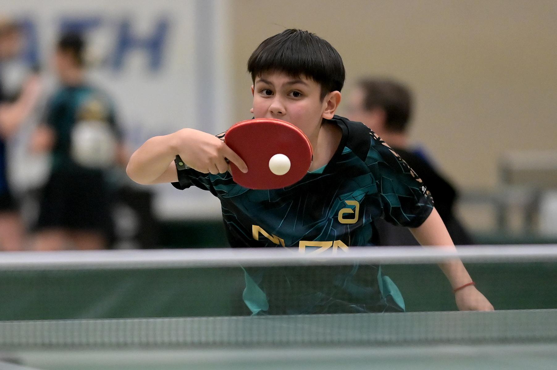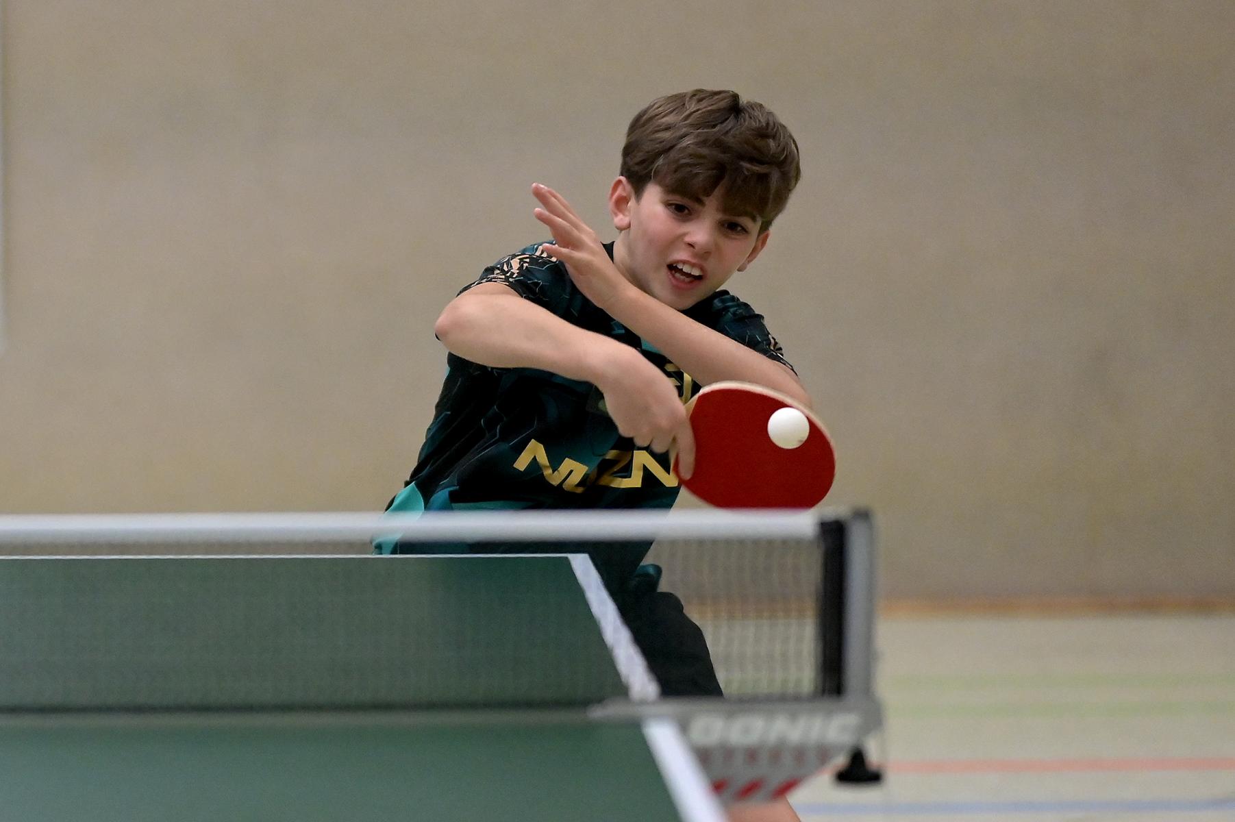 Adam Dahhan spielte eine hervorragende Vorrunde. Er konnte in seiner 8er Gruppe eine 6:1-Bilanz erspielen und sich Gruppenplatz zwei sichern. Die einzige Niederlage war gegen Kiril Manalaki aus Niedersachsen. Während die anderen drei Jungen nur noch den fünften Platz erreichen konnten, hatte Adam noch Chancen auf den Sieg der Veranstaltung. Gegen den Sachsen Koki Püschel im Viertelfinale behielt Adam auch in den knappen Situationen die Nerven und holte sich einen 3:2-Sieg und den Einzug in das Halbfinale. Im Halbfinale wartete mit Paul Flemming der nächste Sachse. Nach einem sehr umkämpften ersten Satz (12:10) kam Adam immer besser mit der Spielweise seines Gegners zurecht und holte sich auch Durchgang zwei und drei. Im Finale ging es dann erneut gegen Kiril Manalaki. Am Vortag hatte Adam noch 2:3 gegen ihn verloren und auch einen Matchball leider nicht verwandeln können. Das wollte er jetzt besser machen und sich revanchieren. Dies gelang Adam auch und er holte sich einen souveränen 3:0-Sieg und den Sieg der Veranstaltung.