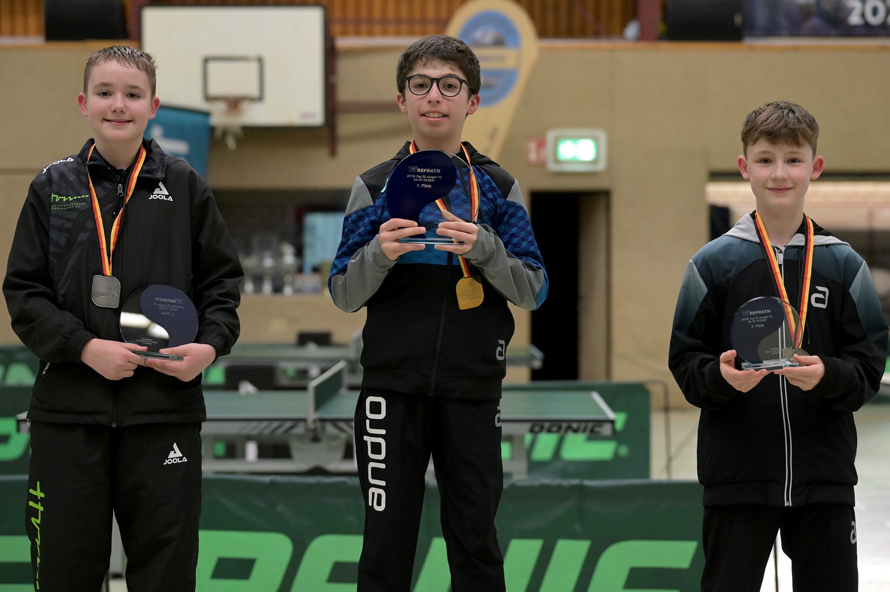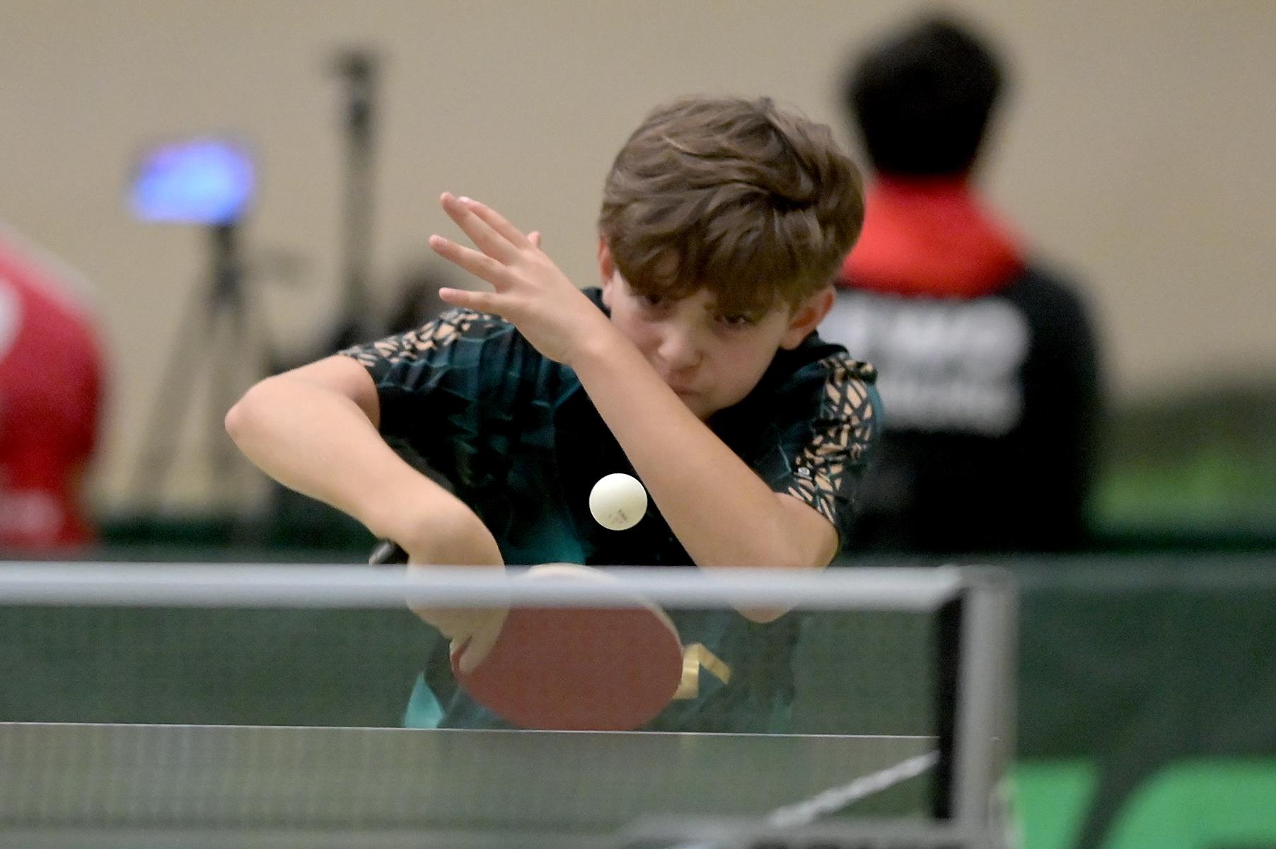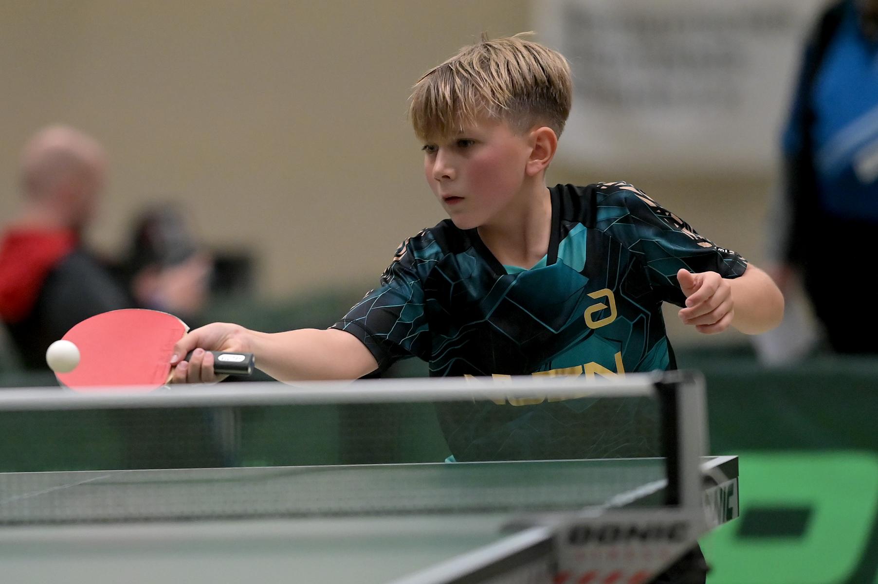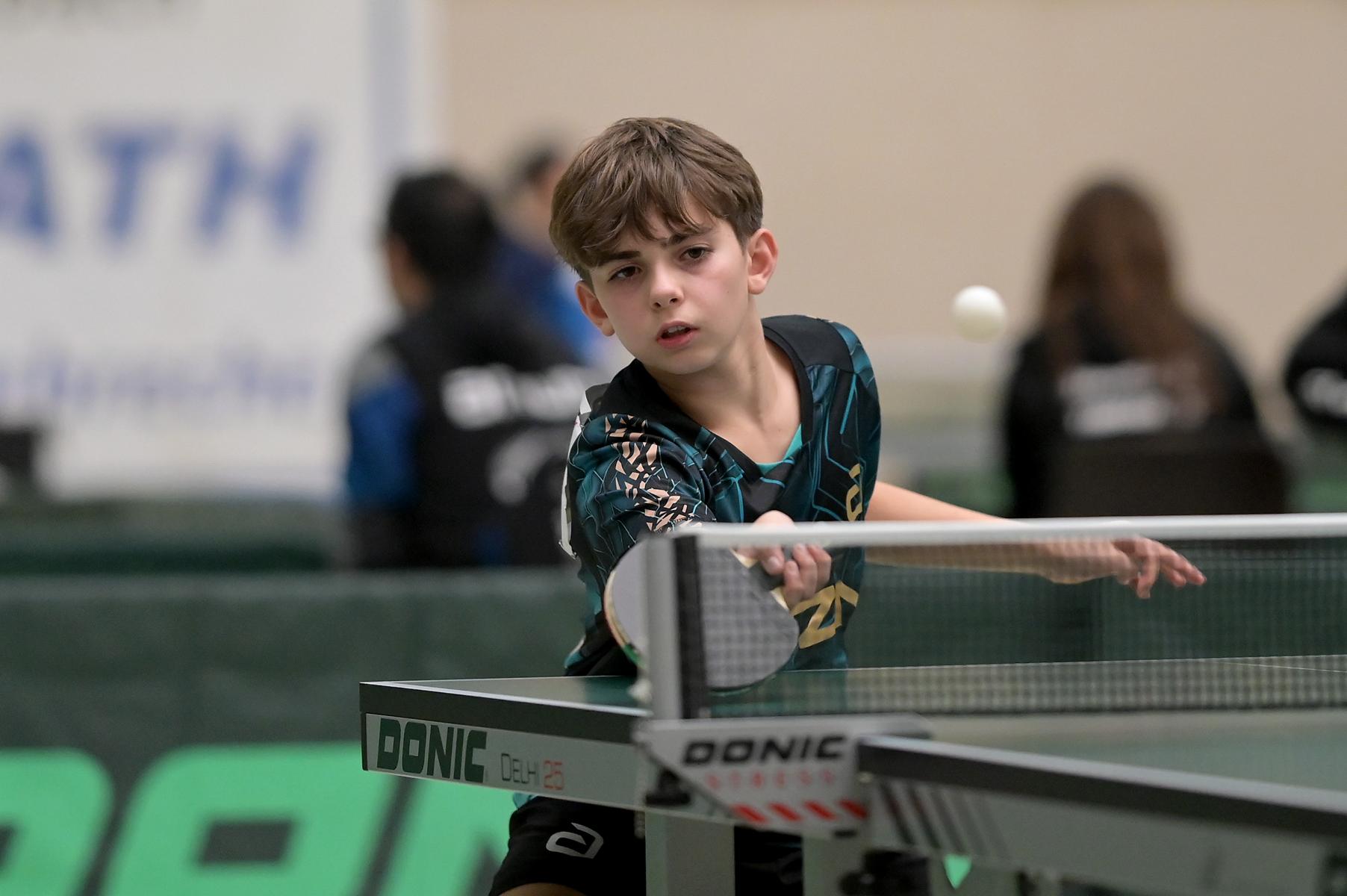 Adam Dahhan spielte eine hervorragende Vorrunde. Er konnte in seiner 8er Gruppe eine 6:1-Bilanz erspielen und sich Gruppenplatz zwei sichern. Die einzige Niederlage war gegen Kiril Manalaki aus Niedersachsen. Während die anderen drei Jungen nur noch den fünften Platz erreichen konnten, hatte Adam noch Chancen auf den Sieg der Veranstaltung. Gegen den Sachsen Koki Püschel im Viertelfinale behielt Adam auch in den knappen Situationen die Nerven und holte sich einen 3:2-Sieg und den Einzug in das Halbfinale. Im Halbfinale wartete mit Paul Flemming der nächste Sachse. Nach einem sehr umkämpften ersten Satz (12:10) kam Adam immer besser mit der Spielweise seines Gegners zurecht und holte sich auch Durchgang zwei und drei. Im Finale ging es dann erneut gegen Kiril Manalaki. Am Vortag hatte Adam noch 2:3 gegen ihn verloren und auch einen Matchball leider nicht verwandeln können. Das wollte er jetzt besser machen und sich revanchieren. Dies gelang Adam auch und er holte sich einen souveränen 3:0-Sieg und den Sieg der Veranstaltung.