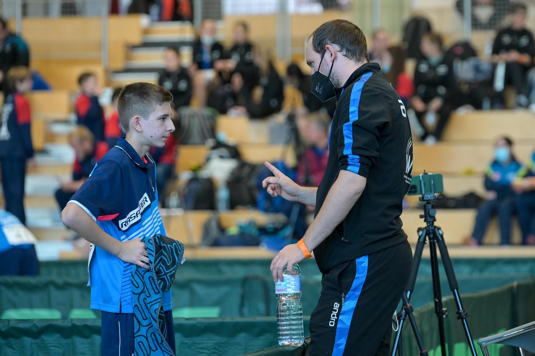 Friedrich und Chris zeigten in der Gruppenphase eine souveräne Leistung und somit waren die beiden die einzigen Spieler, die bis zum Halbfinale, sowohl in den Gruppenspielen, als auch in der Zwischenrunde eine weiße Weste behielten. In der Vorschlussrunde traf Chris dann auf Mahmoud El Haj Ibrahim und zeigte auch hier von Beginn an, in welch guter Form er sich das gesamte Wochenende präsentierte und ließ dem Baden Württemberger mit 11:7, 11:5 und 11:5 keine Chance. Etwas mehr Mühe hatte hier Friedrich gegen den Bayern Matej Haspel, der Friedrich an den Rande einer Niederlage brachte, denn die Durchgänge ein und zwei gingen mit 11:6 und 21:19 an Haspel. Nach gewonnenem dritten Satz musste Friedrich im vierten Durchgang dann wieder in die Verlängerung. Mit spektakulären Ballwechseln sicherte er sich diesen mit 12:10 und am Ende konnte er das Spiel durch ein 11:7 im fünften Satz sicher nach Hause bringen.