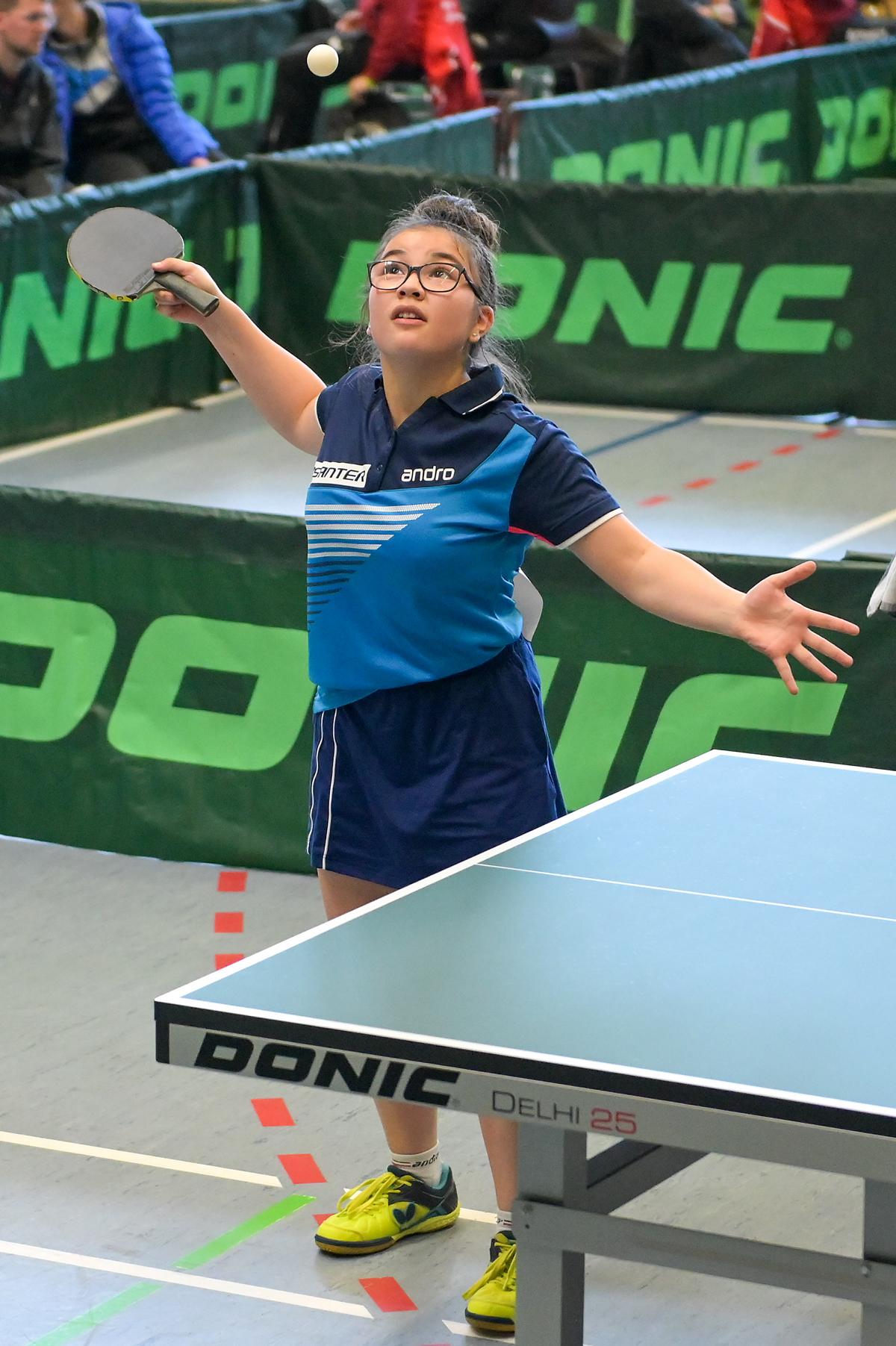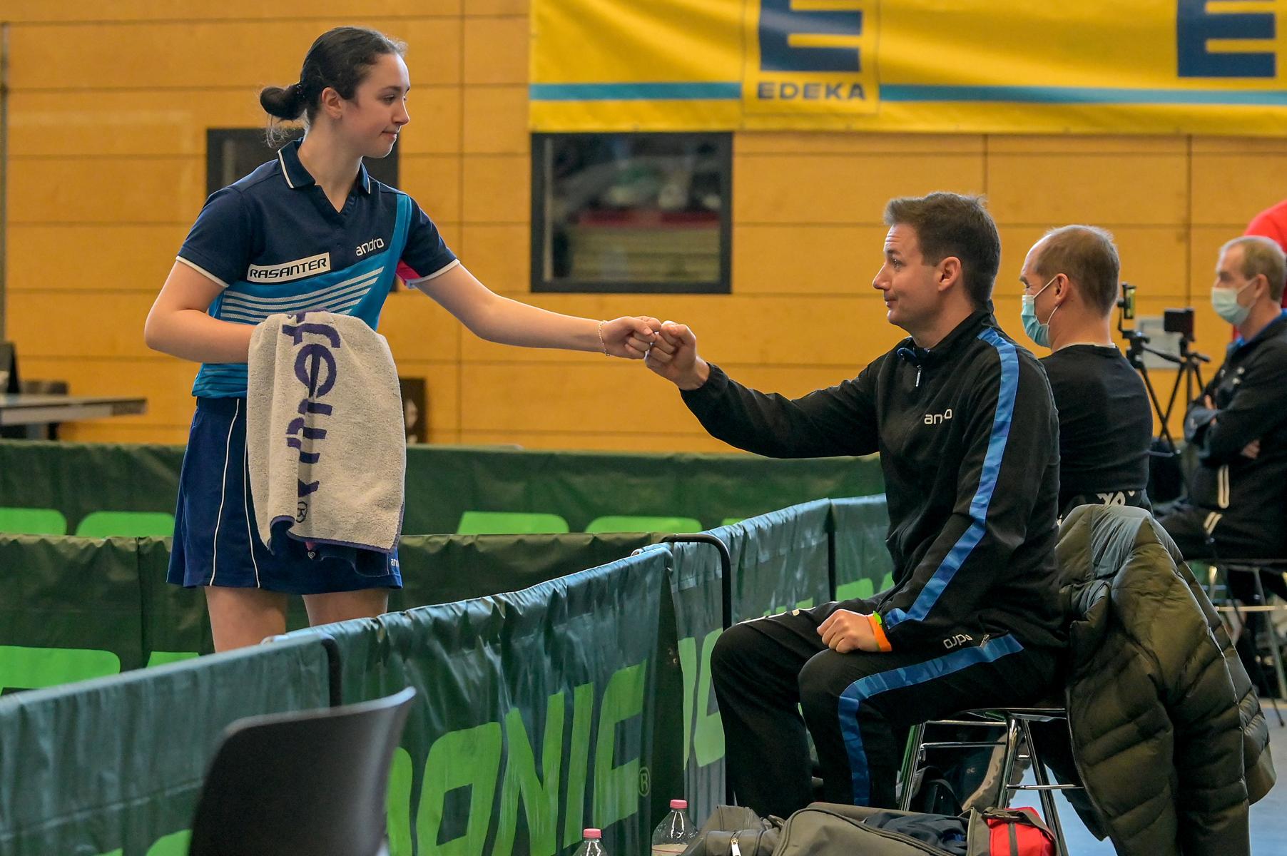 Bei den Mädchen siegte Eireen Kalaitzidou in der Vorrunde trotz einer 2:3-Niederlage gegen die Abwehrspielerin Lucia Behringer (TTBW) und war damit bereits fürs Top 24 qualifiziert. Durch eine weitere Niederlage gegen die Niedersächsin Maja Kloke verpasste sie dann allerdings den erhofften Einzug ins Halbfinale.