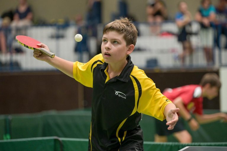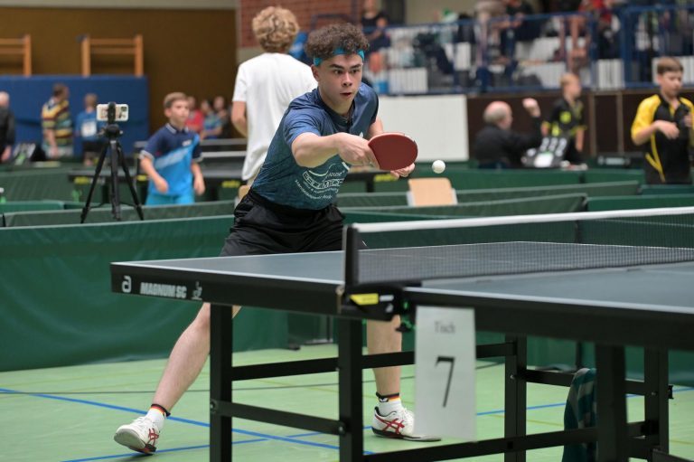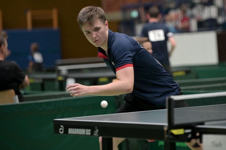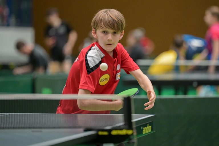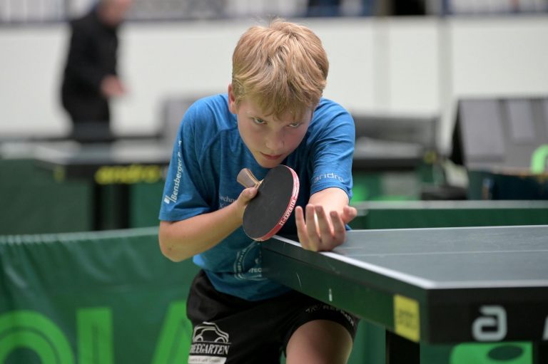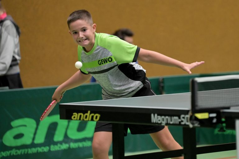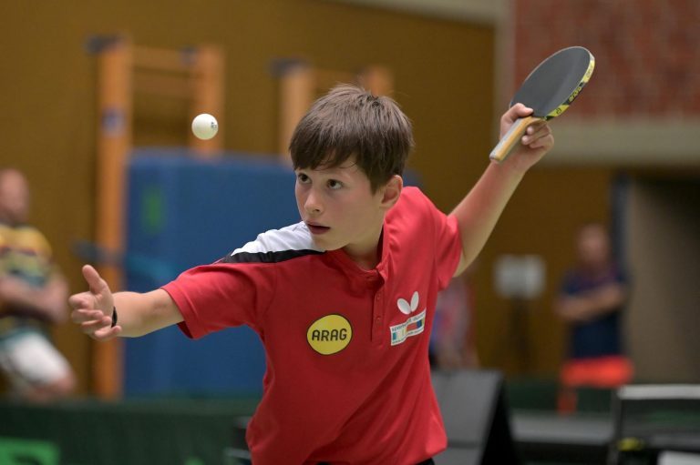 Bei den Jungen13 hatte wohl niemand so richtig Tom Henseler auf dem Schirm. Schon in der ersten Runde rang Tom den Mitfavoriten Dorian Lheriau mit 3:2 nieder. Dieser Sieg gab dem Linkshänder Tom viel Sicherheit und Selbstvertrauen, so dass er sich mit gutem Aufschlagspiel und unangenehmen Linkshändertopspins immer mehr ins Turnier reinspielte. Am Ende verlor er kein einziges Match und war der verdiente Sieger, der damit auch das Ticket zum Top48 der Jugend15 löste.