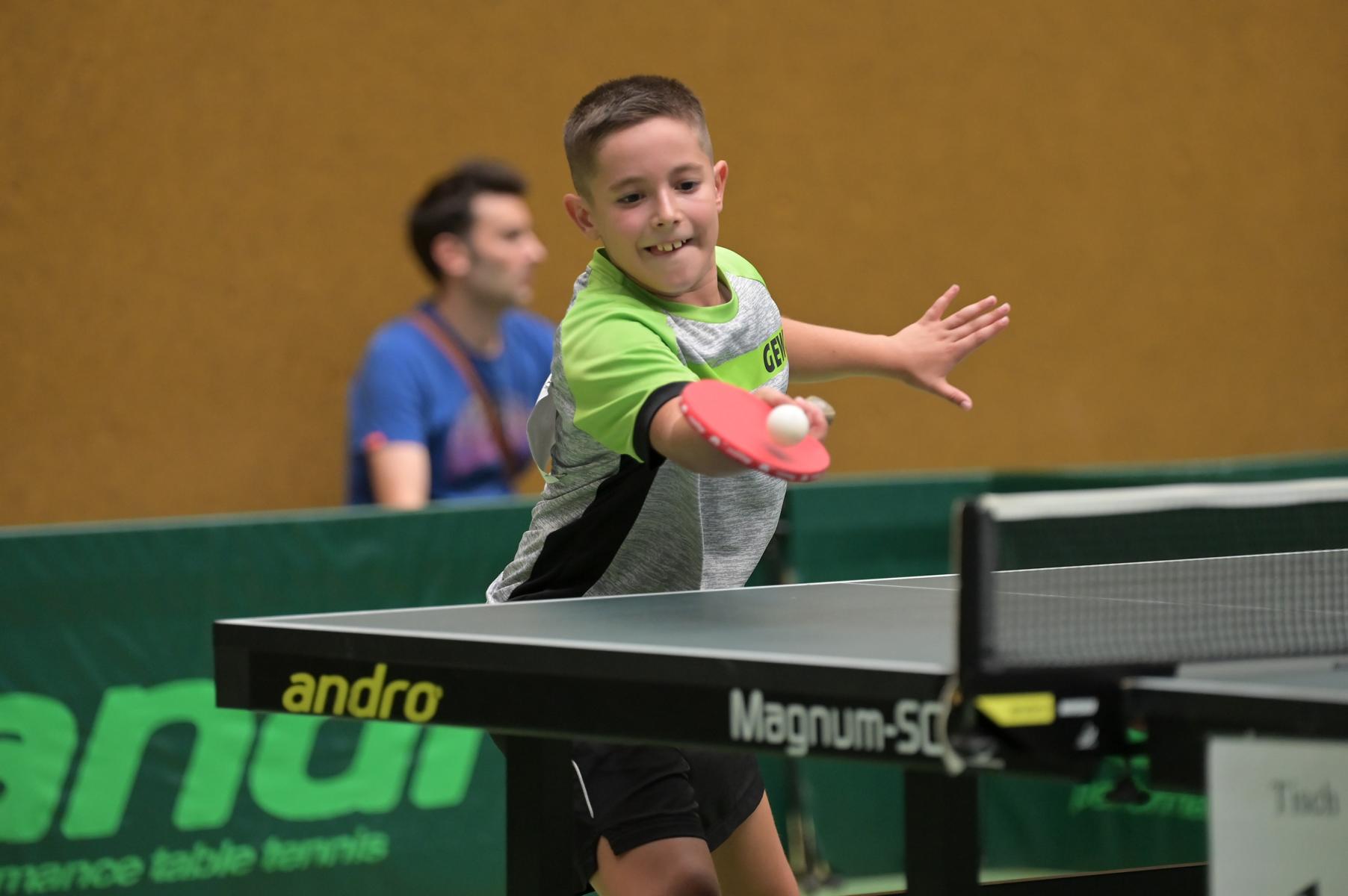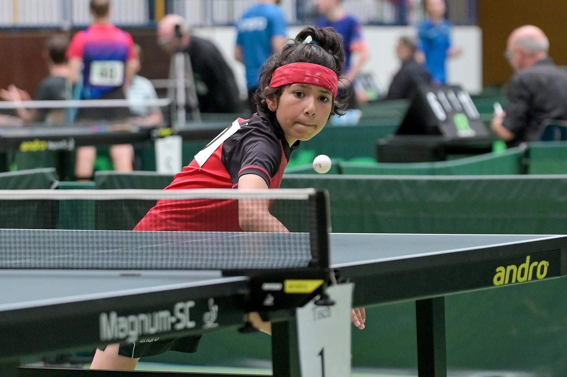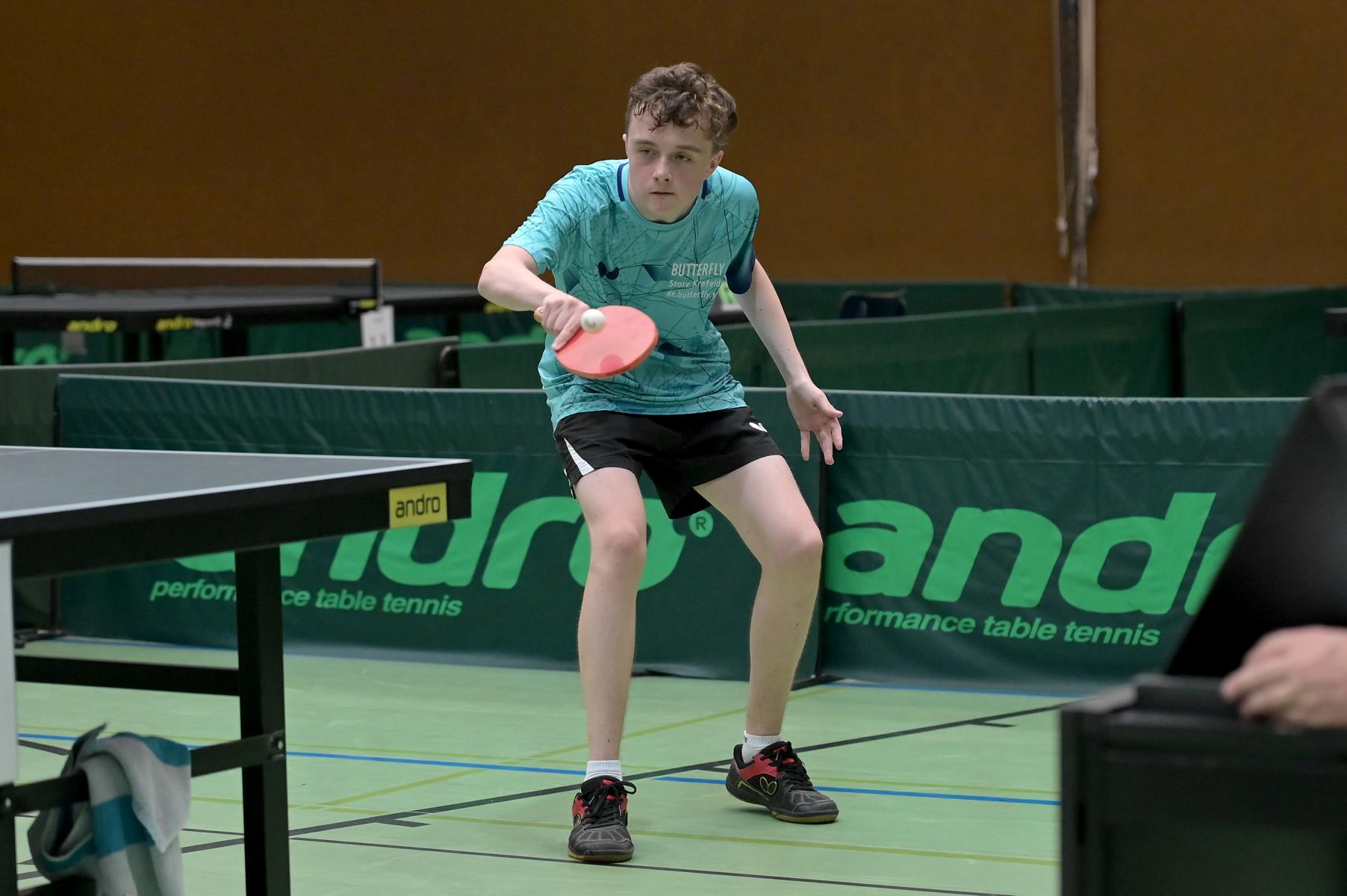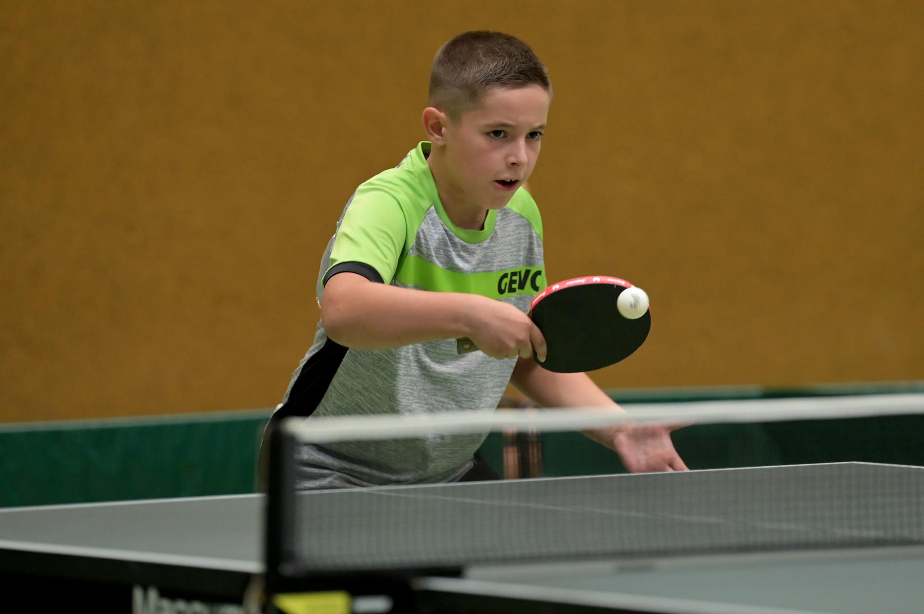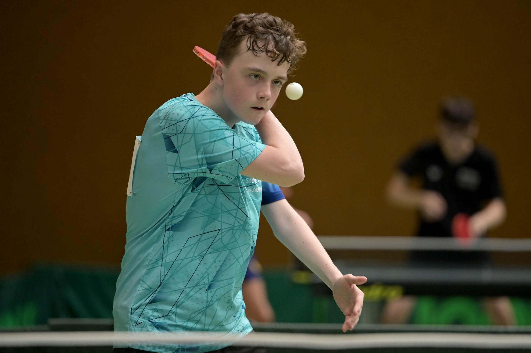 Bei den Jungen13 hatte wohl niemand so richtig Tom Henseler auf dem Schirm. Schon in der ersten Runde rang Tom den Mitfavoriten Dorian Lheriau mit 3:2 nieder. Dieser Sieg gab dem Linkshänder Tom viel Sicherheit und Selbstvertrauen, so dass er sich mit gutem Aufschlagspiel und unangenehmen Linkshändertopspins immer mehr ins Turnier reinspielte. Am Ende verlor er kein einziges Match und war der verdiente Sieger, der damit auch das Ticket zum Top48 der Jugend15 löste.
