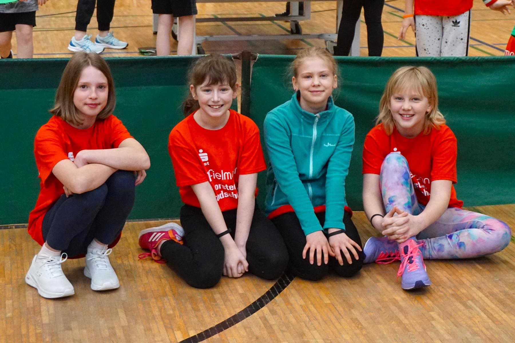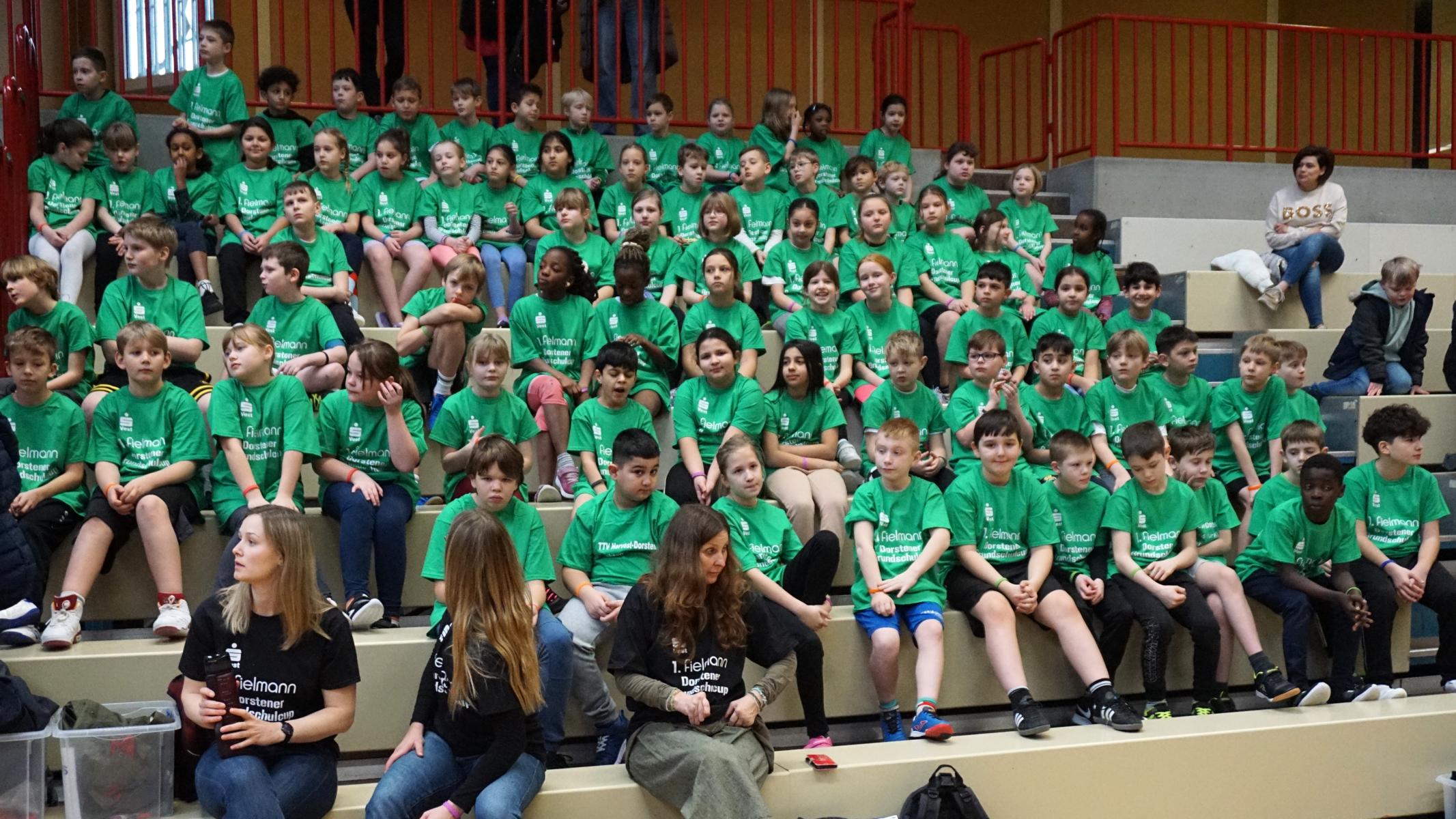 In der Halle angekommen, erhielten die Kinder T-Shirts in den Farben ihrer Schulen – gelb, grau, rot und grün – sowie ein Team-Armband. Die Aufregung war spürbar, als sie gespannt darauf warteten, dass es endlich losging. Nachdem alle Schulen eingetroffen waren, begrüßte der Vereinsvorsitzende Andre Funcke sowie der Vorsitzende des Bezirks Münster/Hohe, Mark Frank Determann, die Kinder herzlich.