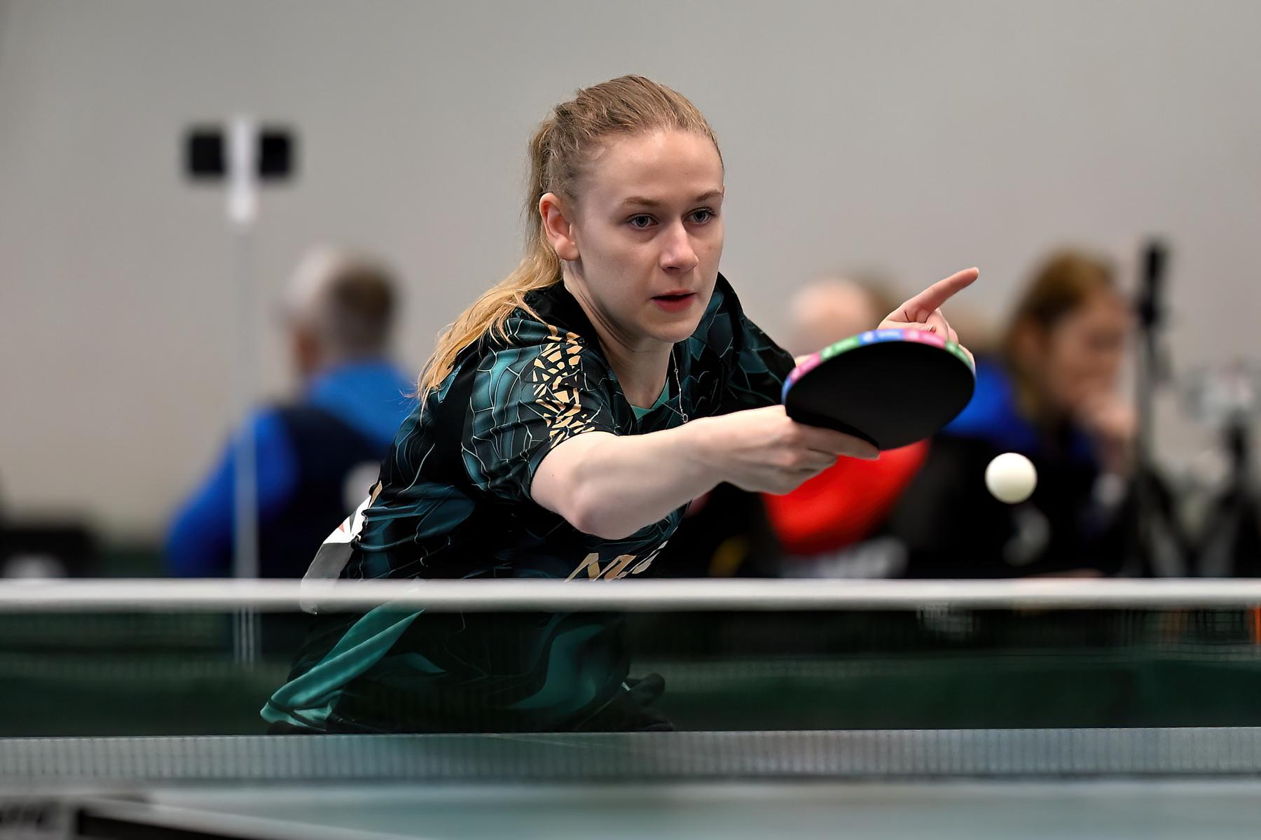Vivien Hegelich startete in Dissen zum ersten Mal bei einem nationalen Turnier für den WTTV – und machte ihre Sache sehr gut. Gleich im ersten Spiel setzte sie ein Ausrufezeichen und besiegte Magdalene Hübgen (STTB) mit 3:0. Nach einem weiteren Erfolg gegen Leonie Gaida (SATTV) belegte sie in ihrer Gruppe Rang vier und zog damit in die Platzierungsrunde um die Plätze 17 bis 32 ein. Dort verlor sie zwar ihre beiden folgenden Spiele, belegte aber insgesamt Rang 29–32 – ein gelungenes Debüt auf Bundesebene.