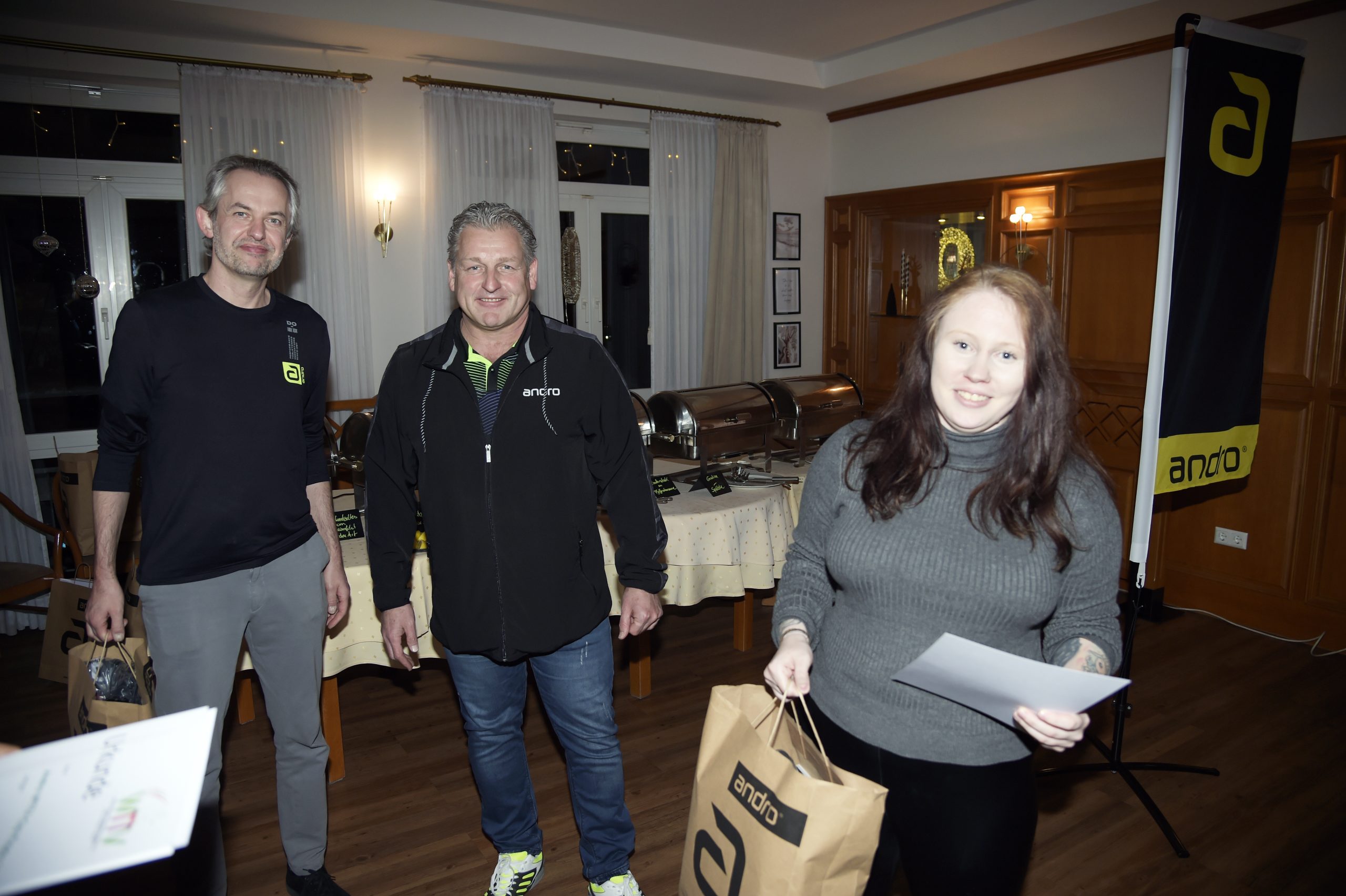 Im Hotel-Restaurant Am Park traf man sich zur abschließenden Ehrung von Sieger und Platzierten. Hier gratulierten David Daus und Rainer Schmidt vom Titelsponsor andro den Teilnehmenden für ihre engagierten Leistungen: