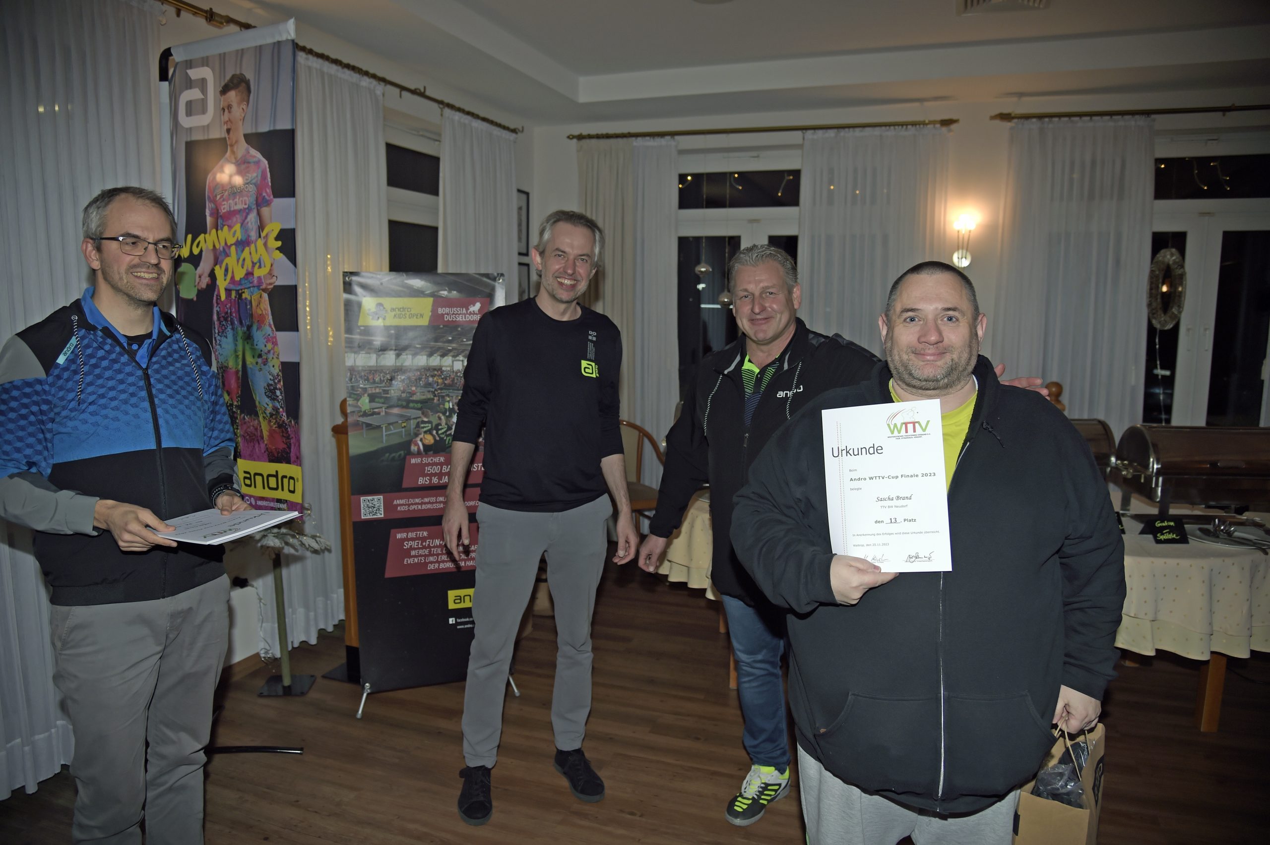 Der TTV Waltrop war traditionell Gastgeber der 6.Auflage des andro WTTV-Cups 2023. In der Sporthalle des Theodor-Heuss-Gymnasiums konnten sich Aktive und Zuschauer über ein bis in die Haarspitzen motiviertes Teilnehmerfeld freuen, das leidenschaftlich um Sieg und Platzierungen kämpfte. Die Turnierleitung liegt in den Händen von Herrn Reinhardt HANTKE und Martin Häusler. (Duisburg).