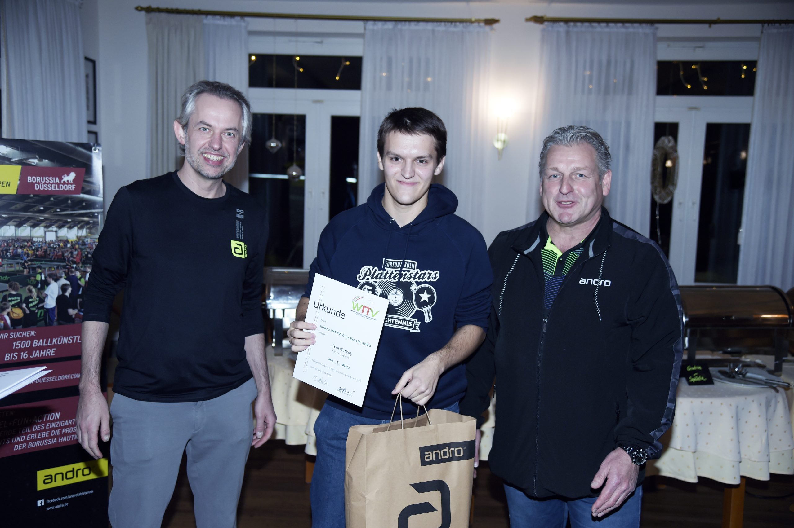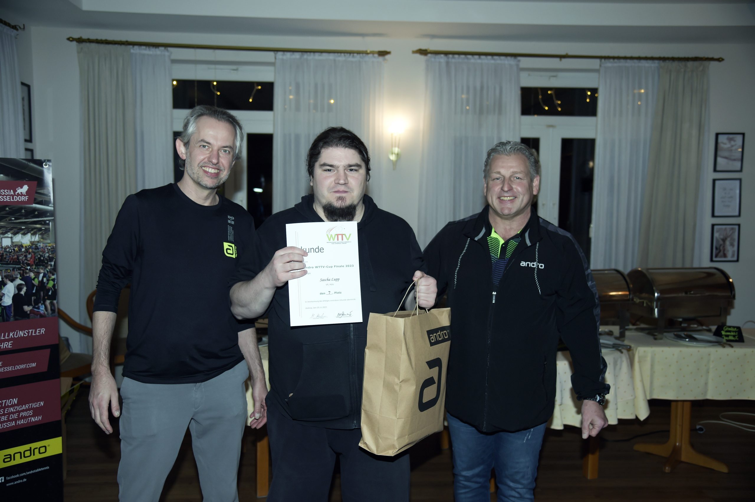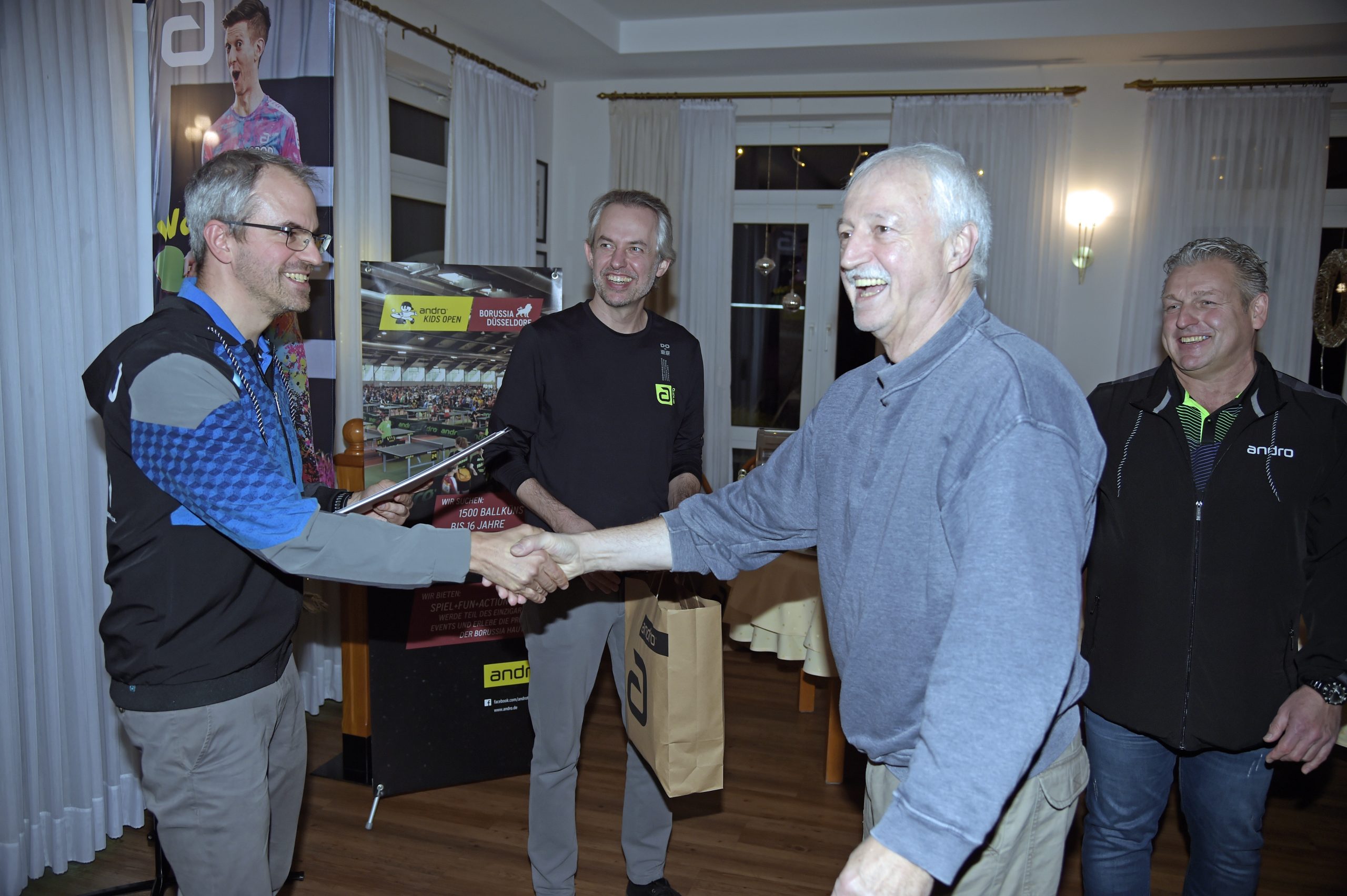 Andro hatte für Jens Korte und den TTV Waltrop noch einige Präsente parat, über die man sich natürich sehr freute: