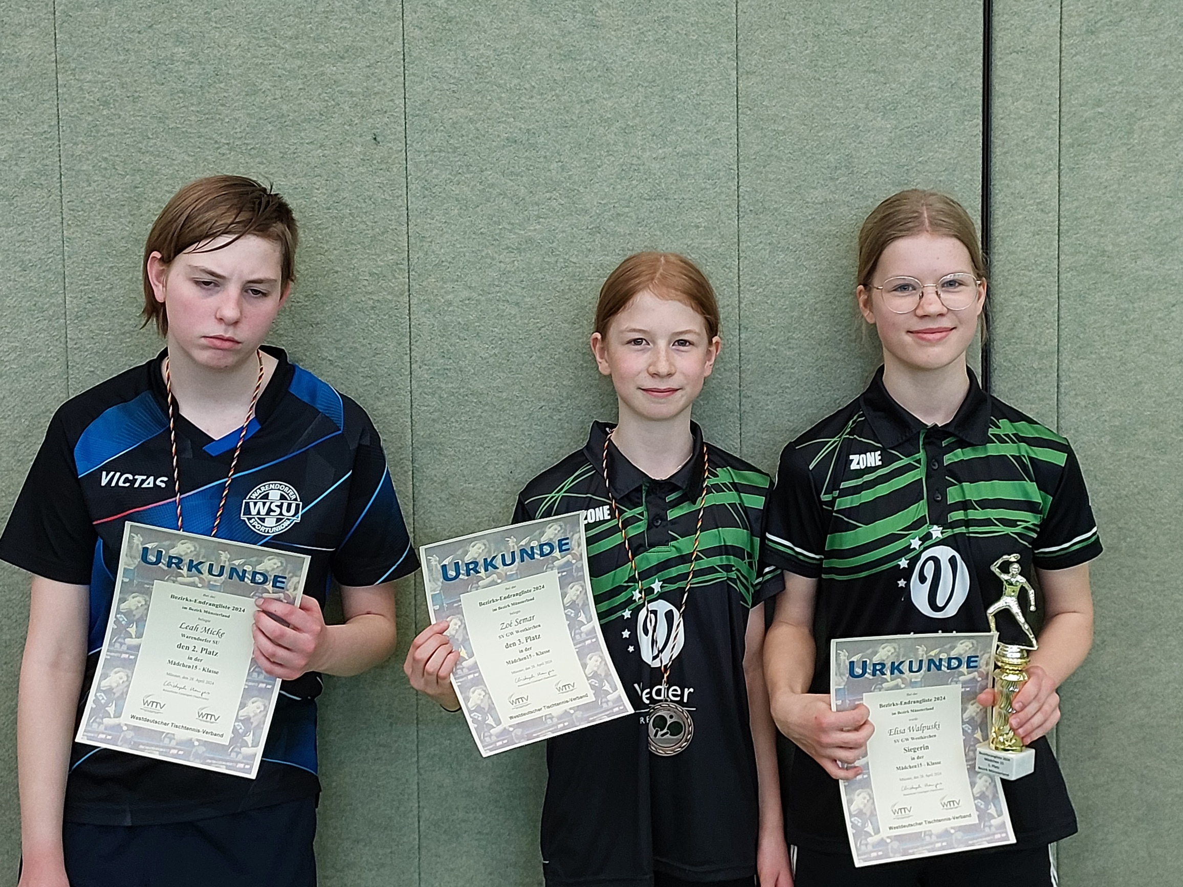 Für den TuS Hiltrup fuhren Simon Hüwe (Jungen 13) und Marie Herb (Mädchen 11) zwei weitere Titel ein, für den TB Burgsteinfurt Diana Shevnin (Mädchen 19) und Johanna Lembeck (Mädchen 13). Die weiteren Titel gingen an Elisa Walpuski (GW Westkirchen/Mädchen 15) und Ostap Yeremeichuk (1. FC Gievenbeck/Jungen 11).