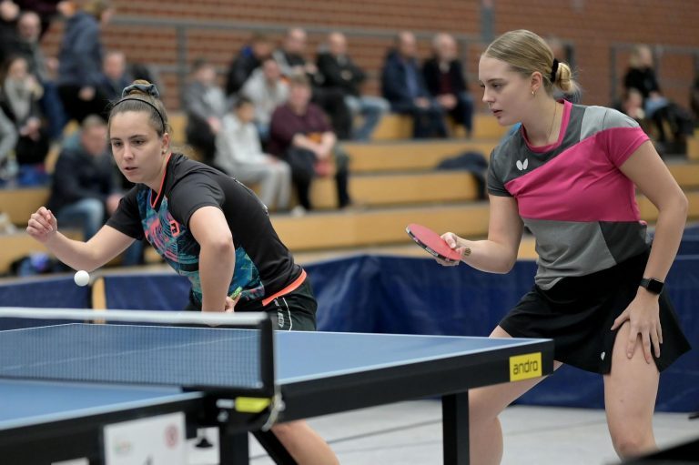 Den Doppel-Titel bei den Damen holten sich Anne Sewöster/Nadine Sillus (TSV Hahlen / TuS Uentrop) mit 3:1 gegen die Überraschungs-Finalistinnen Stefanie Hoffmann/Teresa Ströher (TTC GW Fritzdorf).
