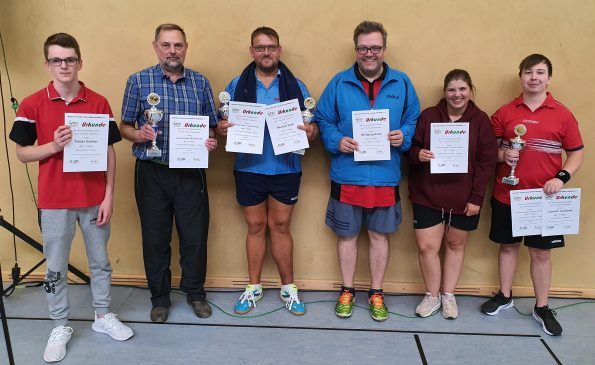 In der Herren-B-Klasse mit 20 Startern siegte Nils Kohrn von der SG Erftstadt vor Christopher Rausch vom TTV Lommersum. Der Doppel-Titel ging an Adis Begic und Thorsten Wesolowska (BC Bliesheim/TTV Lommersum).