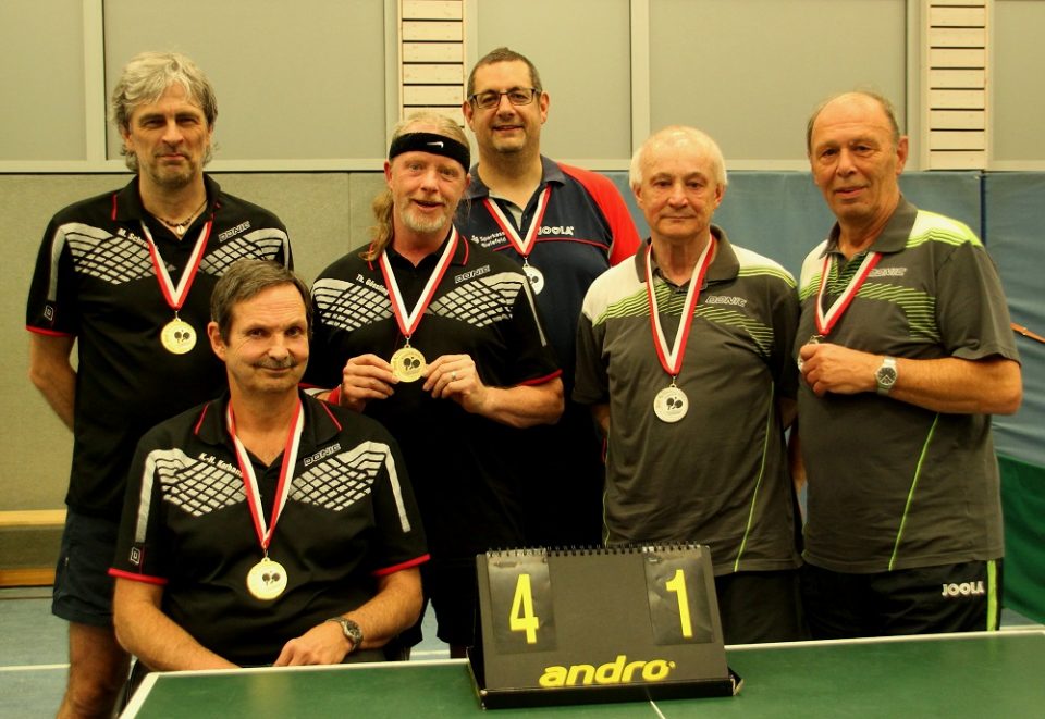 Im Finale holte Gerhard Hertrich (TTC Dornberg) mit dem 3:1 Sieg (13, 6, -9, 1) gegen Karl-Heinz Korbanek (TuS Eintracht Bielefed) den ersten Punkt für seine Mannschaft. Doch im nächsten Einzel sorgte Michael Schrutek (Eintracht ) bereits für den Ausgleich zum 1:1. In einem hart umkämpften spannenden Spiel gegen Rene Thiem (TTC Dornberg) setzte er sich mit 3:2 (9, -8, 7, -10, 8) durch. Im dritten Einzel führte Thomas Gössling (Eintracht) mit 1:0 (11:8) – doch der Gegner Norbert Hansmeyer setzte nach und holte sich den nächsten Satz mit 11:9. Doch Gössling steckte nicht auf und holte sich die Sätze 3 (7) und 4 (9) zum 3:1 Sieg. Zwischenstand: 2:1 für Eintracht. Im anschließenden Doppel führten Michael Schrutek/Thomas Gössling gegen Gerhard Hertrich/Rene Thiem bereits mit 2:0 (7, 9), da holte sich der Gegner Satz 3 mit 11:8 – aber TuS Eintracht mobilisierte nochmal alle Reserven und setze sich im 4. Satz mit 11:7 durch zum 3:1 Sieg. Jetzt führte der TuS Eintracht Bielefeld bereits mit 3:1! Im nächsten Einzel gab es wieder einen spannenden Schlagabtausch, den Michael Schrutek (Eintracht) am Ende mit 3:2 (9, -9, 5, -6, 8) für sich entscheiden konnte gegen Gerhard Hertrich (TTC Dornberg). Das war der Siegpunkt zum Pokalsieg von TuS Eintracht Bielefeld mit 4:1!