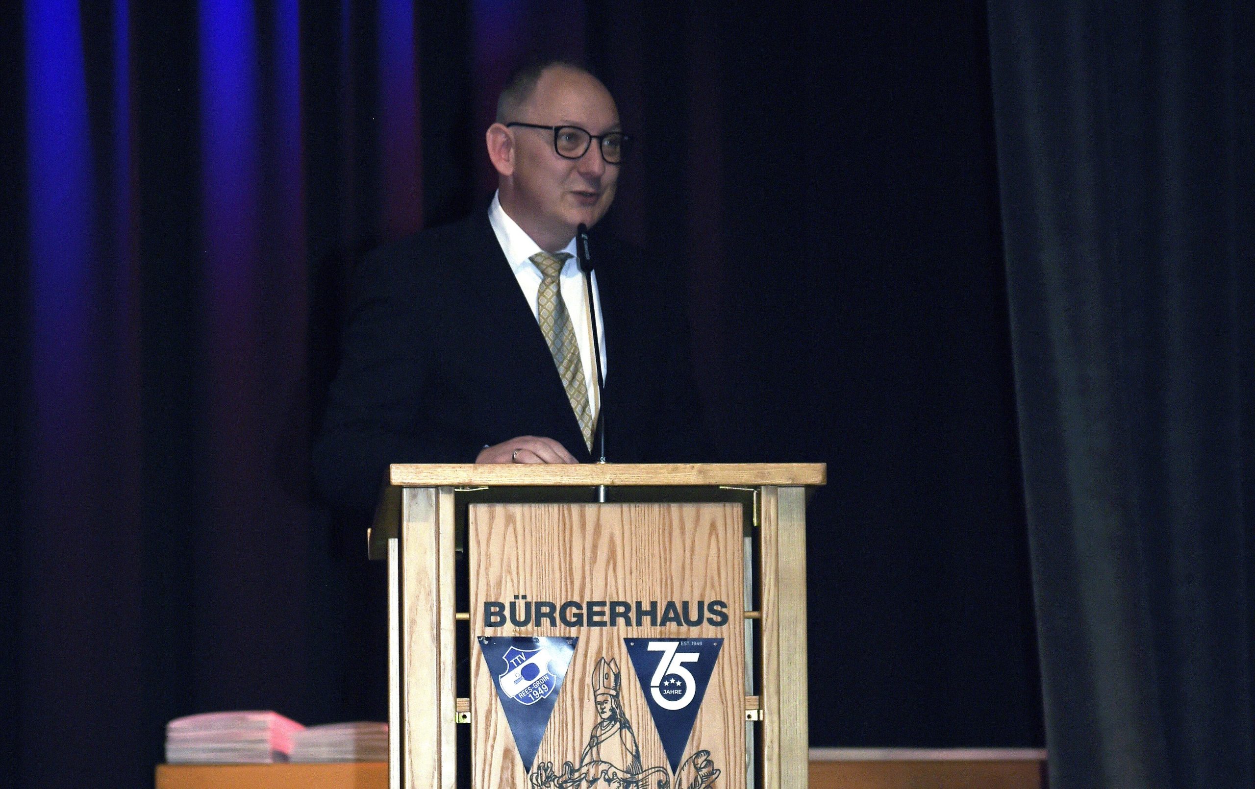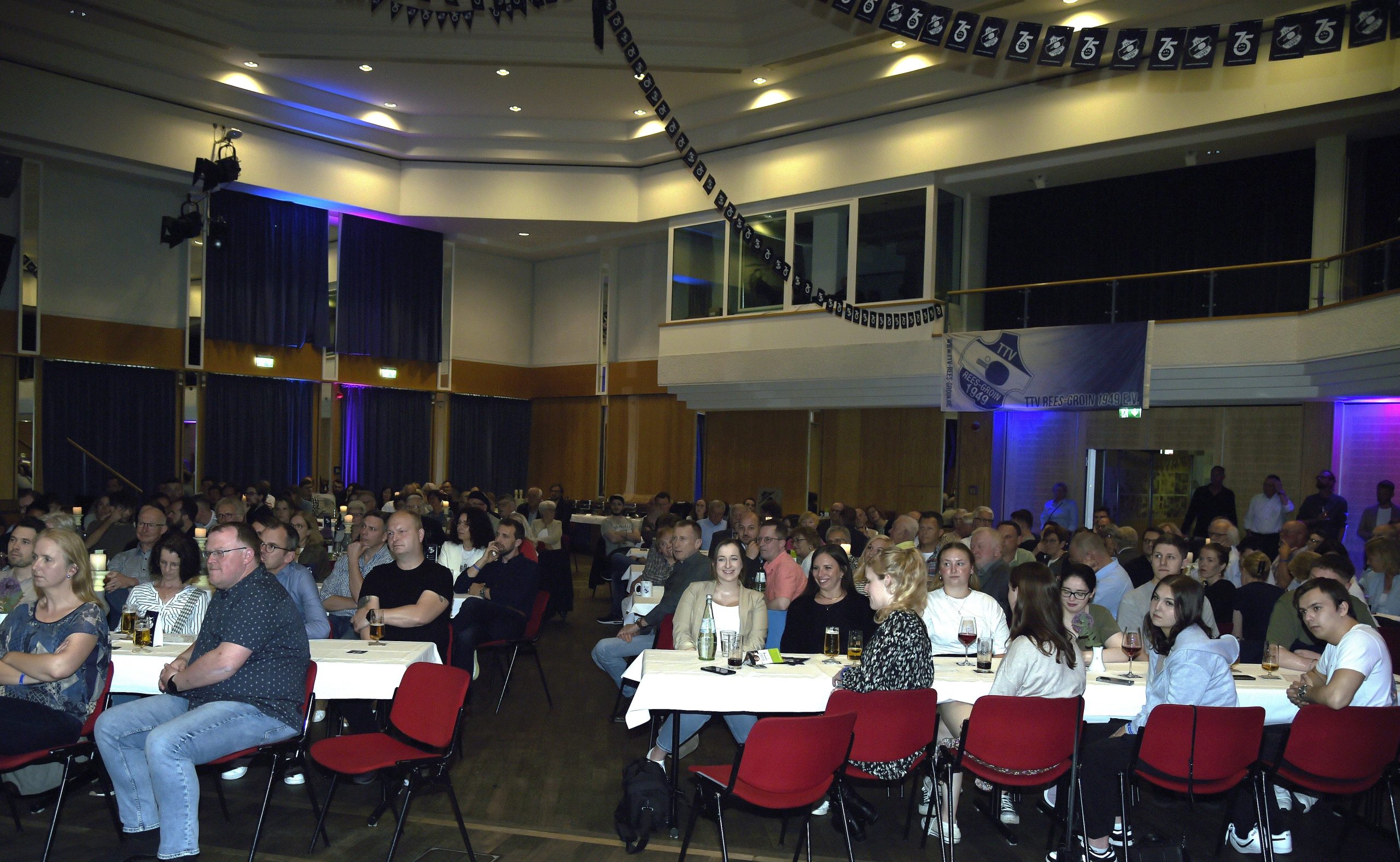 Nun feierten die Groiner ein eher seltenes Jubiläum, denn der TTV kann auf eine 75jährige Historie zurückblicken. Das Bürgerhaus Rees am Markt war mit über 200 Gästen bis auf den letzten Platz gefüllt, als Bürgermeister Sebastian Henze eine mit Lob und Anerkennung gespickte Hymne auf den erfolgreichen Tischtennisverein anstimmte.