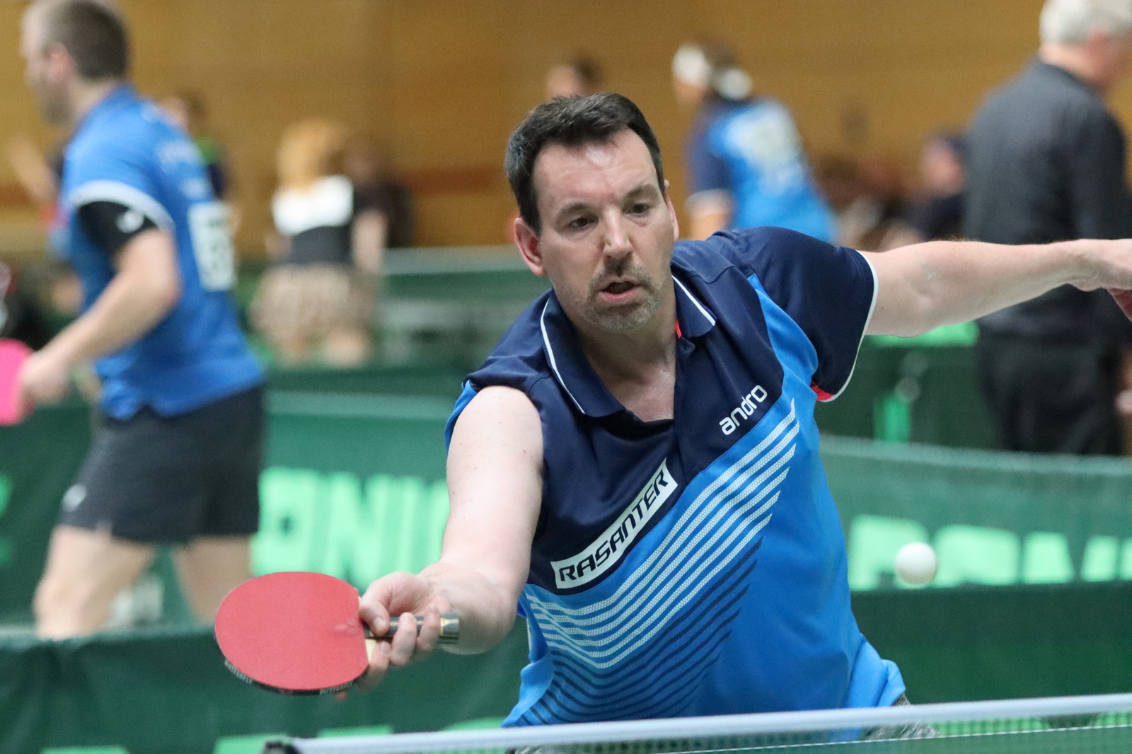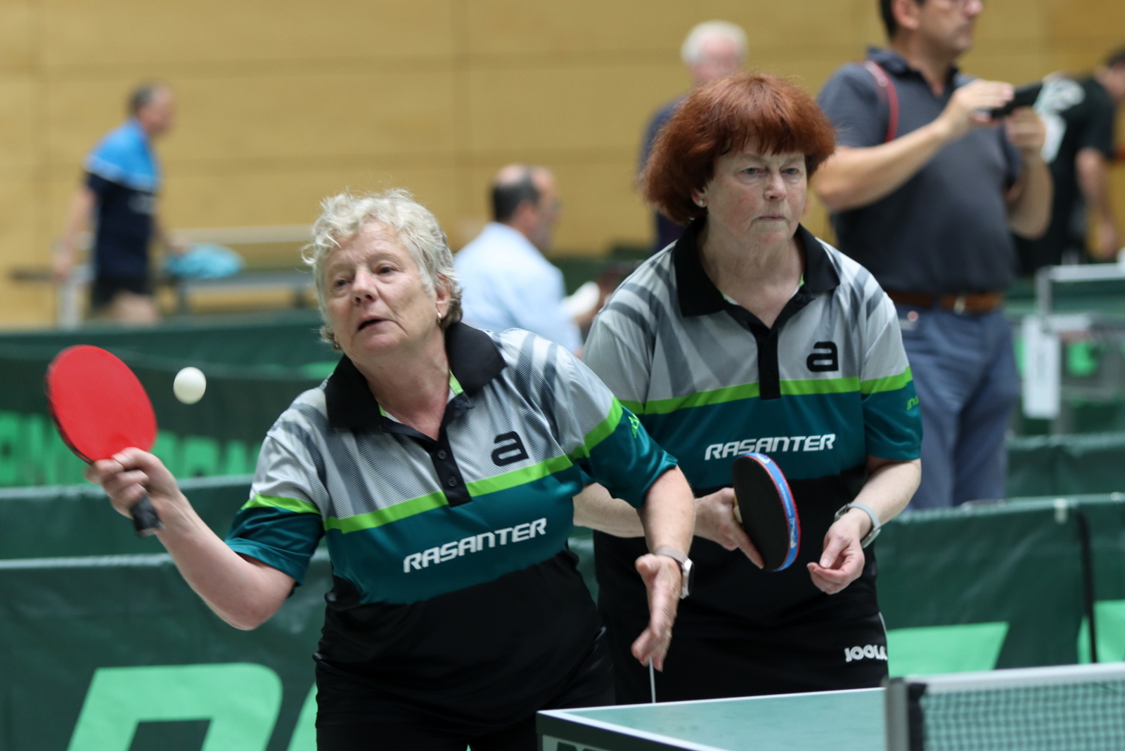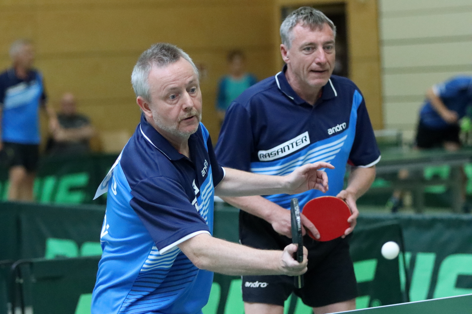 Für großartige Atmosphäre sorgten spektakuläre Auftritte von Wolfgang Gerth und Joachim Beumers (Sen-50) in Einzel und Doppel und dazu das Linkshänder-Doppel Maurice Mann/Guido Schmitz (Sen-45).