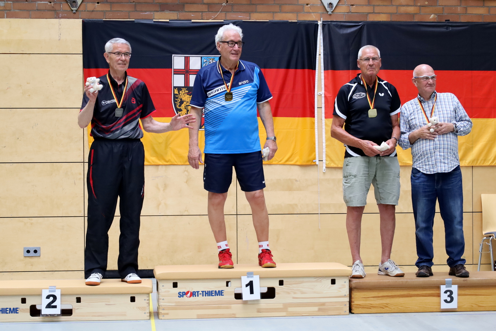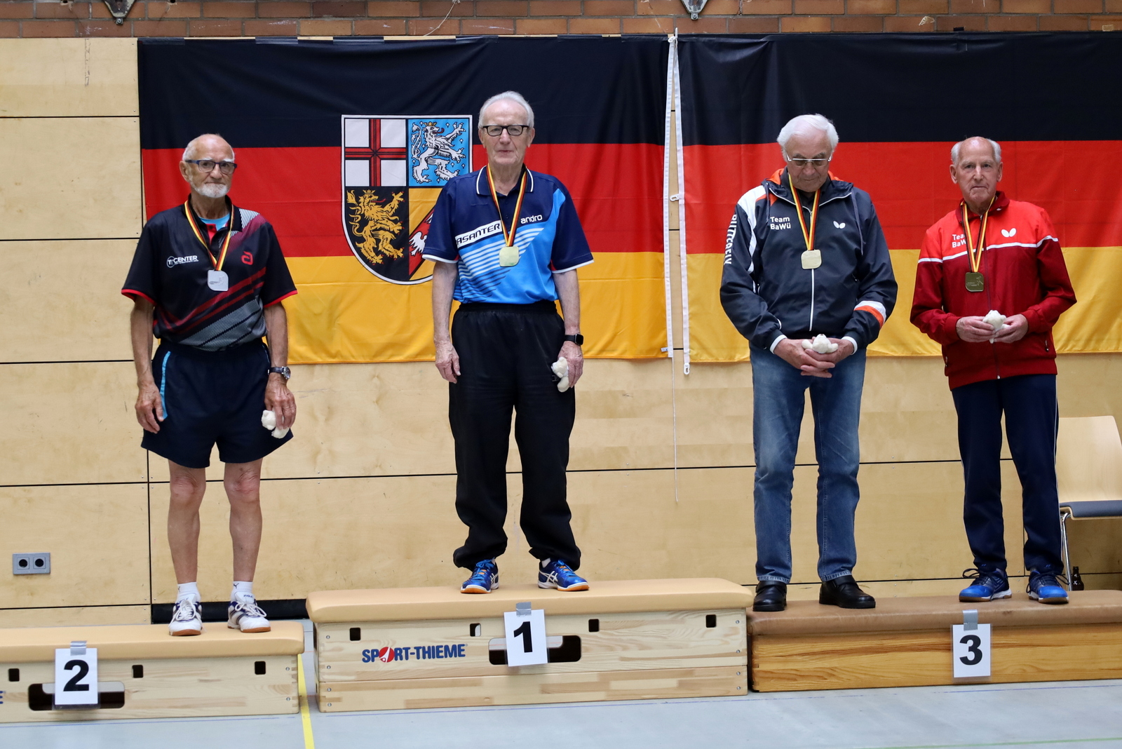 Bei den Herren konnte Konrad Steinkämper (Sen-85) mit drei Goldmedaillen glänzen und dies nach überstandener schwerer Krankheit. Weitere Goldmedaillen gab es noch im Einzel für Uwe Peters (Sen-40), Jürgen Reuland (Sen-75) und Annemarie Falkowski (Sen-70).
