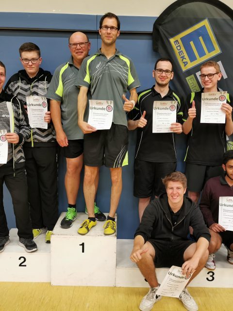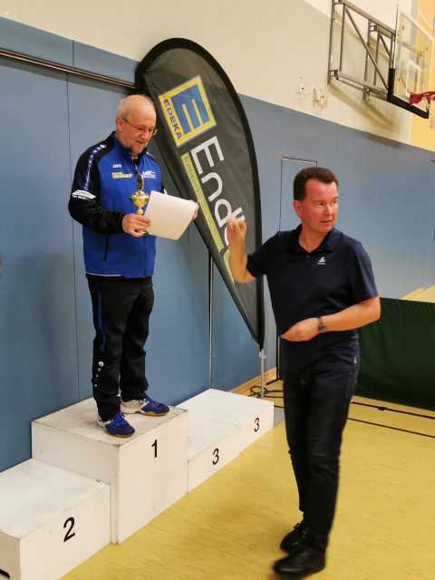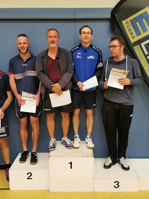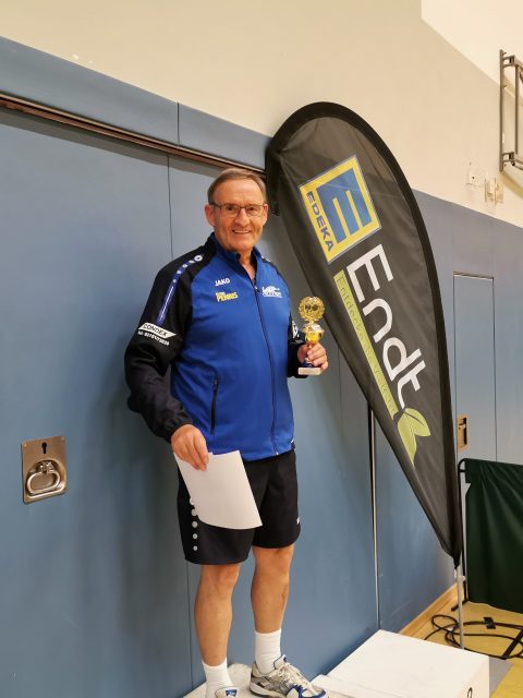 Dass der Kreismeister 2019 in der Herren-A-Klasse aus Erkelenz kommen könnte, war vor dem Turnier wohl eine wenig gewagte These. Immerhin hatte sich Seriensieger Frank Picken angekündigt, während Vorjahressieger Michael Rix (TuS Wickrath) fernblieb. Tatsächlich darf sich der TV Erkelenz freuen: Pokal und Titel sind zurück. Diesmal aber setzte sich in der Mönchengladbacher Turnhalle an der Luise-Vollmer-Straße nicht Picken durch, sondern der ETV-Spieler Steffen Hoeppener.