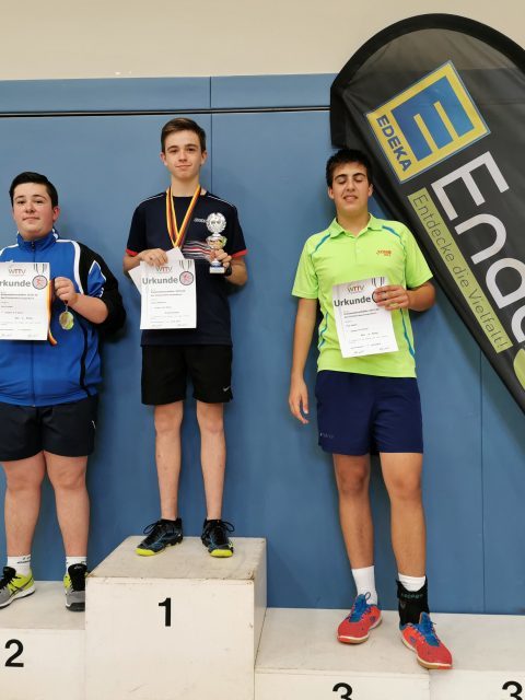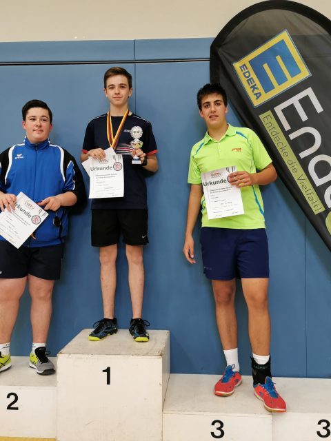 Den Namen Jens Lindemann dürfte nach diesem Kreismeisterschafts-Wochenende wohl keiner so schnell vergessen. Der Erkelenzer gewann die Jungen-A-18-Konkurrenz und die Herren-B-Konkurrenz sowie Bronze in der Herren-A-Klasse. Was für ein Wochenende: Denn Lindemann ist gerade erst 15 Jahre alt. Er war für sicher nicht nur für Marco Schiffer, Vorsitzender des Ausrichters Rheydt-Wetschewell, „der beste Spieler des Turniers“. Bei den Jungen 15 war ebenfalls ordentlich was los: 29 Meldungen gab es. Dort holte sich Junghao Cheng (VfL Borussia M’gladbach) souverän und ohne Niederlage den Pokal.