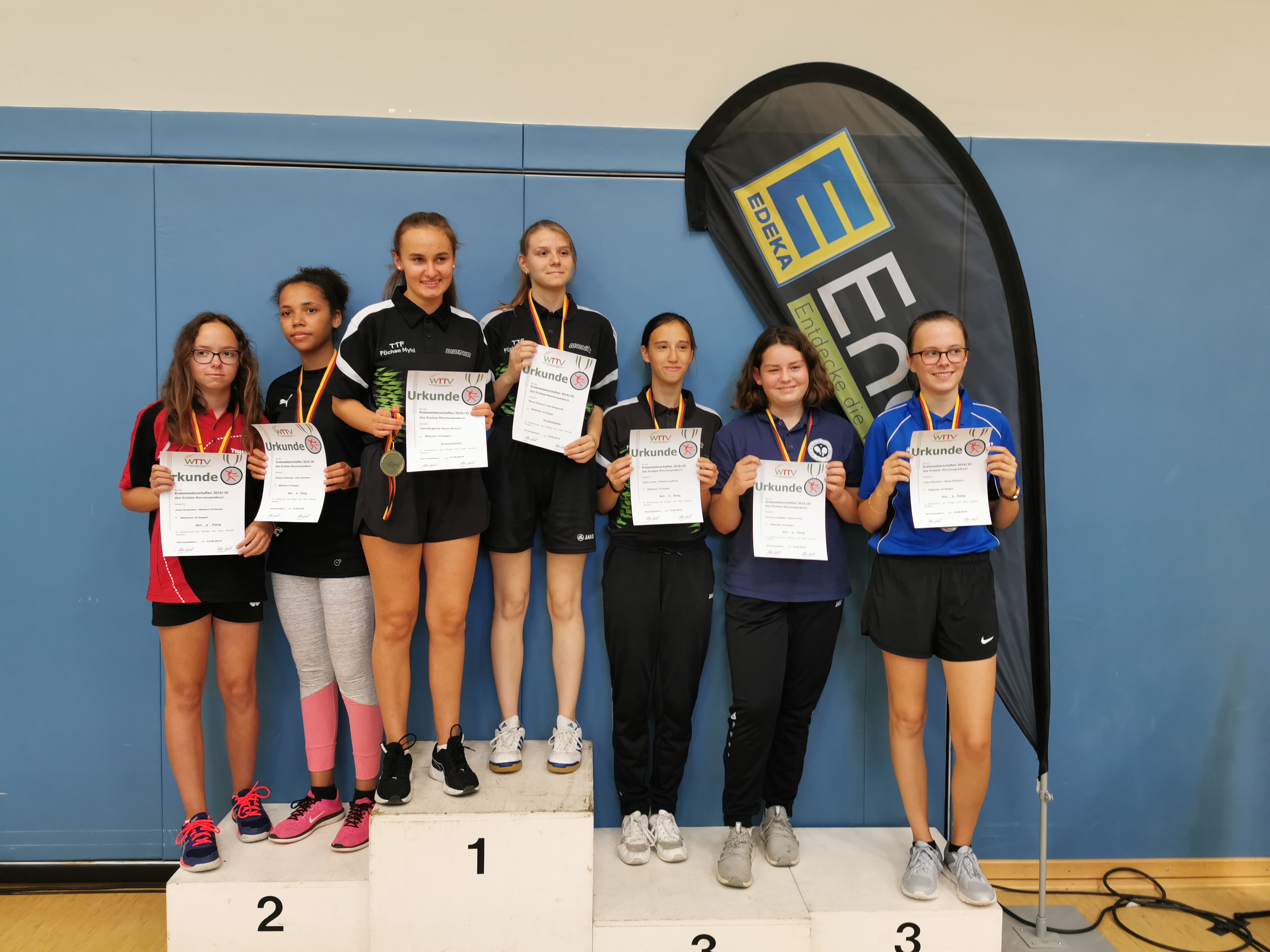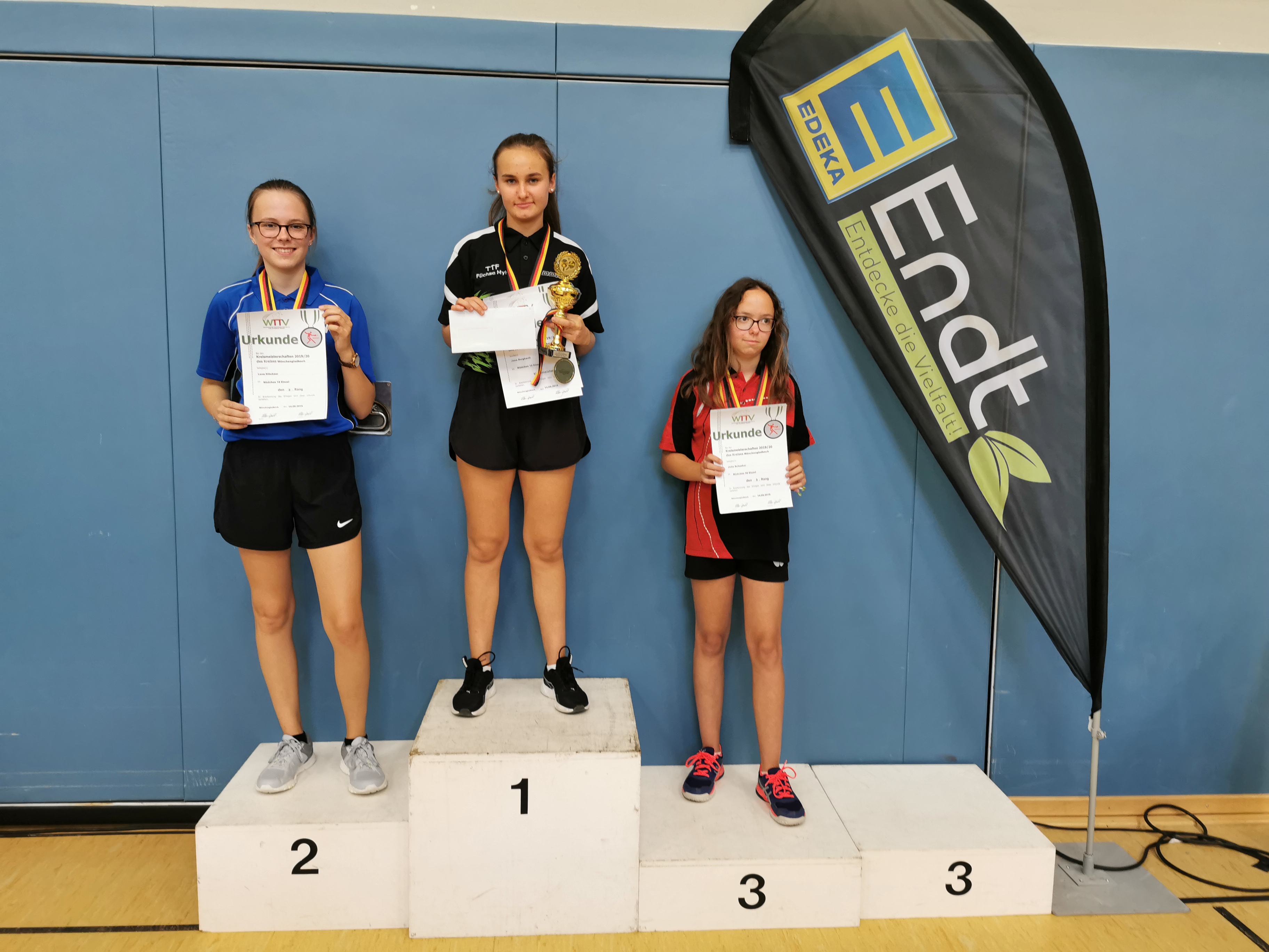 Bei den Mädchen 18 hatten nach der Gruppenphase wohl viele die Baalerin Lena Klöckner als Favoritin auf dem Zettel. Sie hatte sich mit drei Siegen für die Finalspiele qualifiziert. Auch Jana Burghardt (Füchse Myhl) hatte sie da noch deutlich 3:0 besiegt. Im Finale kehrte sich das allerdings um: Im zweiten Duell der beiden hatte Burghardt bessere Nerven und stand nach dem Finale (3:1) als Erstplatzierte und also als Kreismeisterin fest.